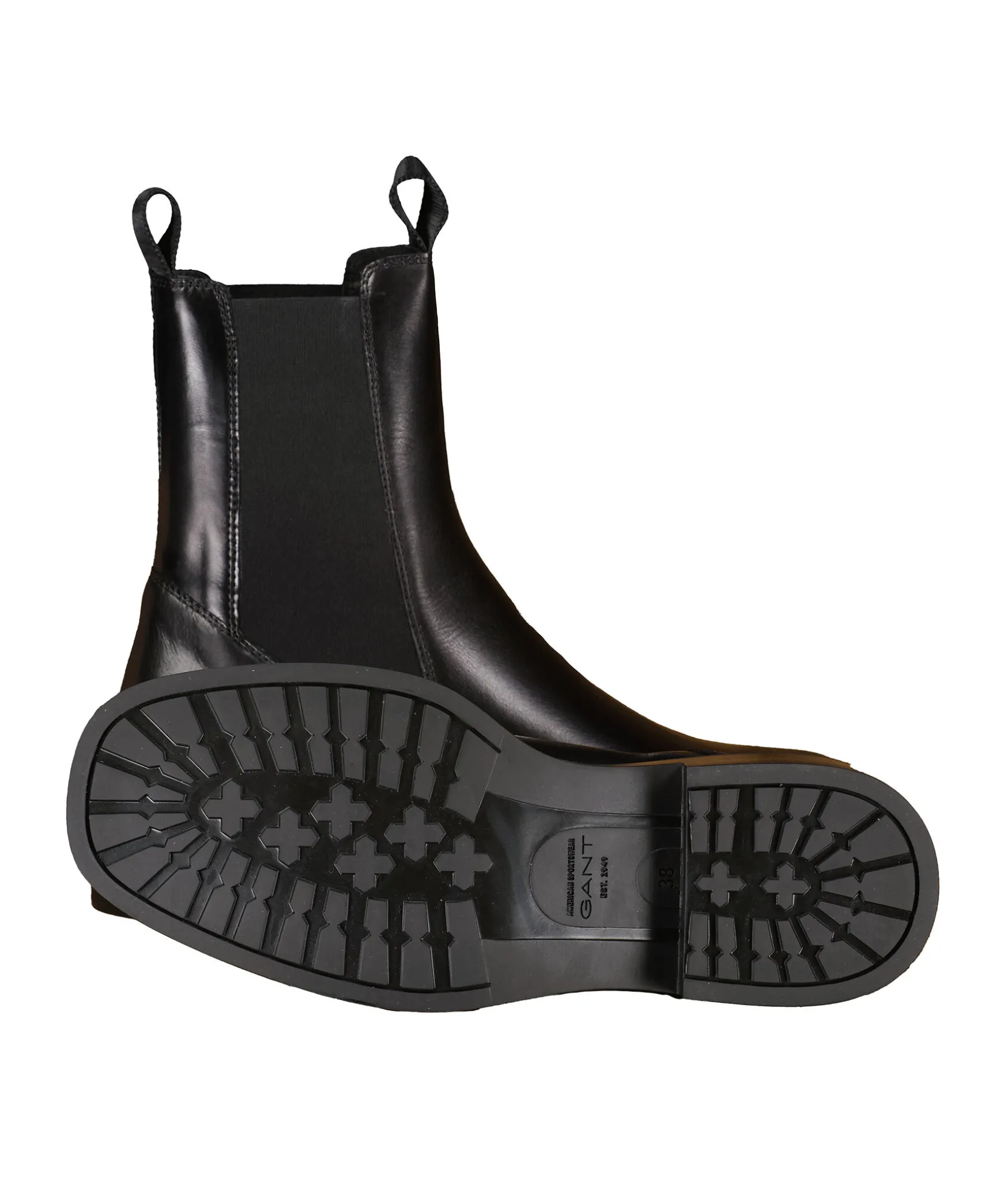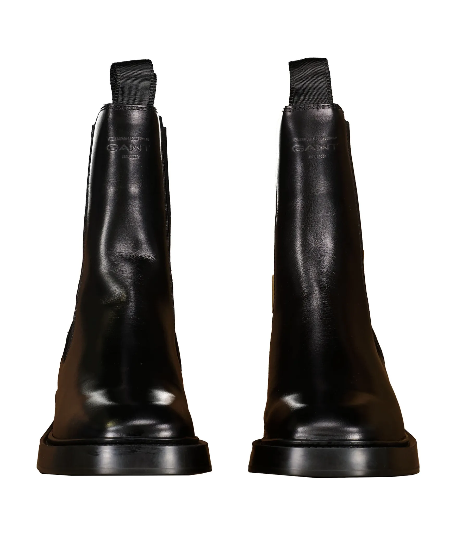 Svarta Chelsea Boots Fran Gant Footwear Tillverkade I Lader. Dragoglor Bak Och Fram For Enkel Anvandning.