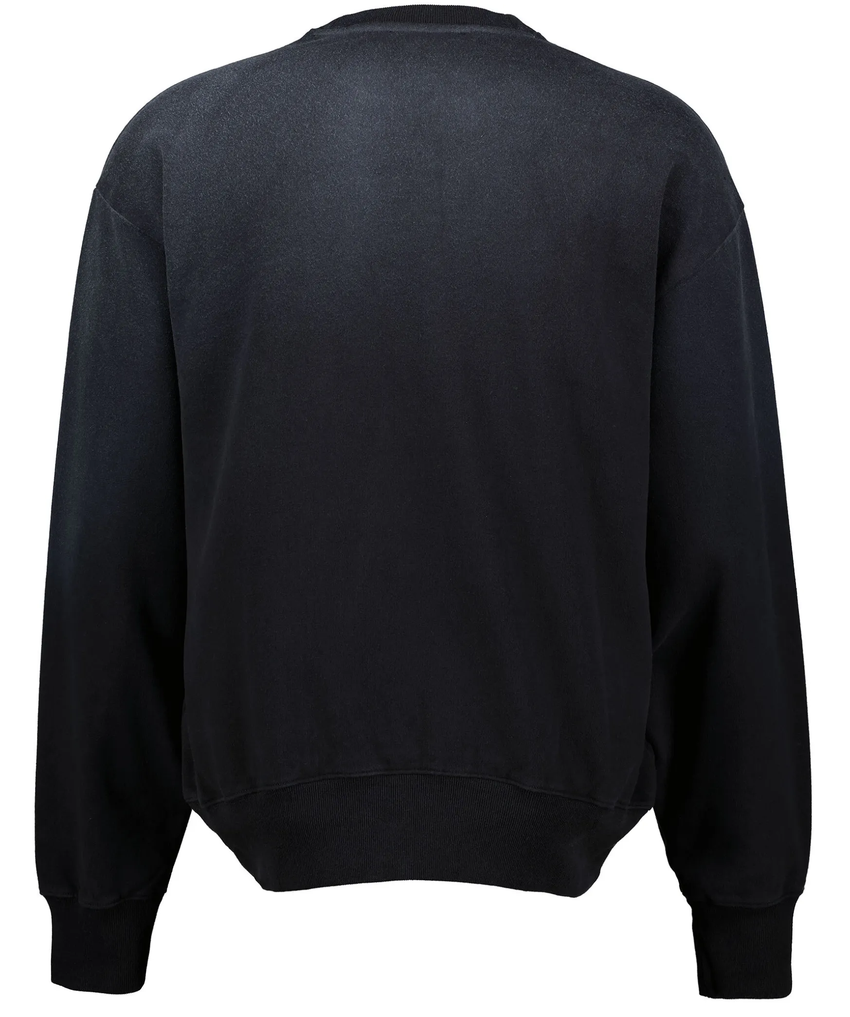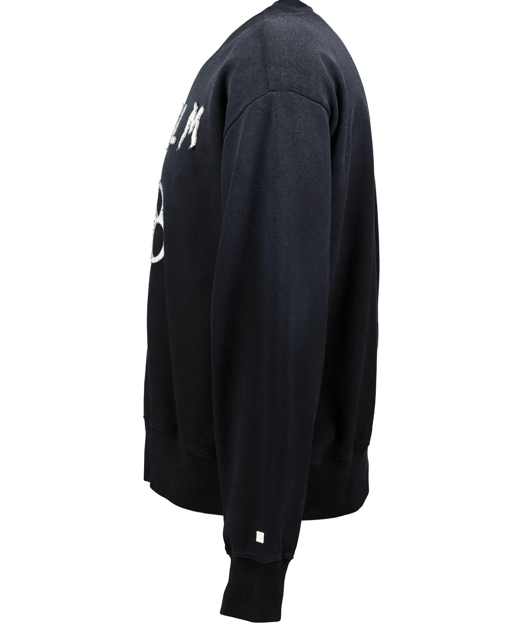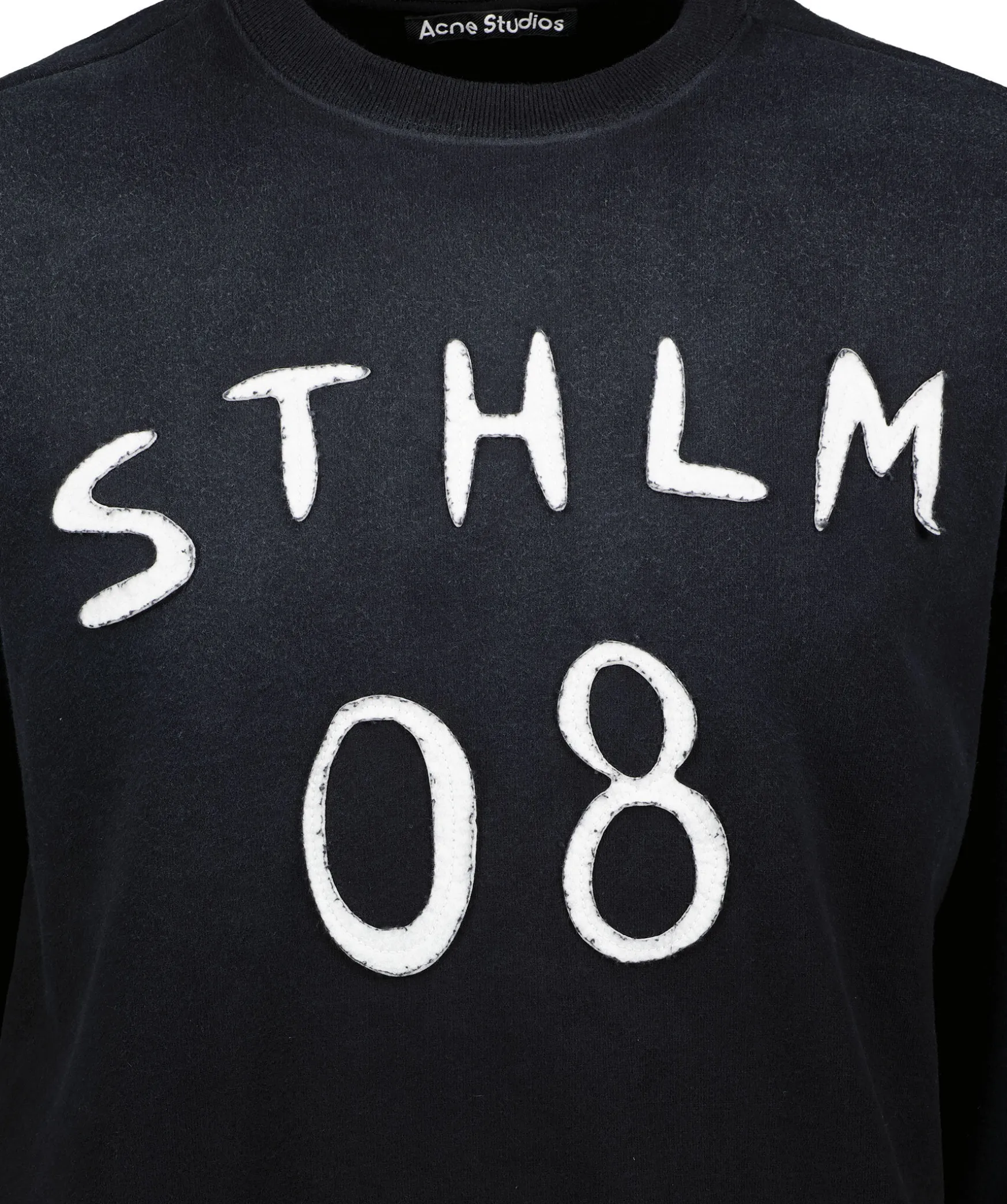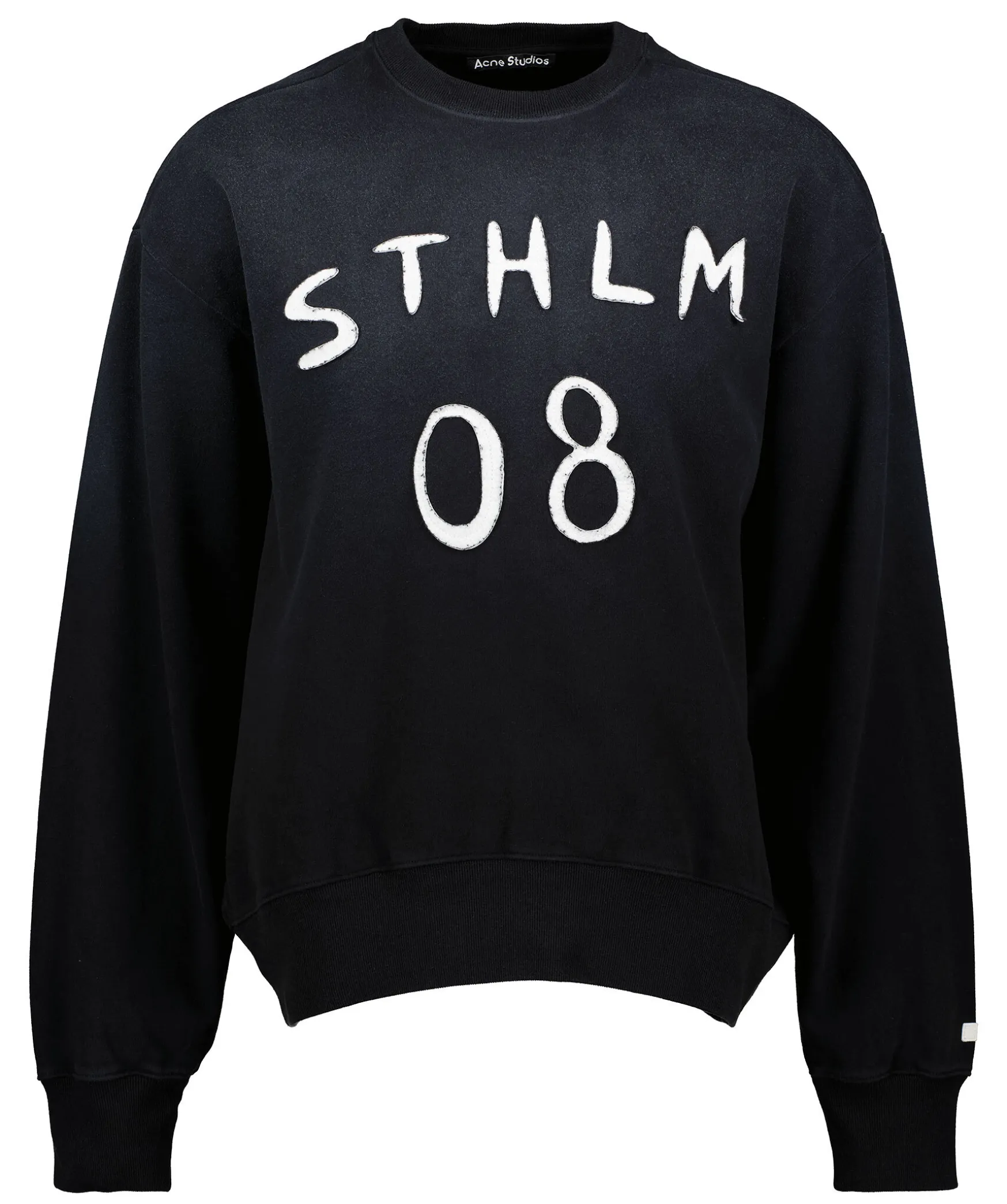 Svart Sweatshirt Fran Acne Studios. Vita Bokstaver I Filt Over Brostet Och Pa Magen. Rundad Halsringning Med Ribbstickad Mudd. Ribbstickad Mudd Vid Arm- Och Plaggslut. Liten Patch Med Logotyp Vid Vanster Hoft. Tillverkad I 100% Bomull. Fargskiftning Upptill.