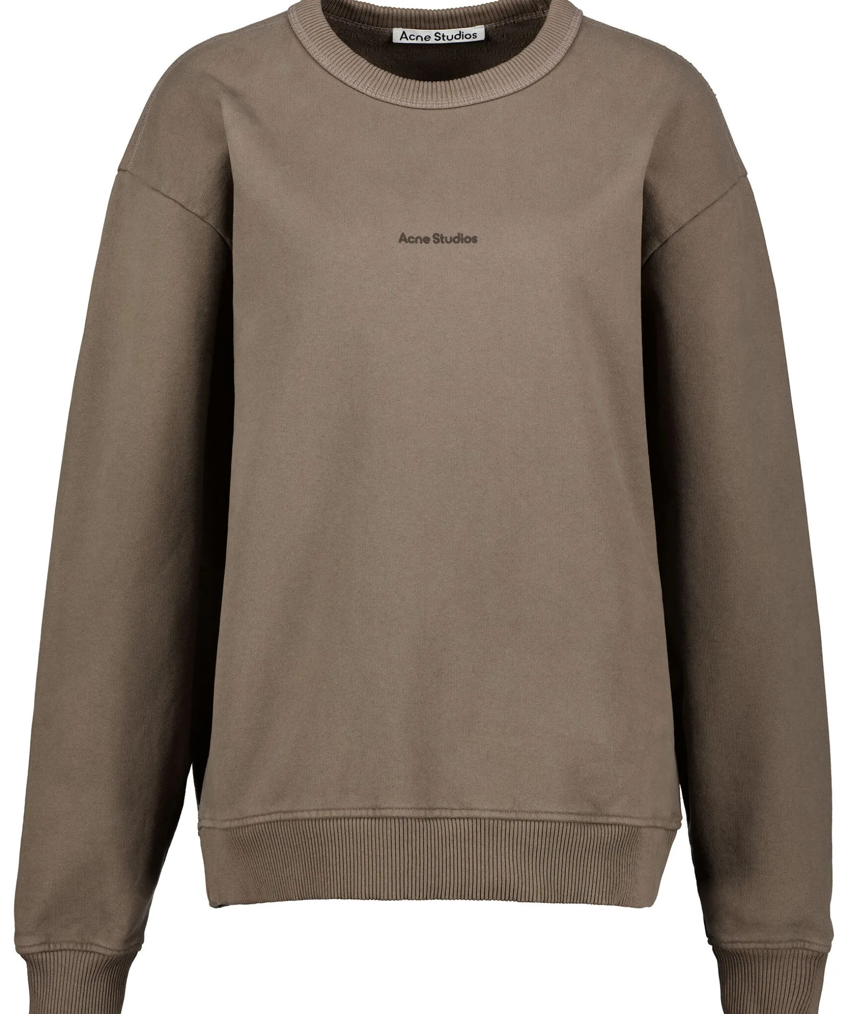 Brun Sweatshirt Fran Acne Studios. Trojan Ar Gjord I Ett Kraftigt Bomullstyg Med En Semi Borstad Insida. Ribbade Muddar Vid Halsringen, Arm Och Plaggslut. Liten Logotyp Tryckt Pa Brostet. Avslappnad Passform Med Droppade Axlar.