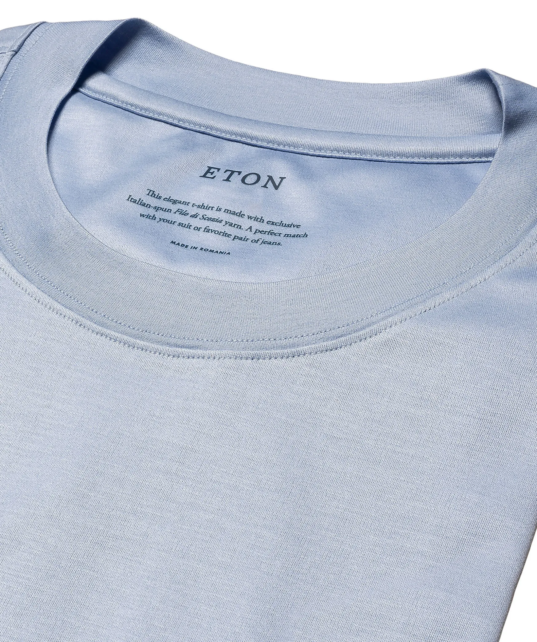 Ett Lyxigt Tillskott Till Din Casual-Garderob: En T-Shirt Som Ar Lika Latt Att Styla Oavsett Arstid. Den Ar Stickad Av Filo Di Scozia-Garn Som Ger Ett Bade Hallbart Och Naturligt Stretchigt Tyg. En Lyxig T-Shirt Med Crew Neck Som Kan Kombineras Med Det Mesta, Och Garna Under En Kostym Eller Nagon Av Etons Overskjortor.