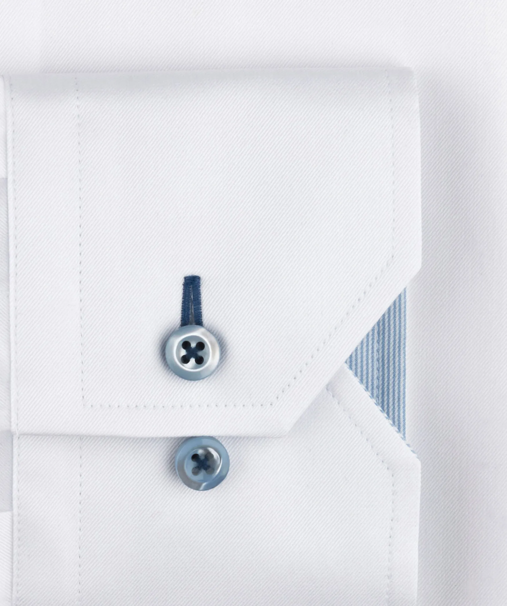 Vit Skjorta Fran Stenstroms. Blaa Kontrastdetaljer, Enkel Manschett, Fitted Body, Moderate Cut Away Krage. Tillverkad I 100% Bomull.*Bla Kontrastdetaljer*Fitted Body*100% Bomull