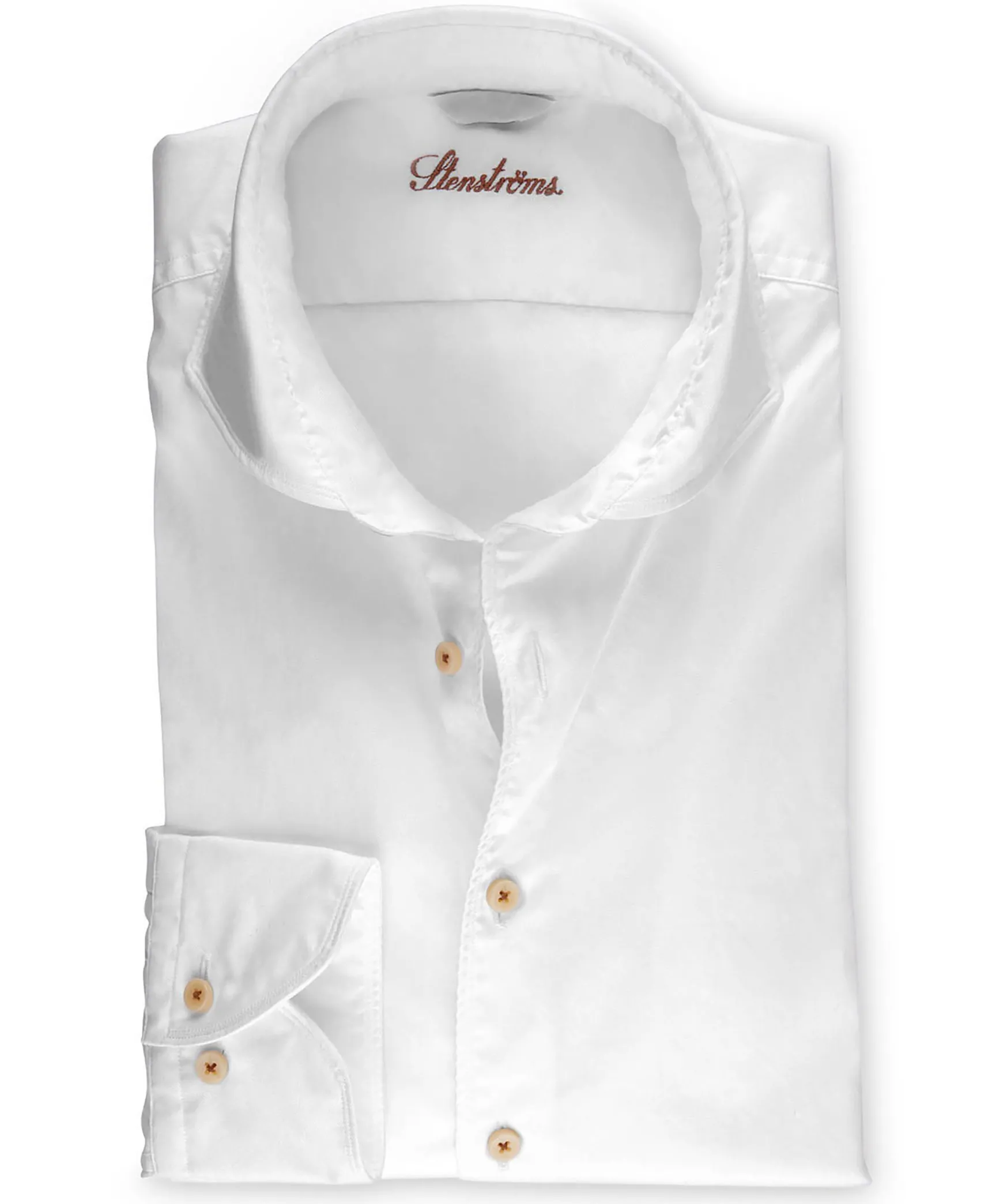 Vit Skjorta Fran Stenstroms. Fitted Body, Tvattad For En Avslappnad Look, Enkel Manschett, Parlemorknappar Med X-Stygn, Cut Away Krage. Tillverkad I 100% Bomull.*Fitted Body*Tvattad*100% Bomull