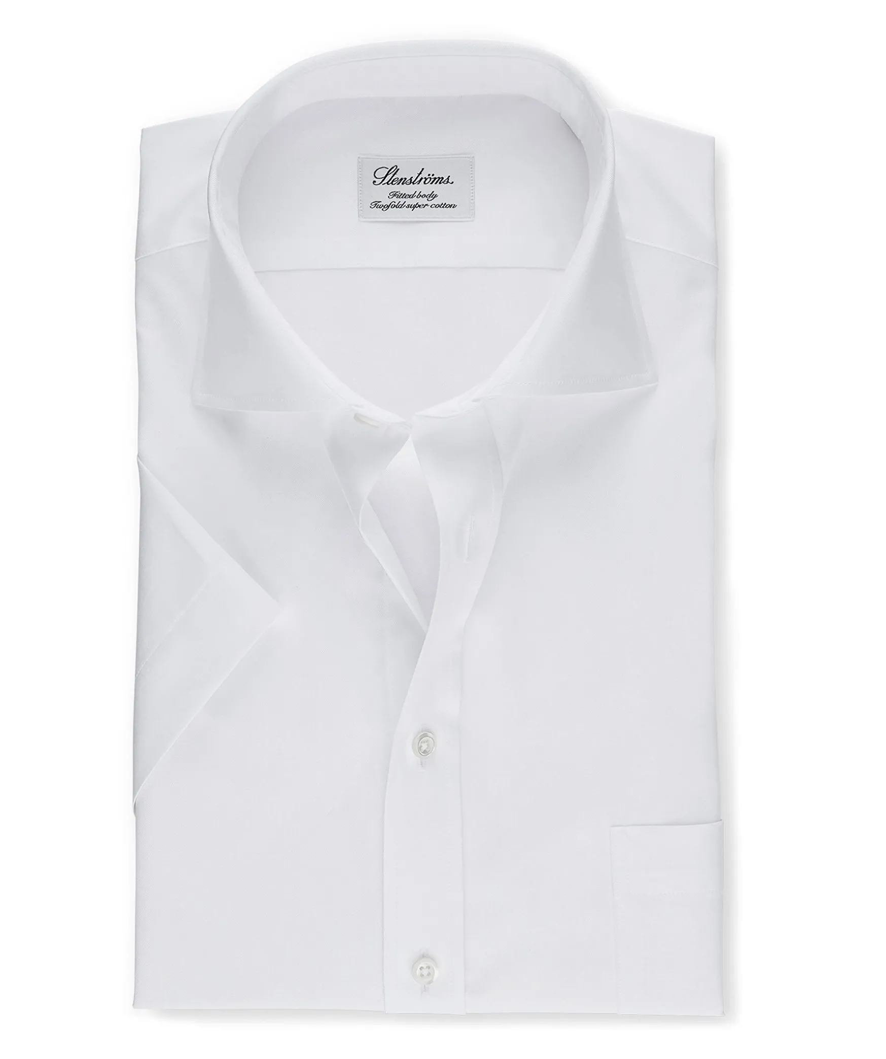 En Krispig Vit Skjorta Gar Aldrig Ur Tiden! Denna Kortarmade Skjorta Fran Stenstroms Har En Fitted Body Bal Gjord Av Twofold Bomull Och En Nagot Skraddarsydd Midja. Detaljerad Med Enkla Manschetter, Cut Away Krage Och Parlemoknappar. Passar Bade Till Kostymbyxor Och Till Ett Par Snygga Jeans.