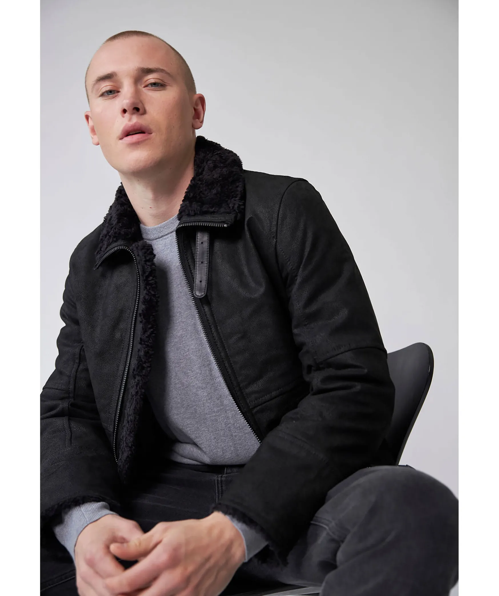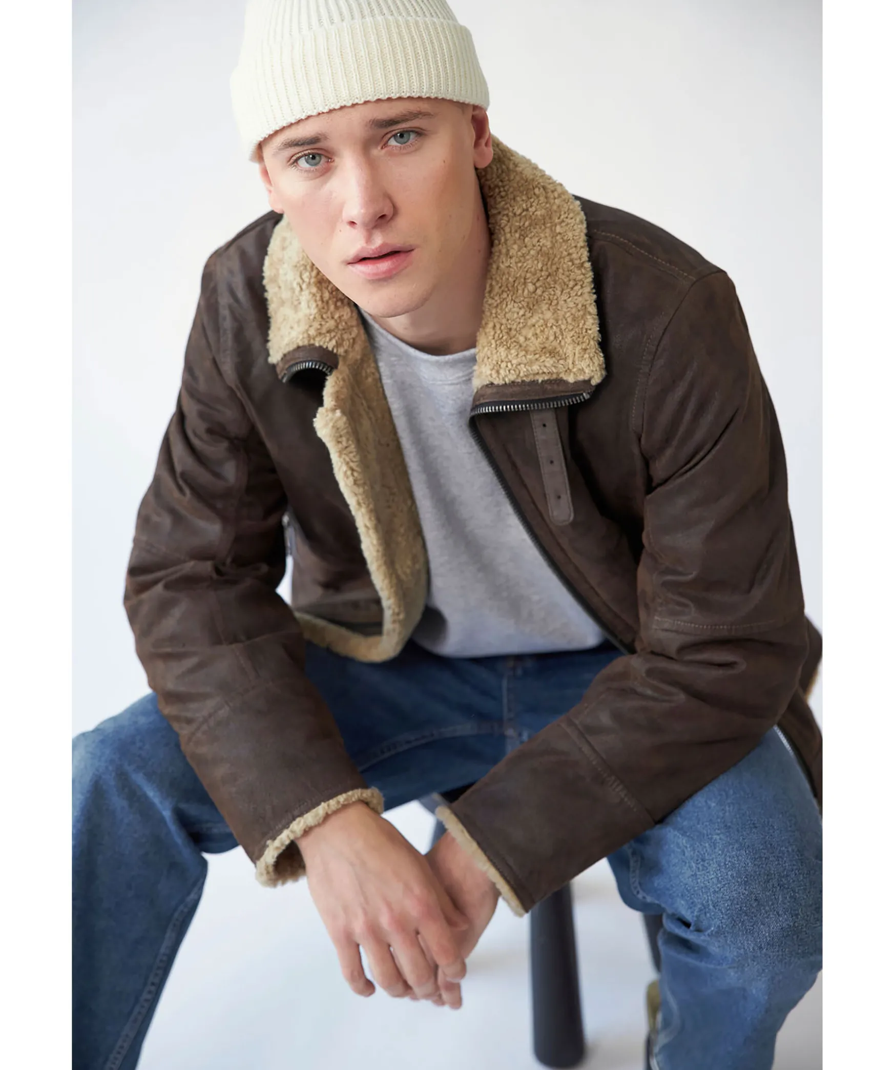 En Tidlos Shearlingjacka. Medan Det Bekvama Sherpa-Fodret Ger Varme, Ger Det Blekta Mockaskiktet Och Den Karakteristiska Finishen En Haftig Vintagekansla.