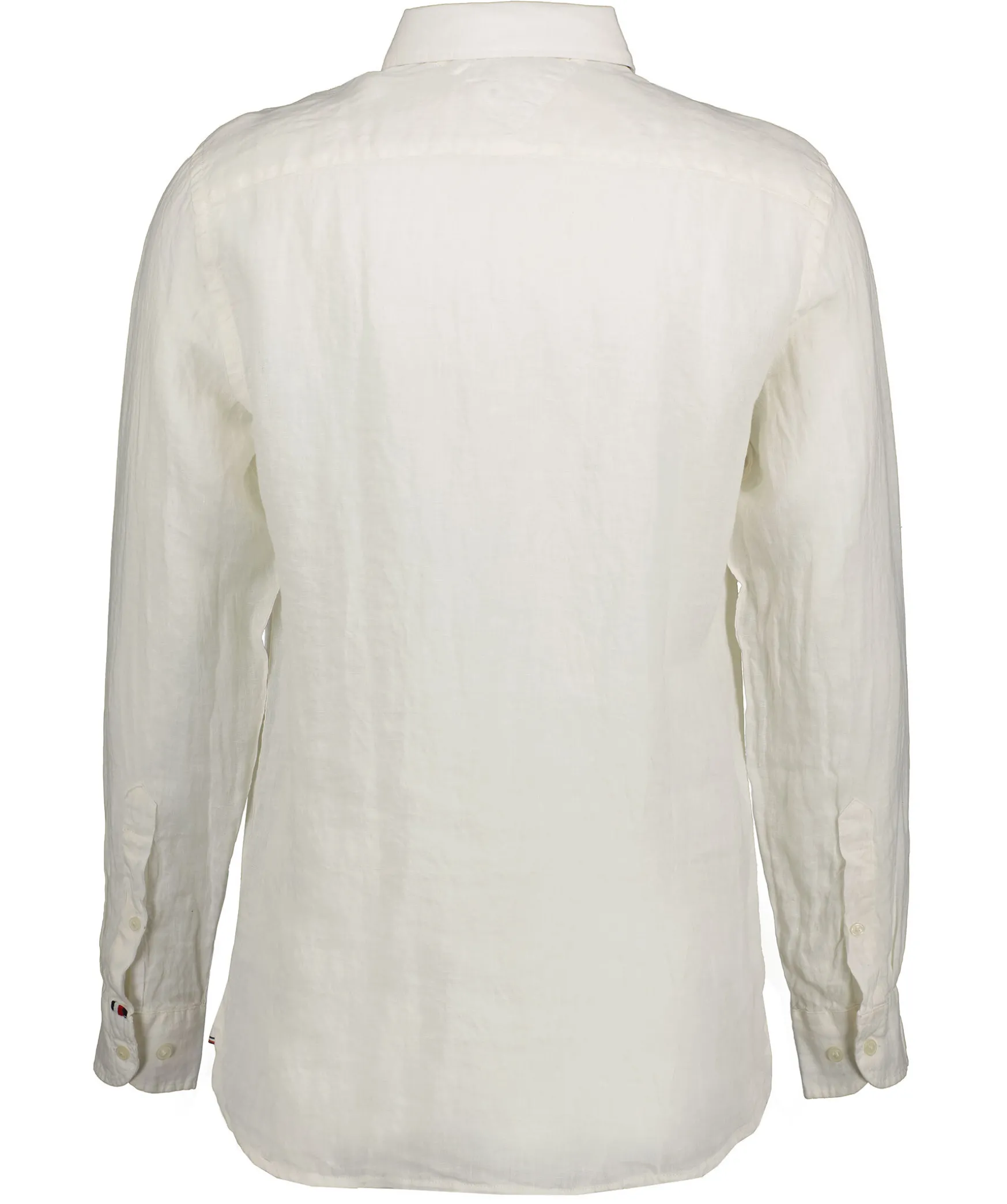 Vit Langarmad Linneskjorta Fran Gant. Skjortan Ar Gjord I 100% Linne Och Har En Normal Passform, Button Down-Krage Och En Brostficka Med Broderad Logotyp. Perfekt Skjorta Till Sommaren.