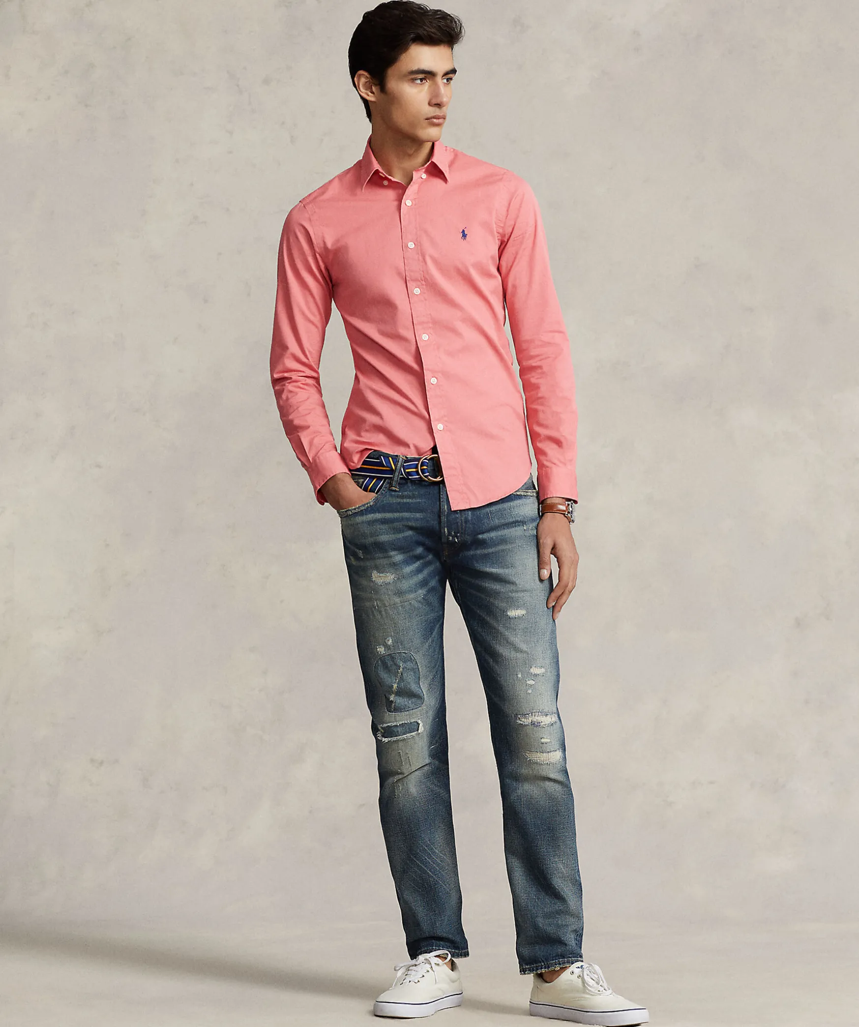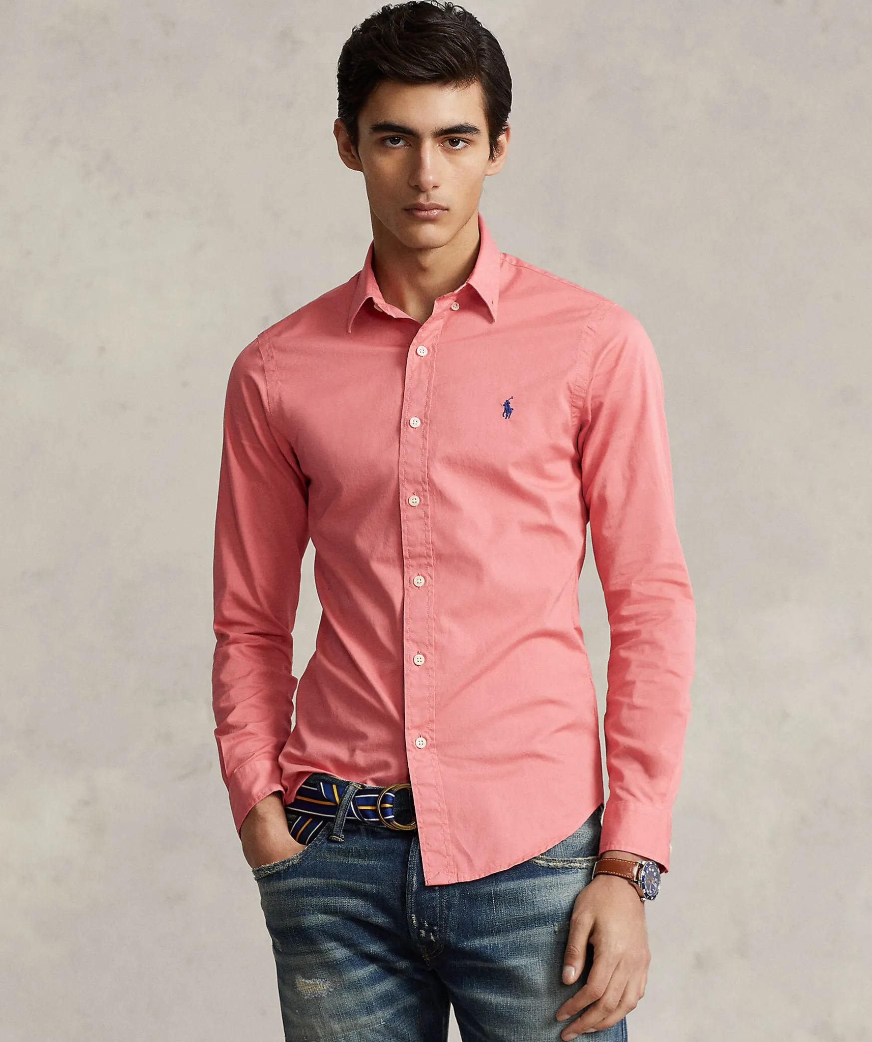 Flamingofargad, Klassisk Plaggfargad Och Tvattad Skjorta I Slim Fit Modell Fran Polo Ralph Lauren. Tillverkad I 100% Bomull. Button-Down Krage, Liten Broderad Logotyp Pa Vanster Sida Av Brostet.
