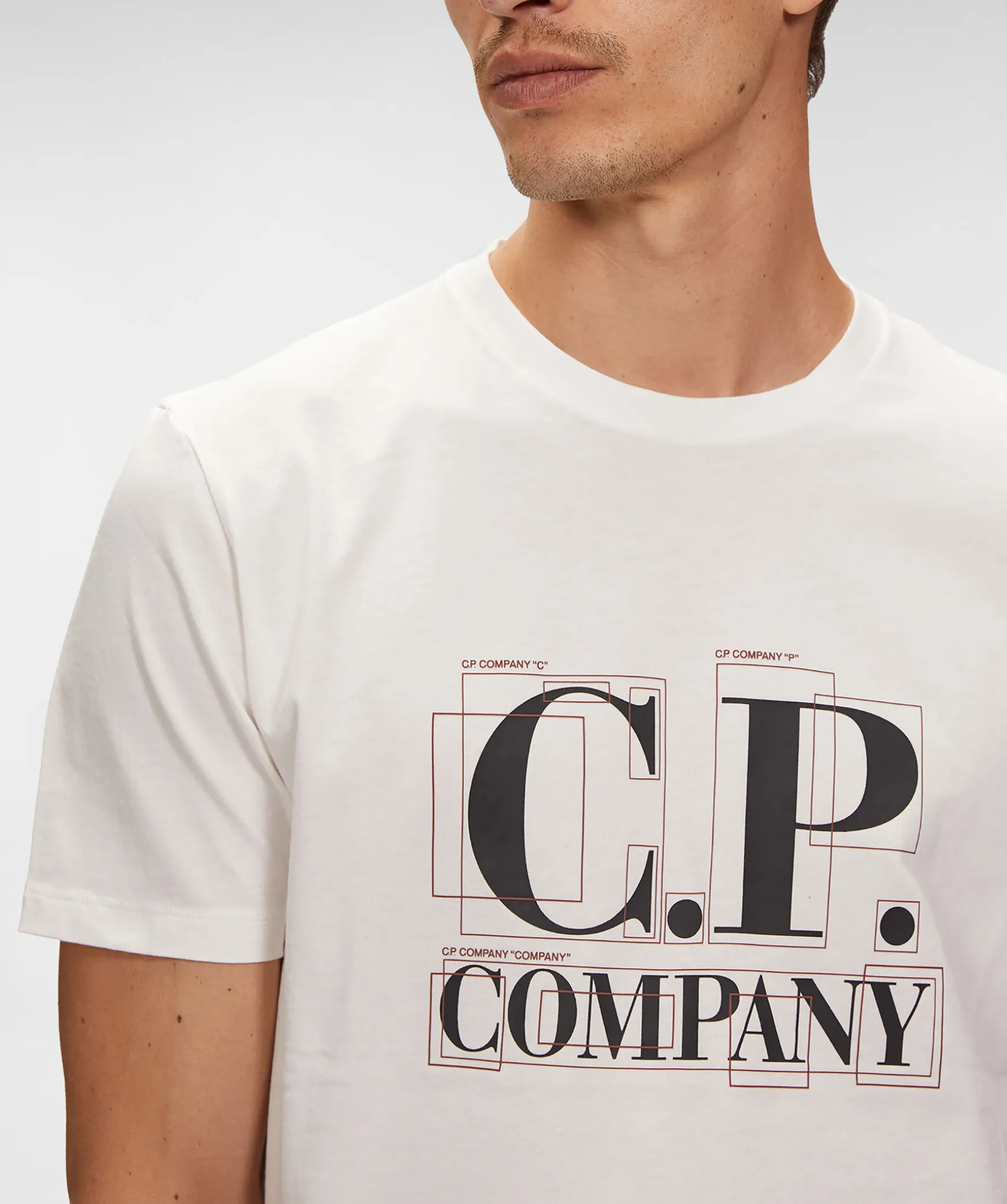 Vit T-Shirt Med Rundad Halsringning Och Grafisk Logo Tryck Fran C.P Company. Tillverkad I Bomullsjersey.