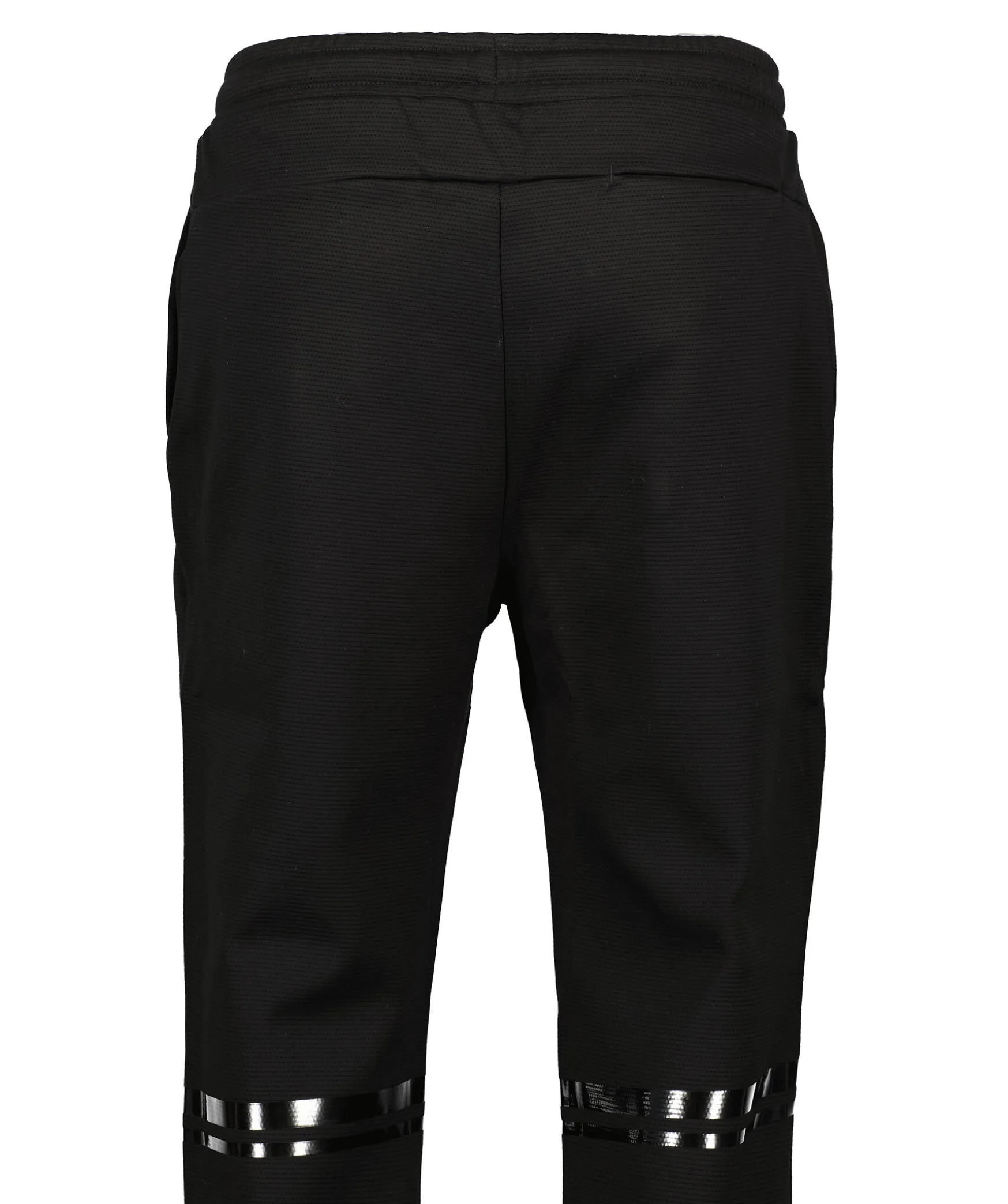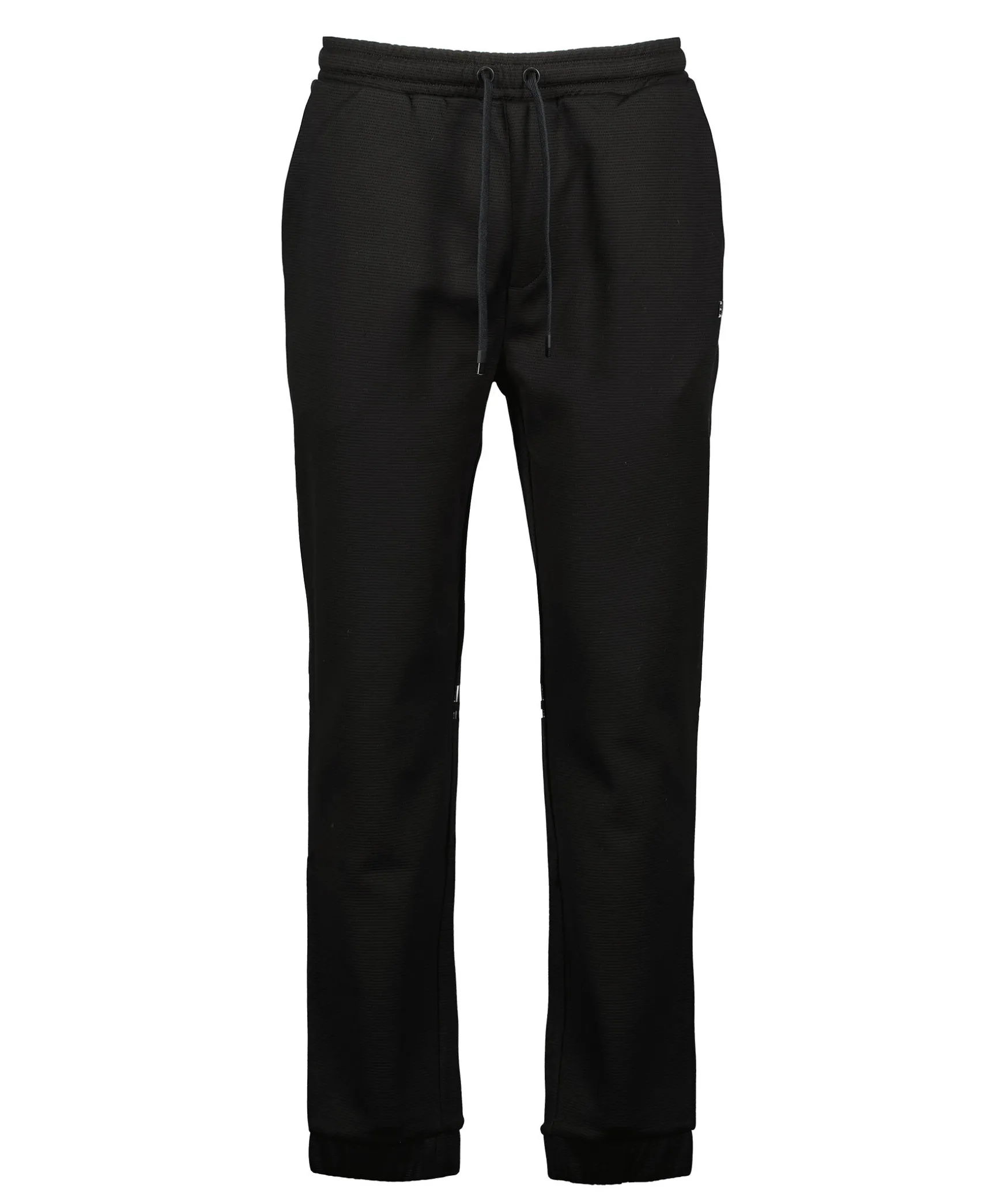 Svarta Mjukisbyxor Fran Boss Green. Tillverkade Av 100% Bomull. Dragsko I Midjan. Tva Sidfickor. Glansig, Praglad Logotyp Vid Vanster Ficka. Glansiga Horisontala Streck I Knavecken.