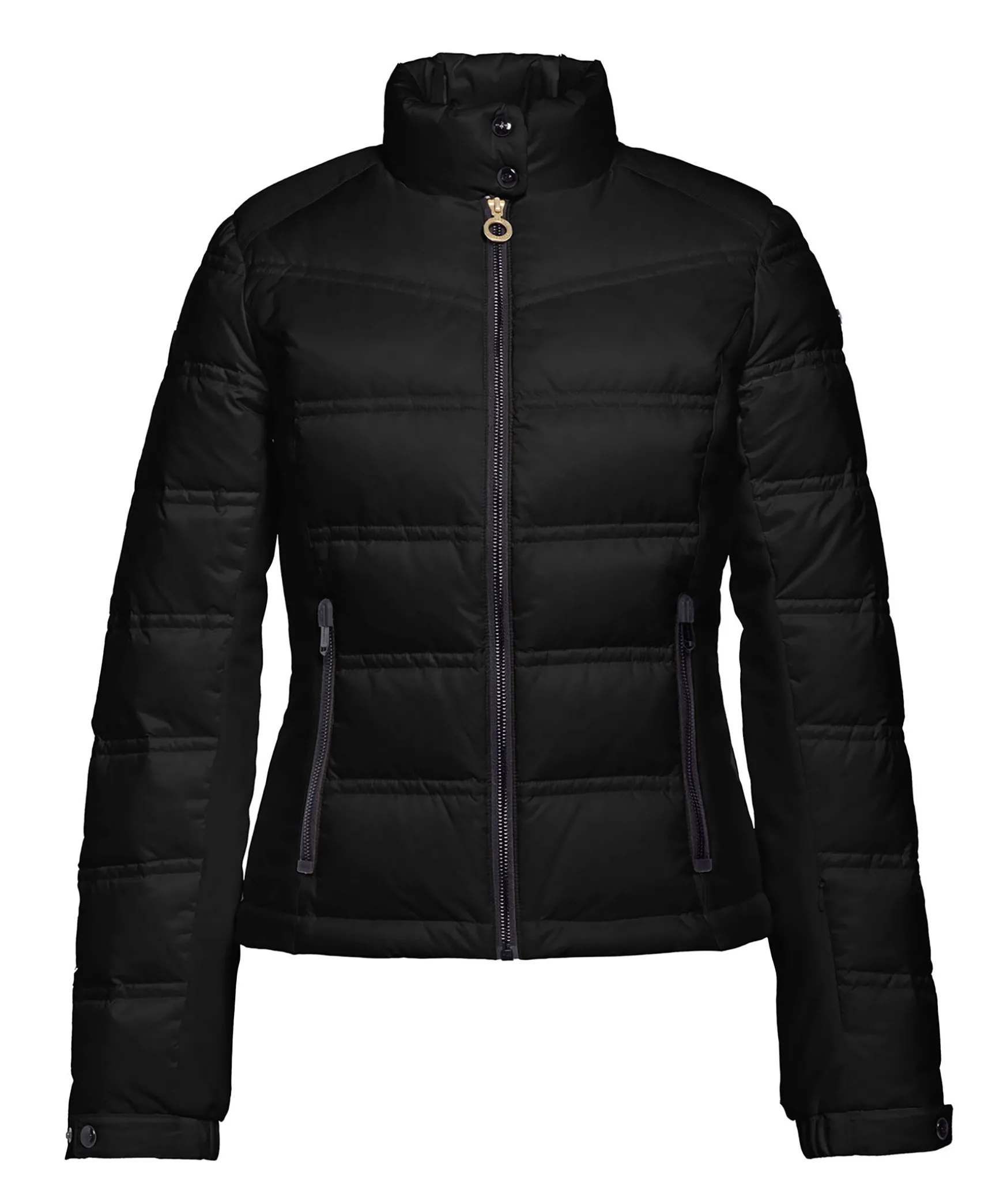 Svart Quiltad Dunjacka Fran Goldbergh. Stangs Framtill Med Dragkedja. Tva Fickor Framtill Som Stangs Med Dragkedja, En Ficka Pa Vanster Arm Som Stangs Med Dragkedja. Justerbara Armslut. Paneler I Elastiskt Material I Sidan Och Undersidan Av Armen.
