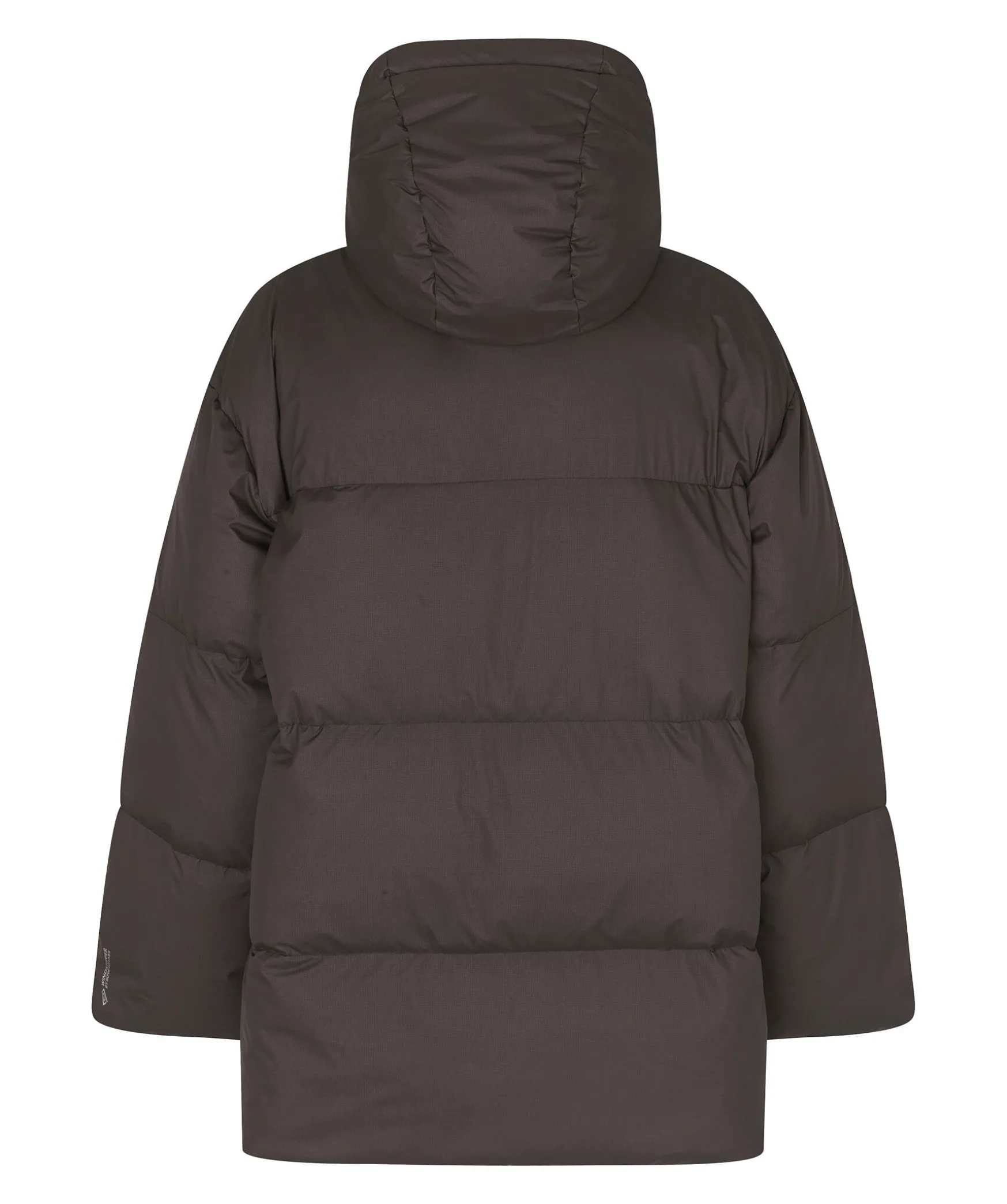 Morkbrun Quiltad Pufferjacka Fran Samsoe Samsoe. Stangs Framtill Med Tvavagsdragkedja Och Tryckknappar. Tva Fickor Framtill Med Lock Som Stangs Med Tryckknappar. Innerficka. Oversized Passform Med Droppade Axlar. Avtagbar Luva Med Dragsko. Patch Med Goretex X Samsoe Samsoe Logo.