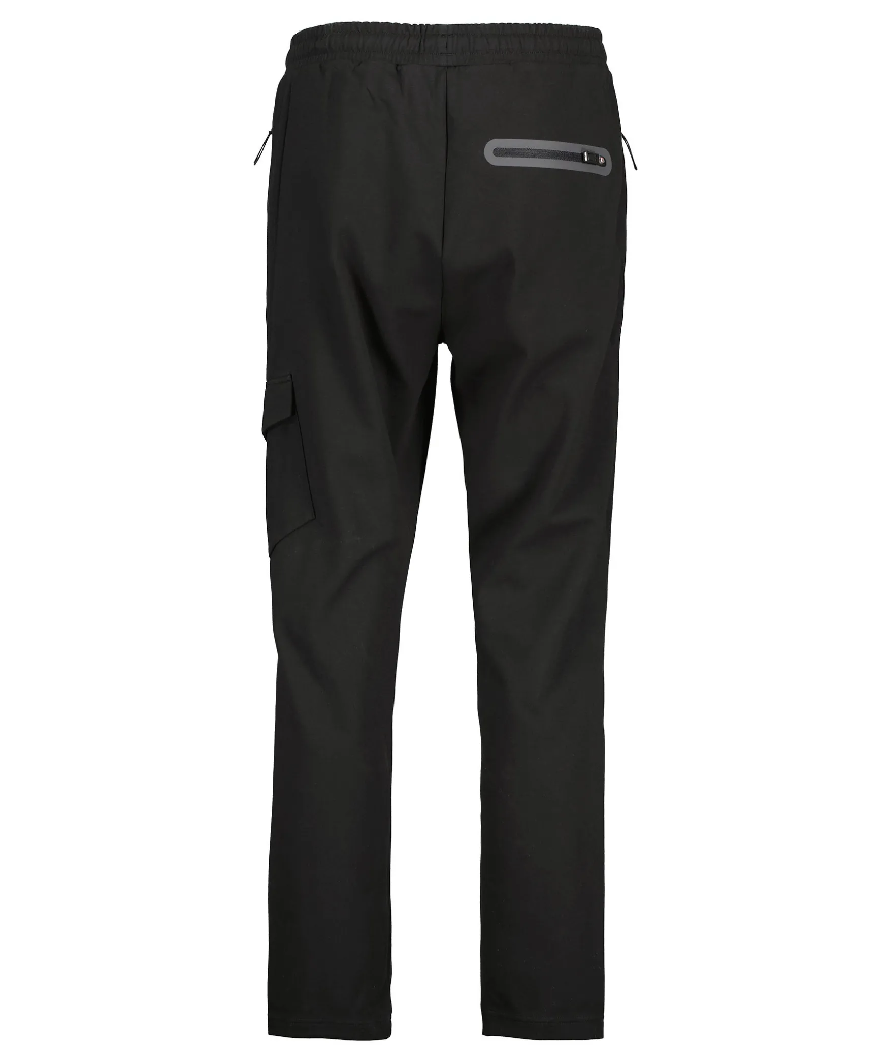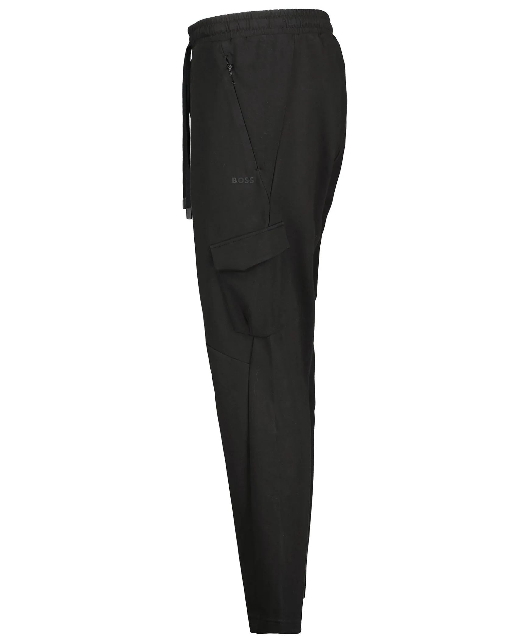 Svarta Mjukisbyxor Fran Boss Green. Resar Och Dragsko I Midjan. Tva Fickor Framtill Som Stangs Med Dragkedja. Gummerad Logotyp Pa Vanster Lar. Ficka Med Lock Pa Vanster Ben. Bakficka Pa Hogersida Som Stangs Med Dragkedja.