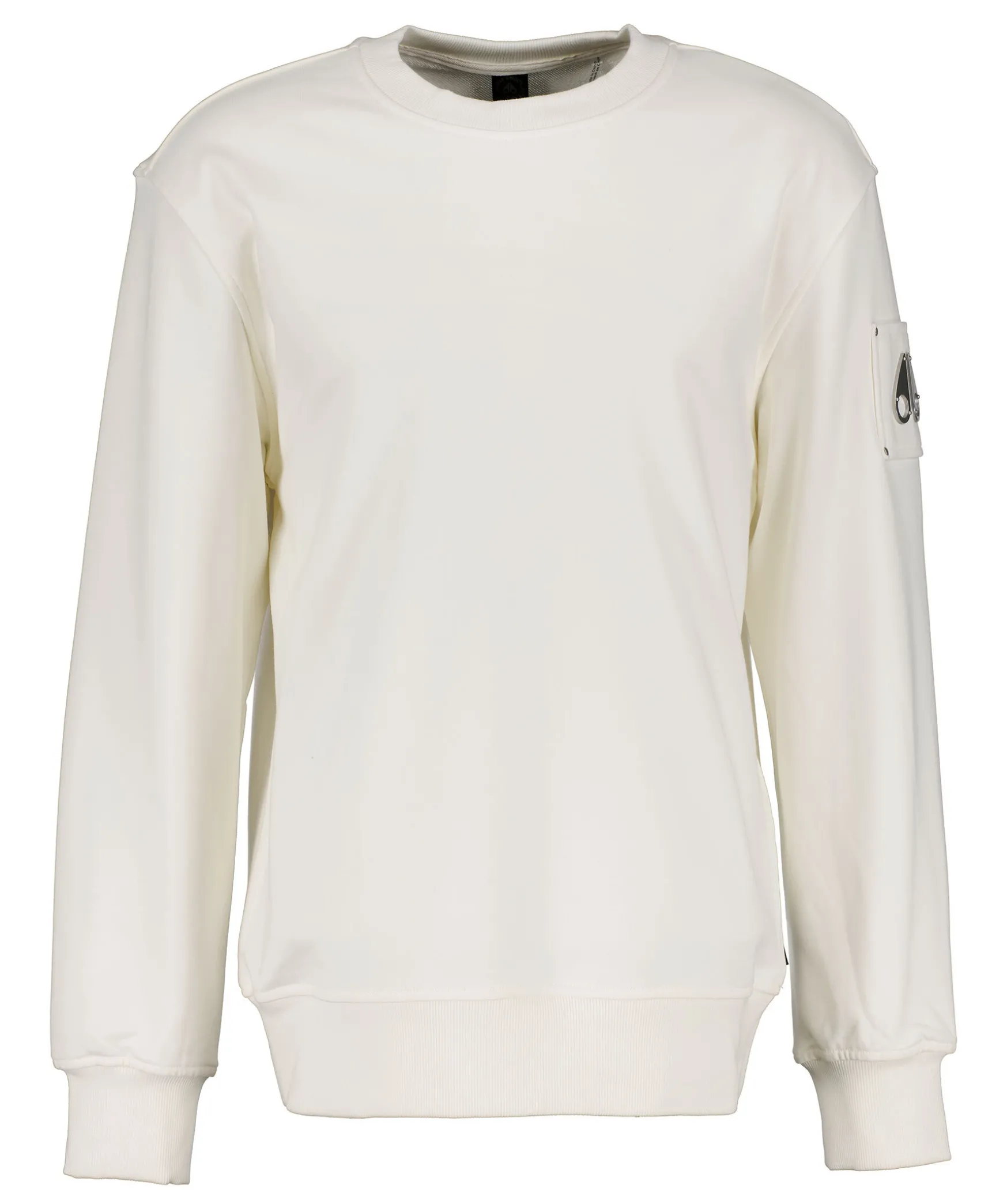Benvit Sweatshirt Fran Moose Knuckles. Den Ar Gjord Av En Fransk Frotte Av Forstklassig Bomull, Med Klassiska Designdetaljer Med Rund Hals, Inklusive En Ribbstickad Halsringning, Midjeband Och Armslut. En Glansande Moose Knucles-Logotyp I Metall Pryder Armen Pa Detta Annars Stromlinjeformade Plagg. Avslappnad Passform.