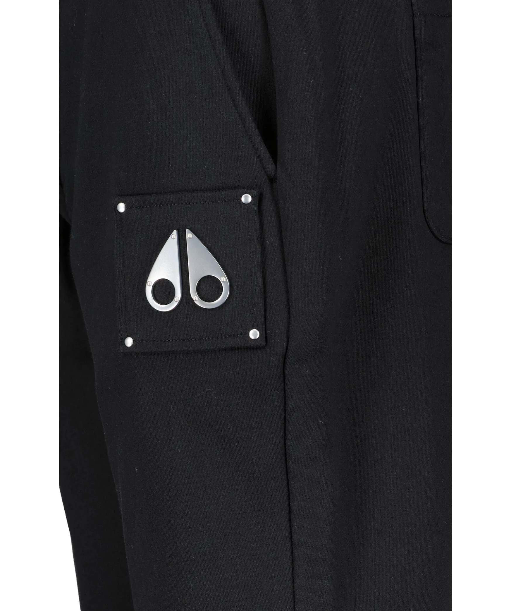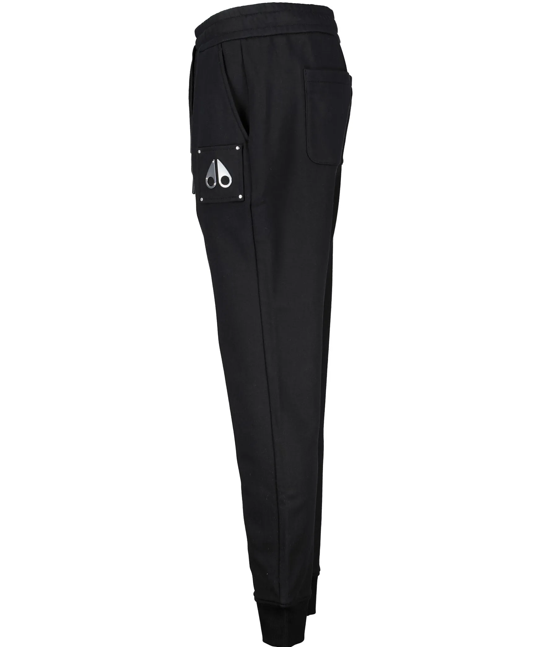 Svarta Mjukisbyxor Fran Moose Knuckles. Detta Par I Avslappnad Passform Ar Skuret Av Mjuk Fransk Frotte I Bomull Med Ett Elastiskt Midjeband Med Snorning Och Ankelmanschetter. Den Har Cargofickor For Att Halla Det Vasentliga Nara Och Ar Utsmyckad Med En Moose Knuckles-Logotyp I Metall Vid Benet.