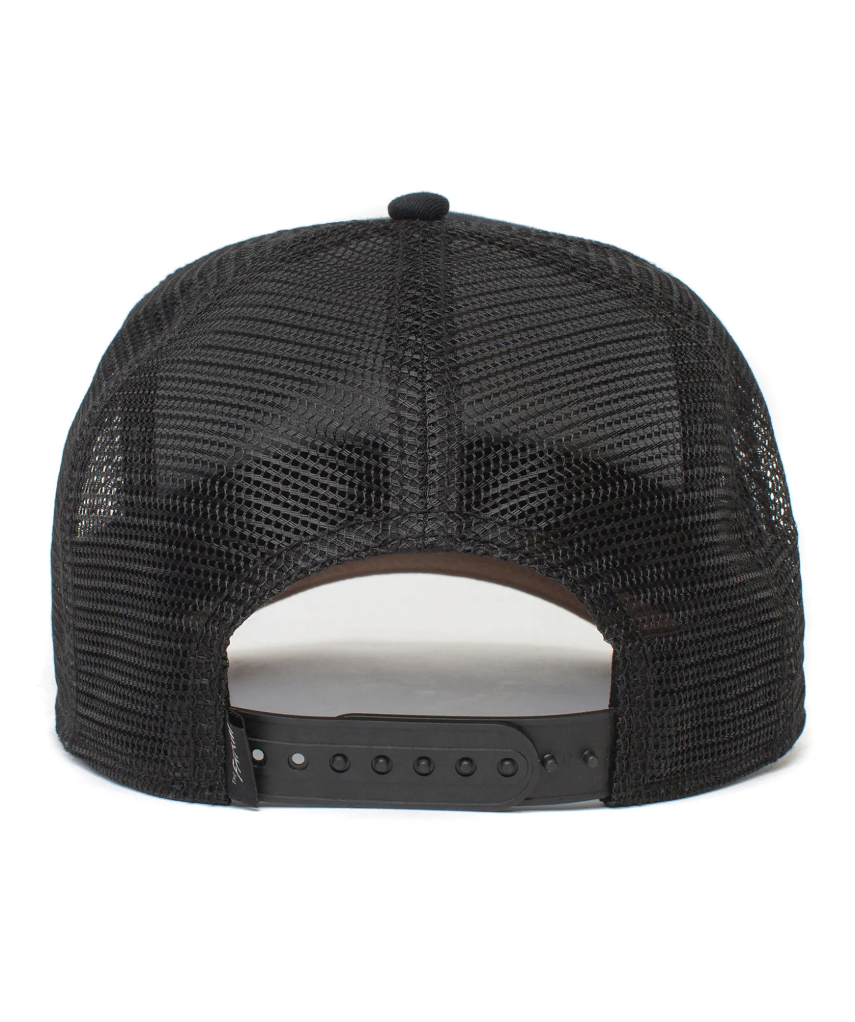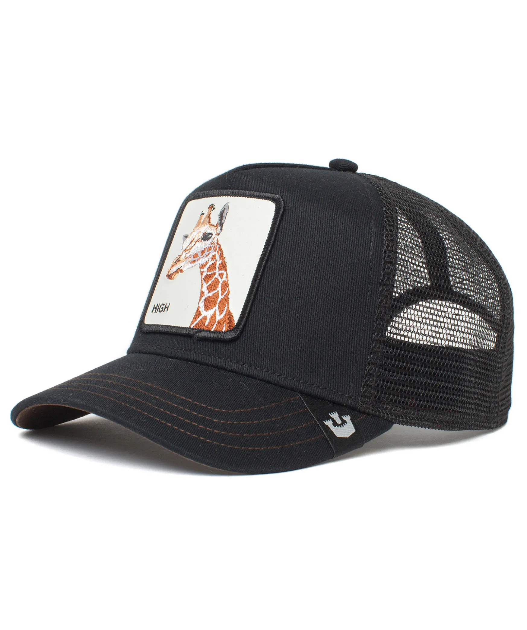 Svart Keps I Trucker-Basebollmodell Med Fyrkantig Patch Med En Giraff Framtill Fran Goorin Bros. Onesize Storlek Med Ett Justerbart 4-Snap-In-Rem, Vilket Betyder Att Storleksintervallet Ar 55 Cm-61 Cm Med 58 Cm I Mitten. Ett Bomullssvettband Finns Fastsytt Pa Insidan. Tillverkad I Polyester Bak Och Polyuretan Pa Framsidan.