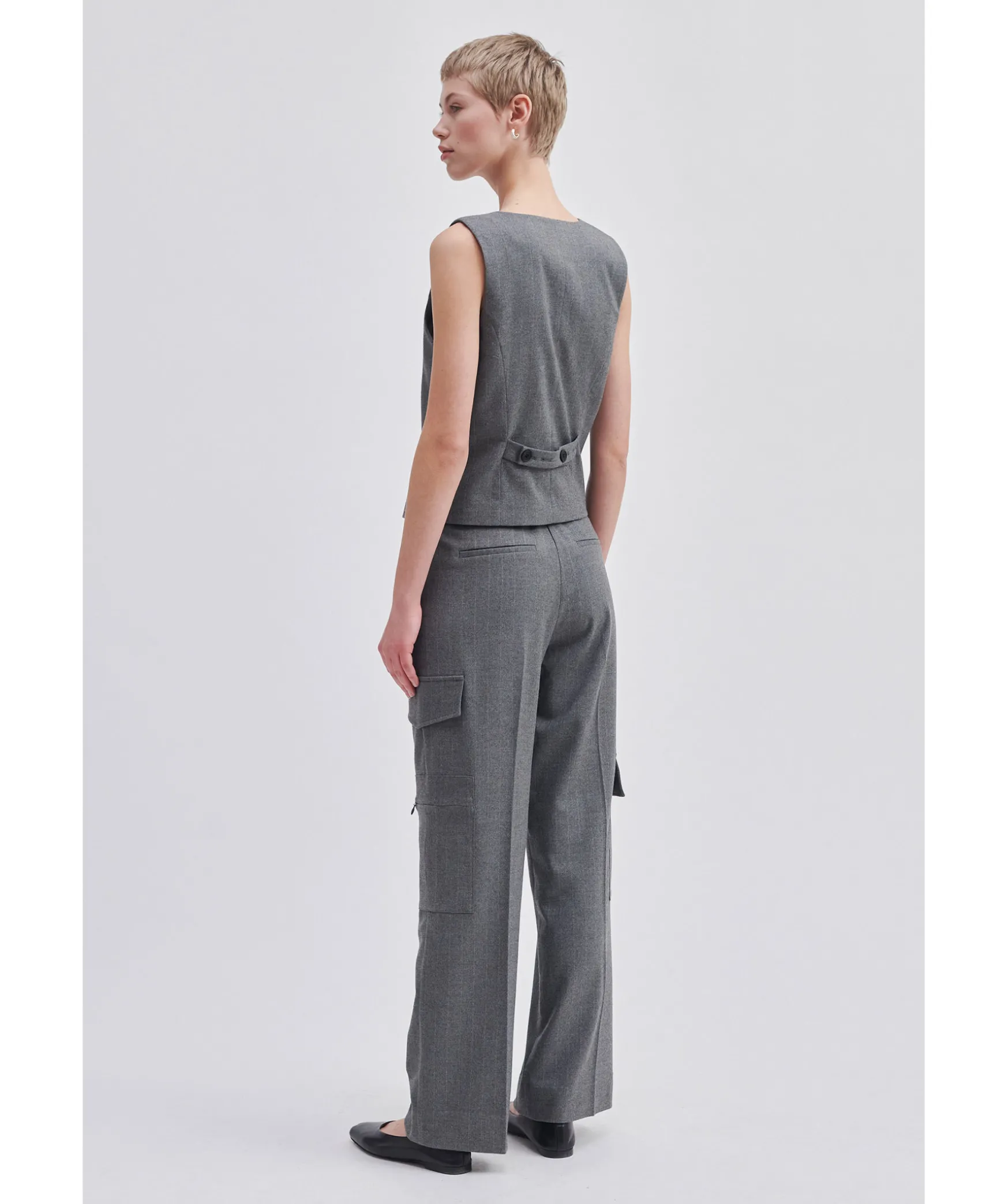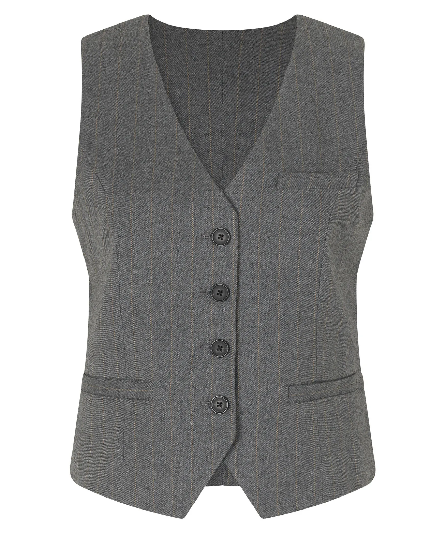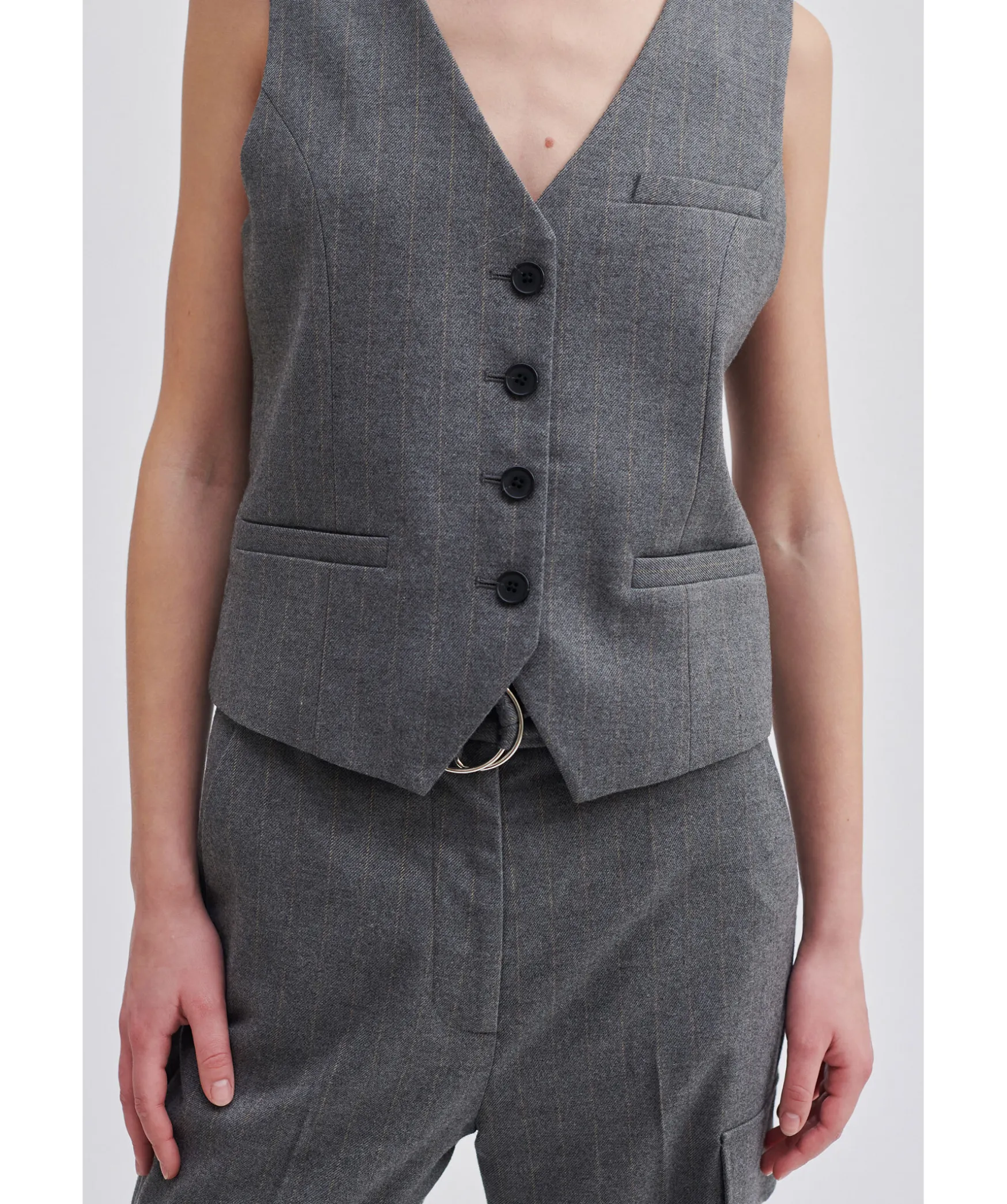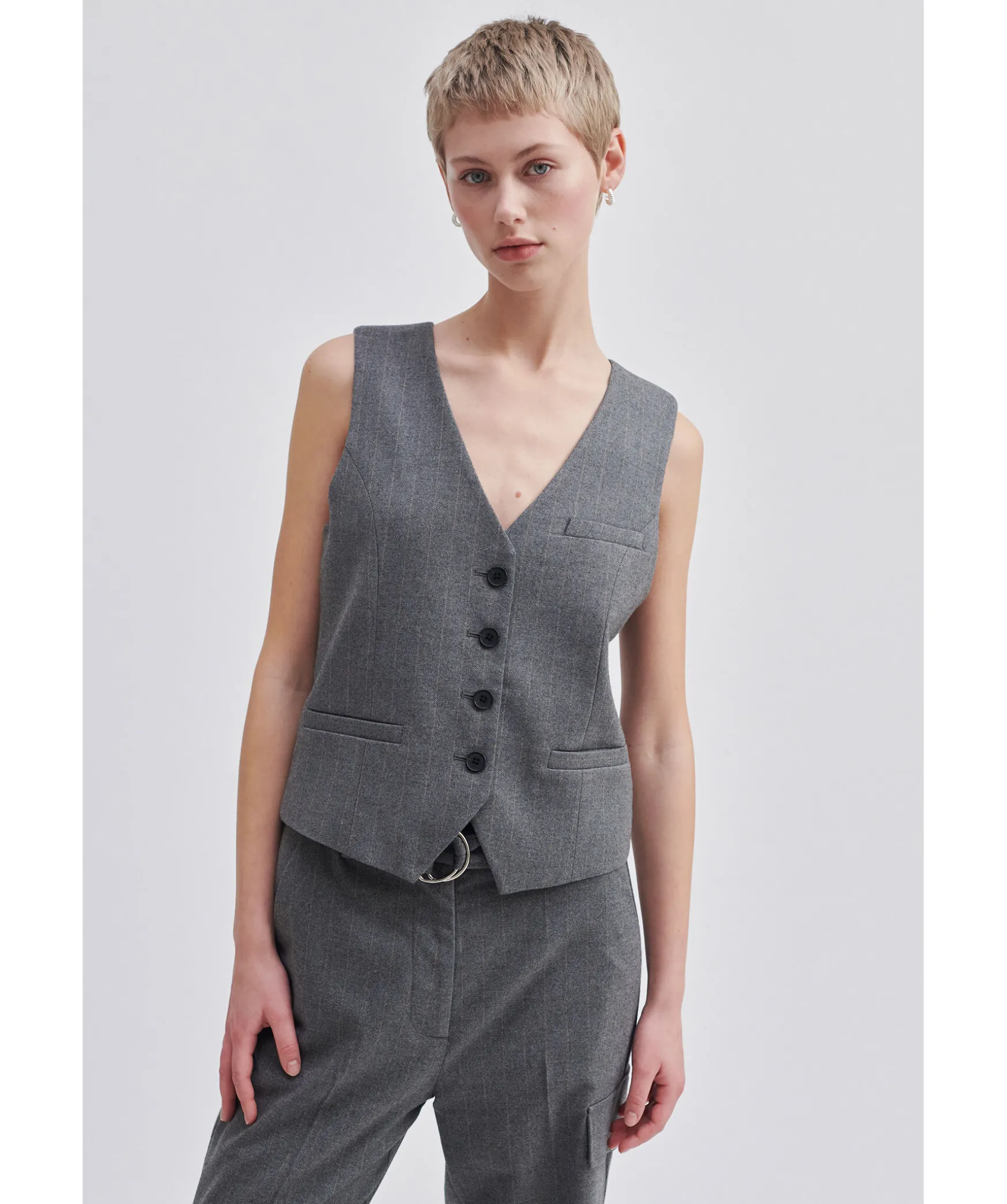 Gra Kostymvast Fran Second Female Med Kritstrecksrander. V-Ringad Och Stangs Med Fyra Knappar Framtill. Tre Dekorativa Passpoalfickor Framtill. Justerbart Balte Baktill. Nagot Figursydd Passform.
