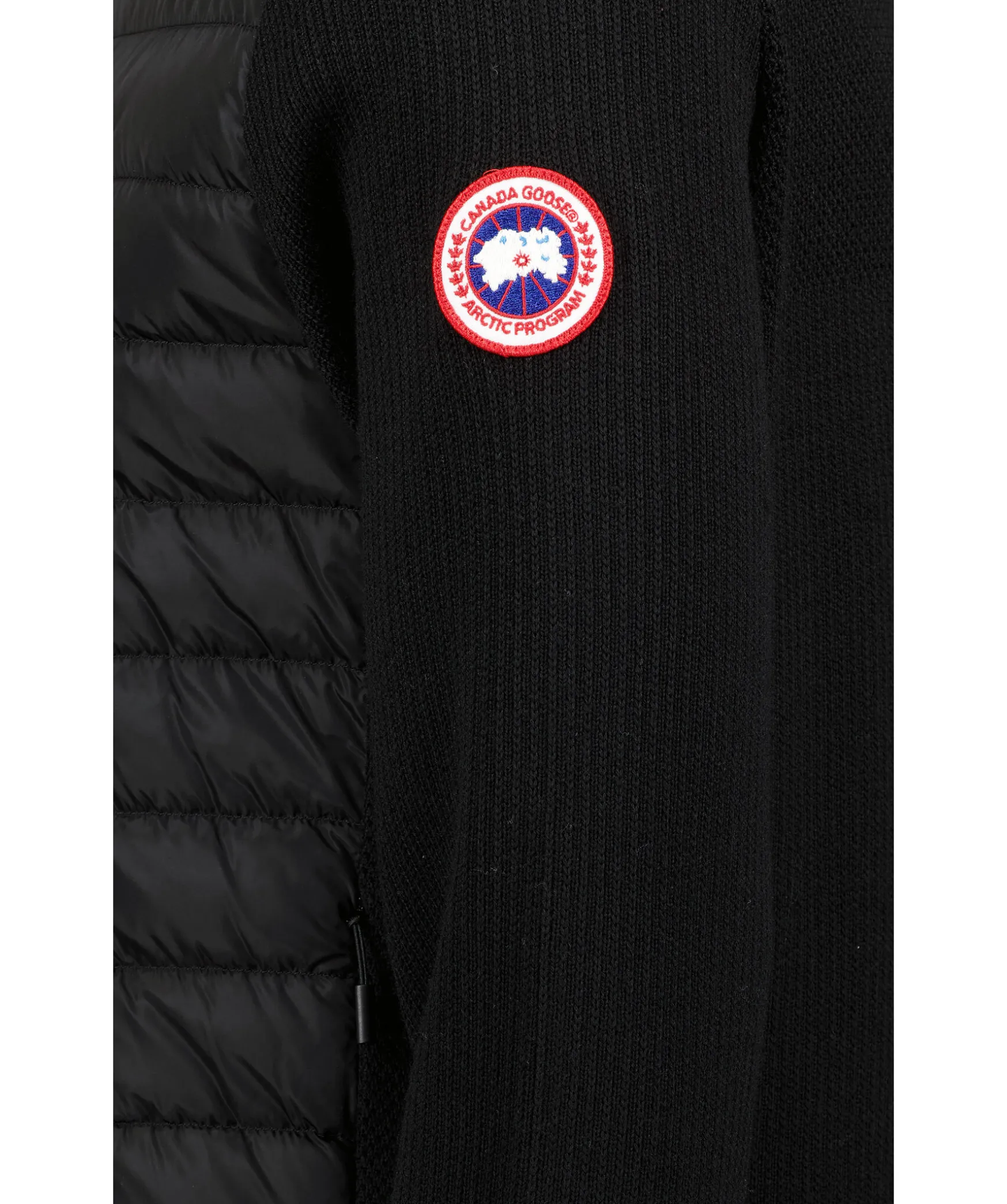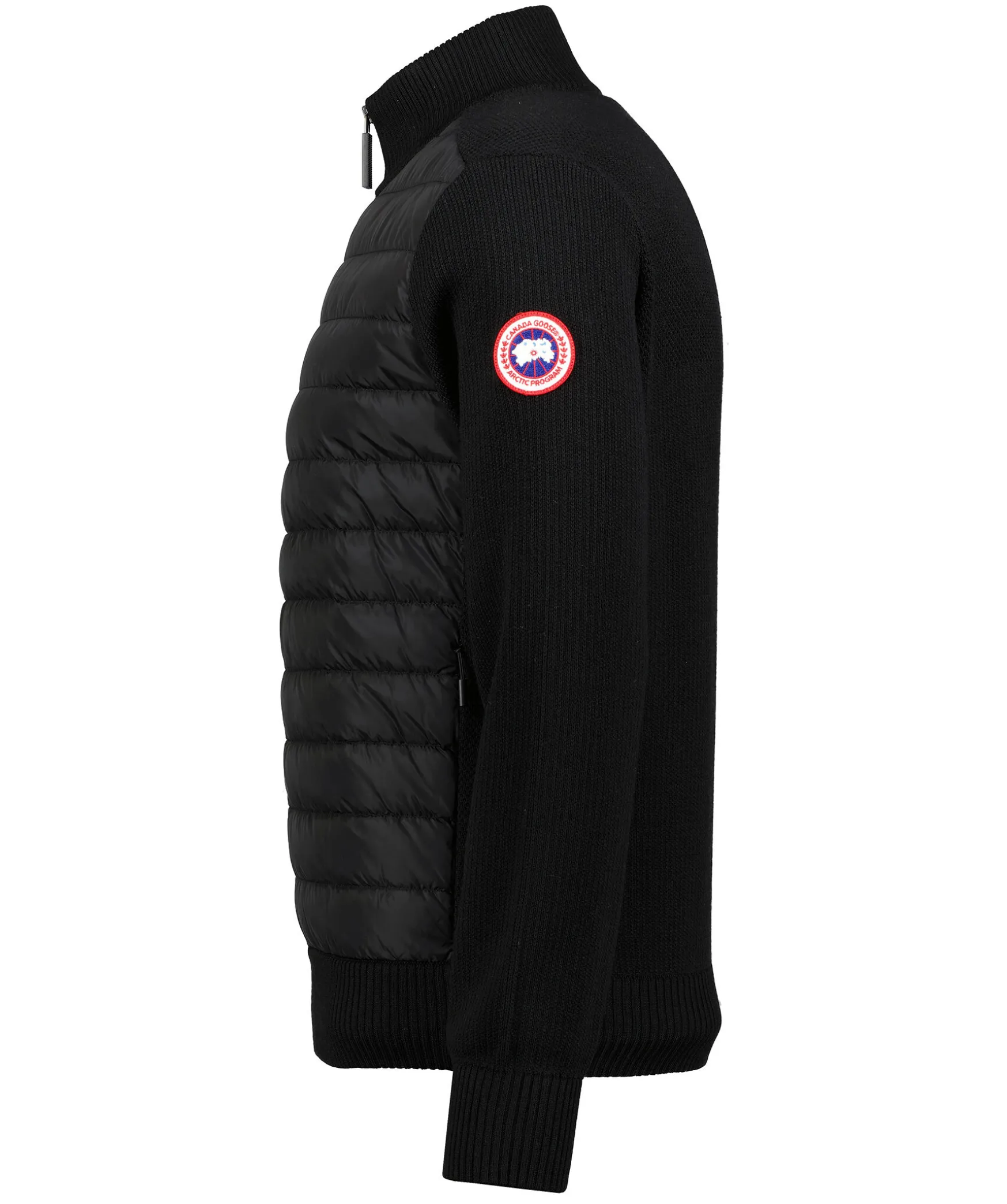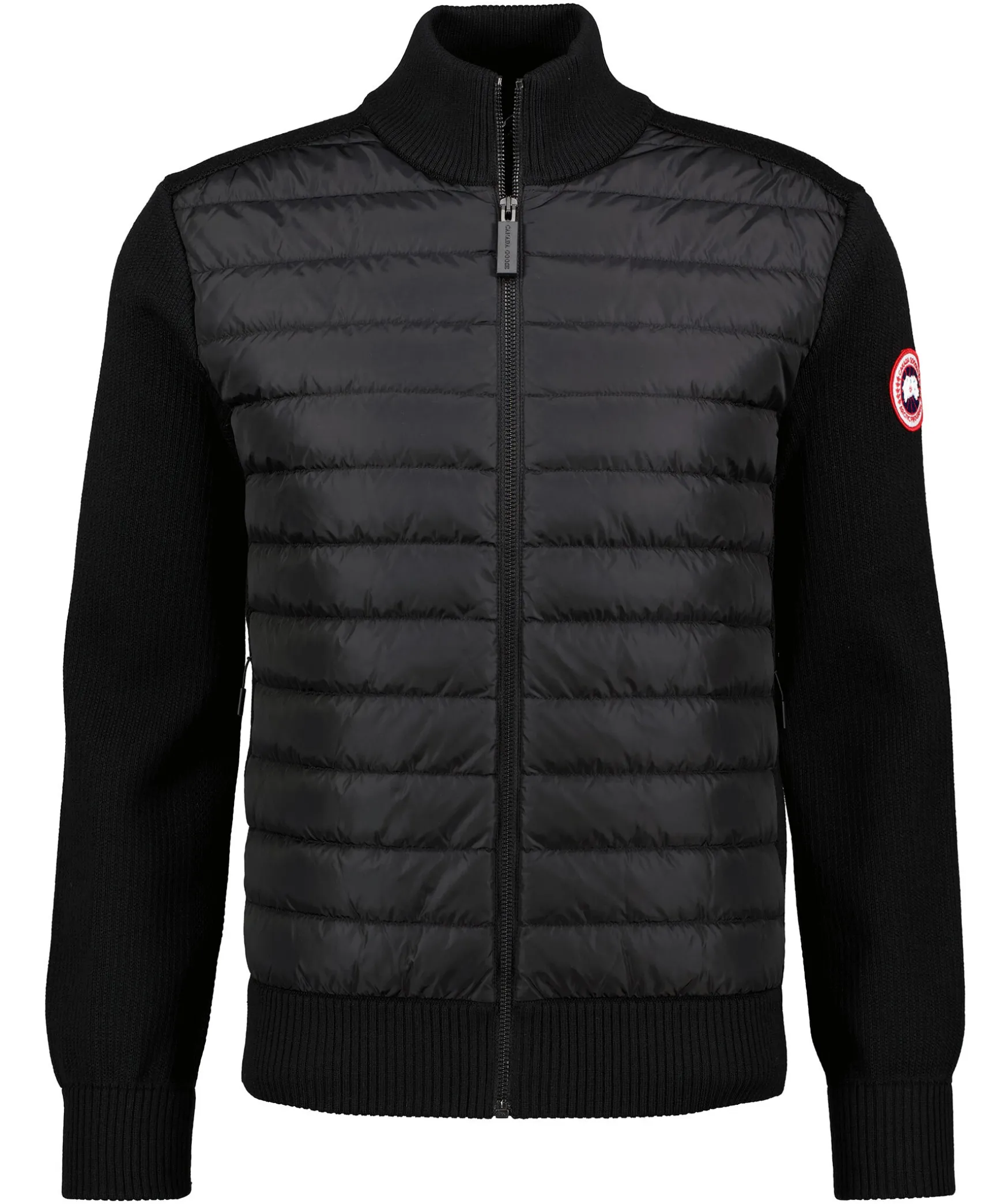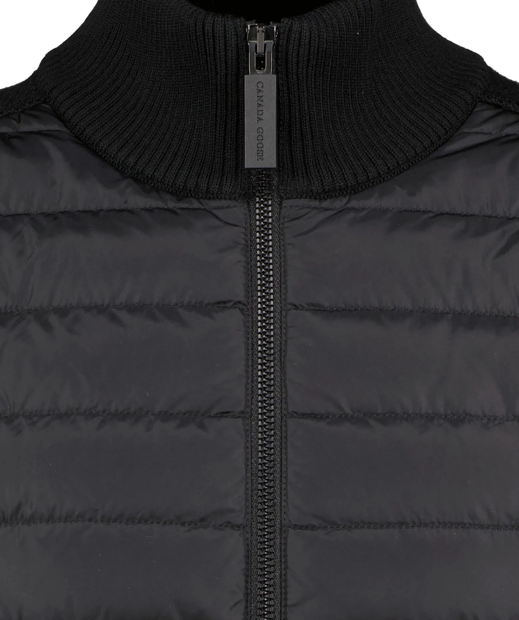 Svart Hybridjacka Med Frontpanel I Dun, Stickade Armar Och Krage I 100% Ull. Stangs Framtill Med Dragkedja. Fickor I Sidan Som Stangs Med Dragkedjor. Broderade Patch Med Logotyp. Ribbstickad Krage Och Muddar.
