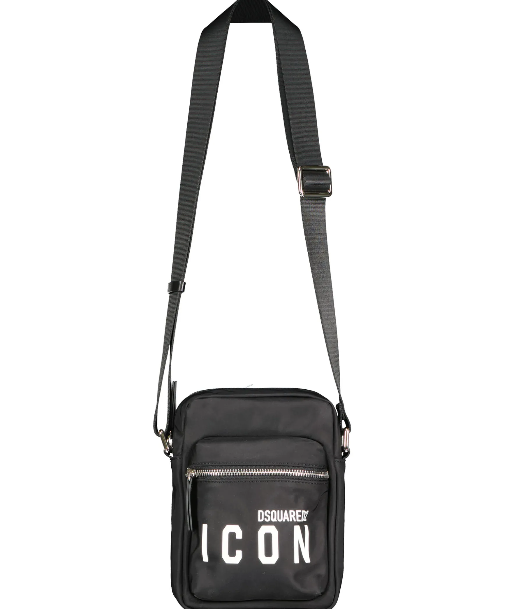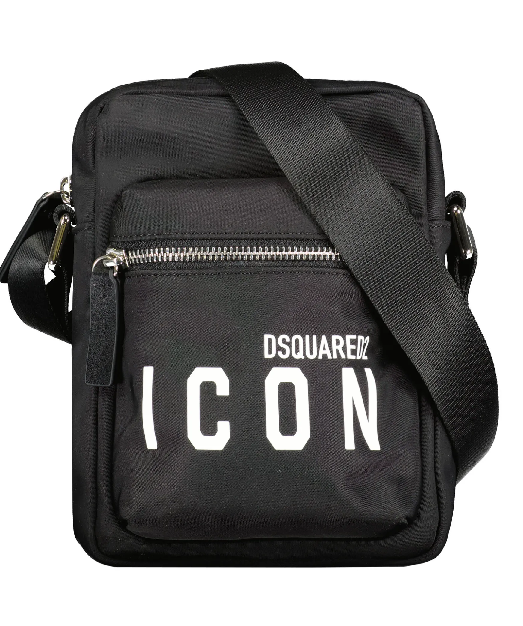 Svart Crossbody Bag Fran Dsquared2. Vit Logga Fram, Fack Med Dragkedjor. Reglerbart Spanne, Tillverkad I Textil Och Har Detaljer I Lader. Djup 5 Cm, Hojd 20 Cm, Bredd 15 Cm.