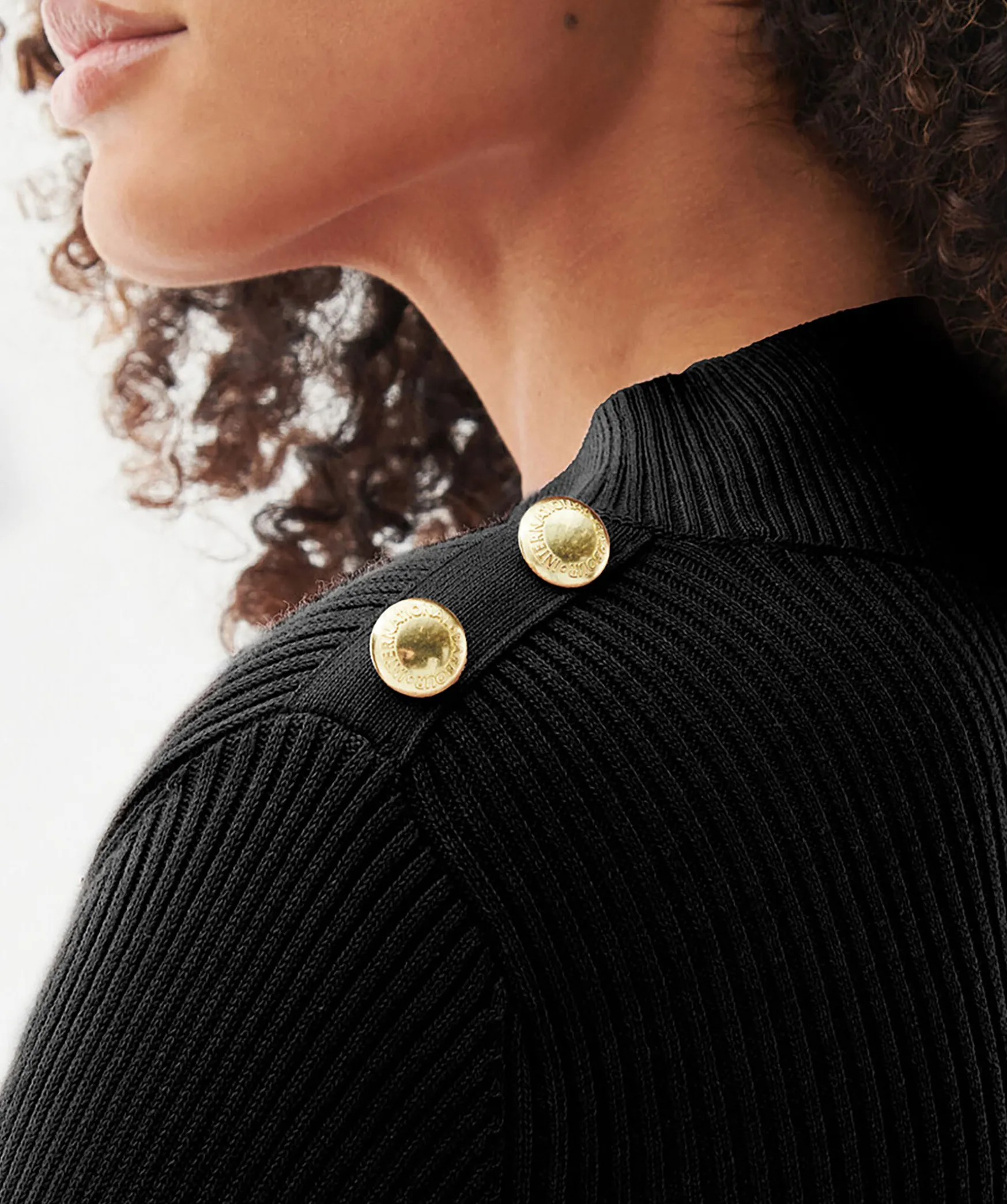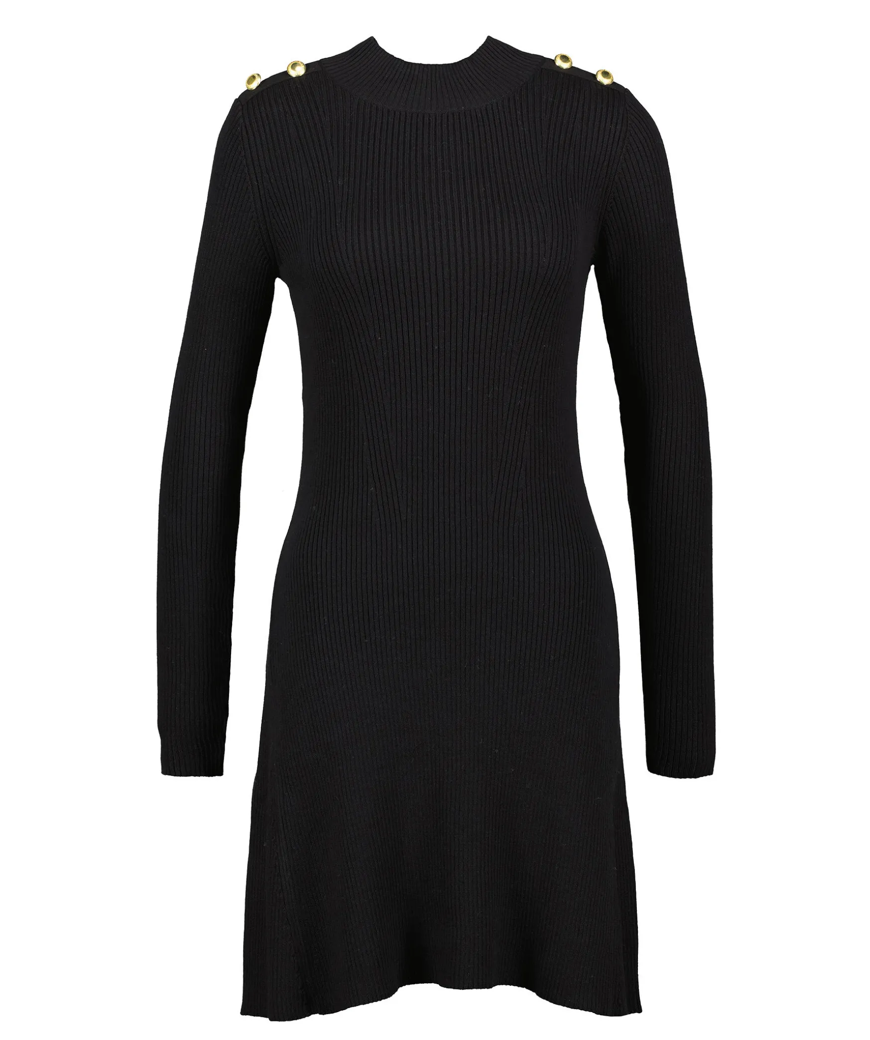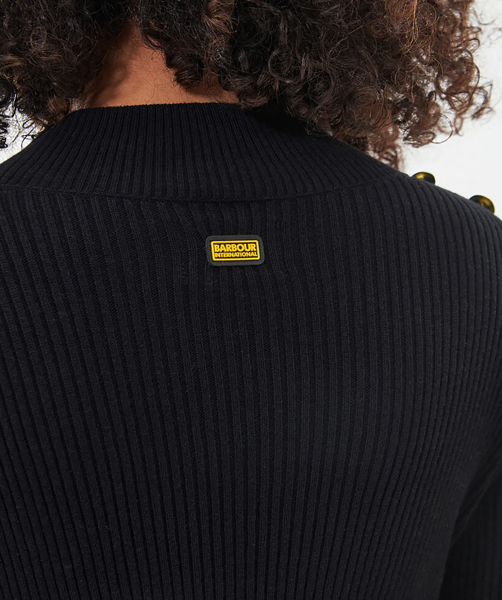 Svart Ribbstickad Klanning Med Langa Armar Fran Barbour. Tillverkad Av Bomull. Klanningen Har Deras Guldfargade Signaturknappar Pa Axlarna Och Nagot Hogre Hals. Gummerad Logotyp I Nacken. Slim Passform.