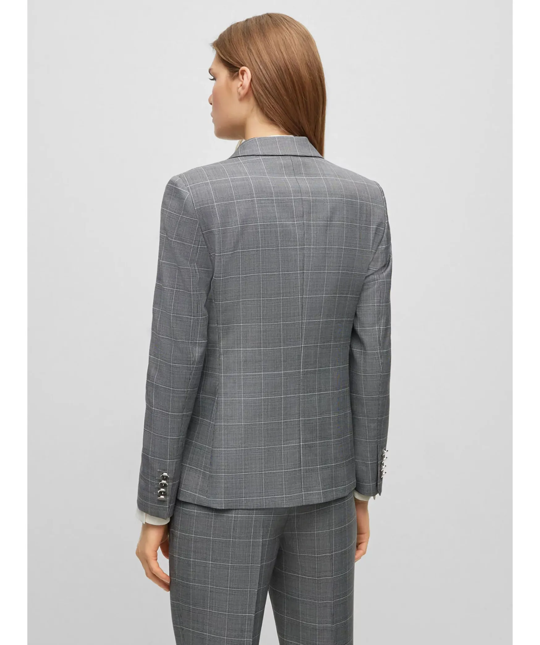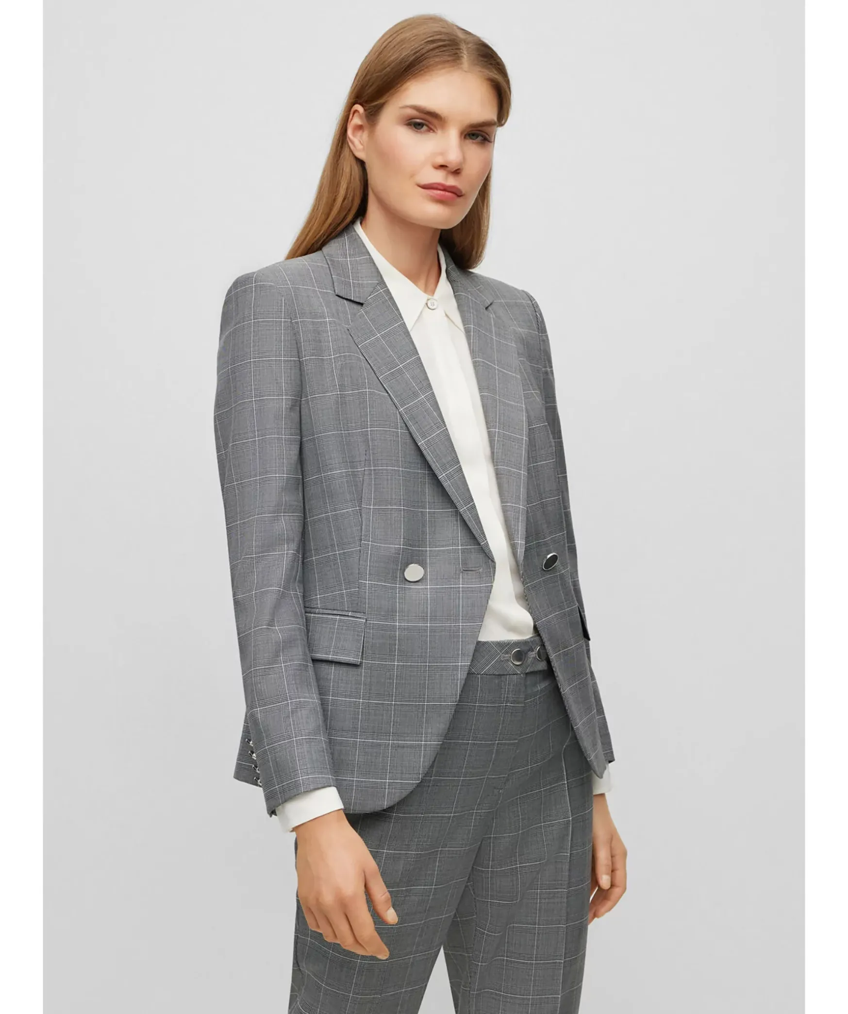 Gra Kostymjacka Med Normal Passform Fran Boss Black. Designad I Rutig Jungfruull Med En Dubbelknappt Stangning Med Hardvaruknappar. Tva Fickor Med Lock. Manschetter.