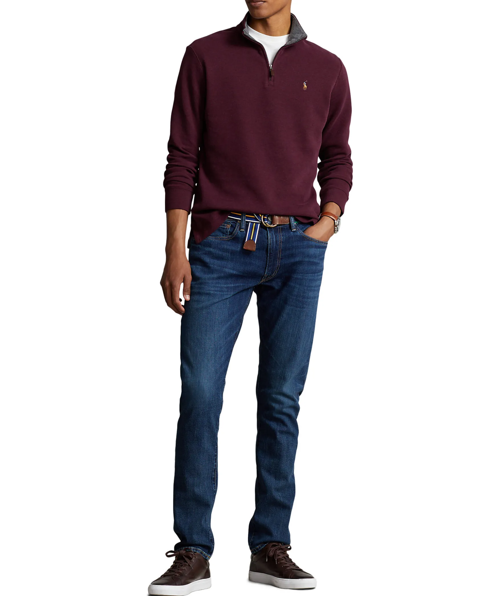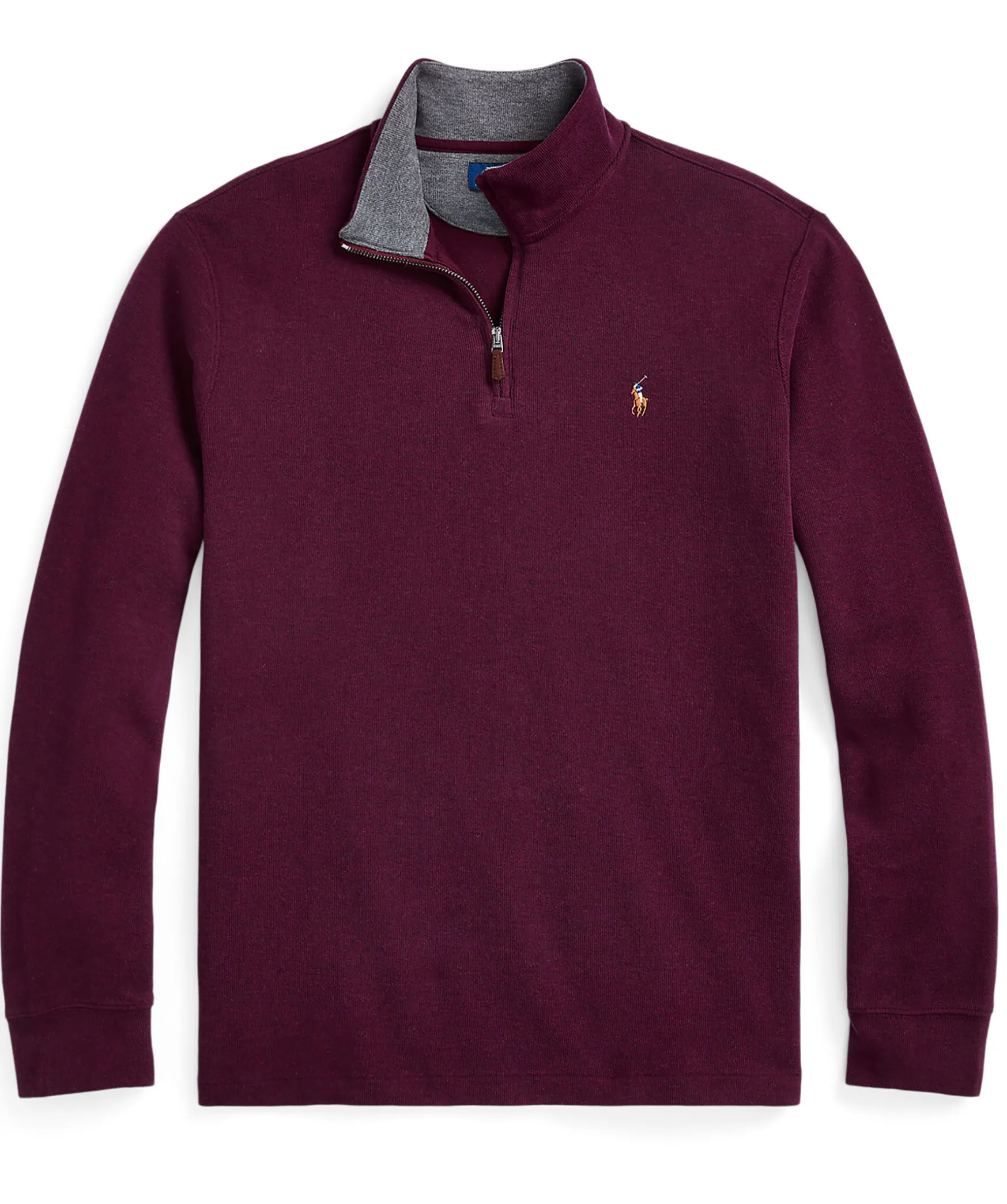 Vinrod Finstickad Half-Zip Fran Polo Ralph Lauren. Broderad Logotyp Pa Vanster Brost. Ribbstickade Arm- Plaggslut. Tillverkad I 100% Bomull. Korta Slitsar I Sidorna.