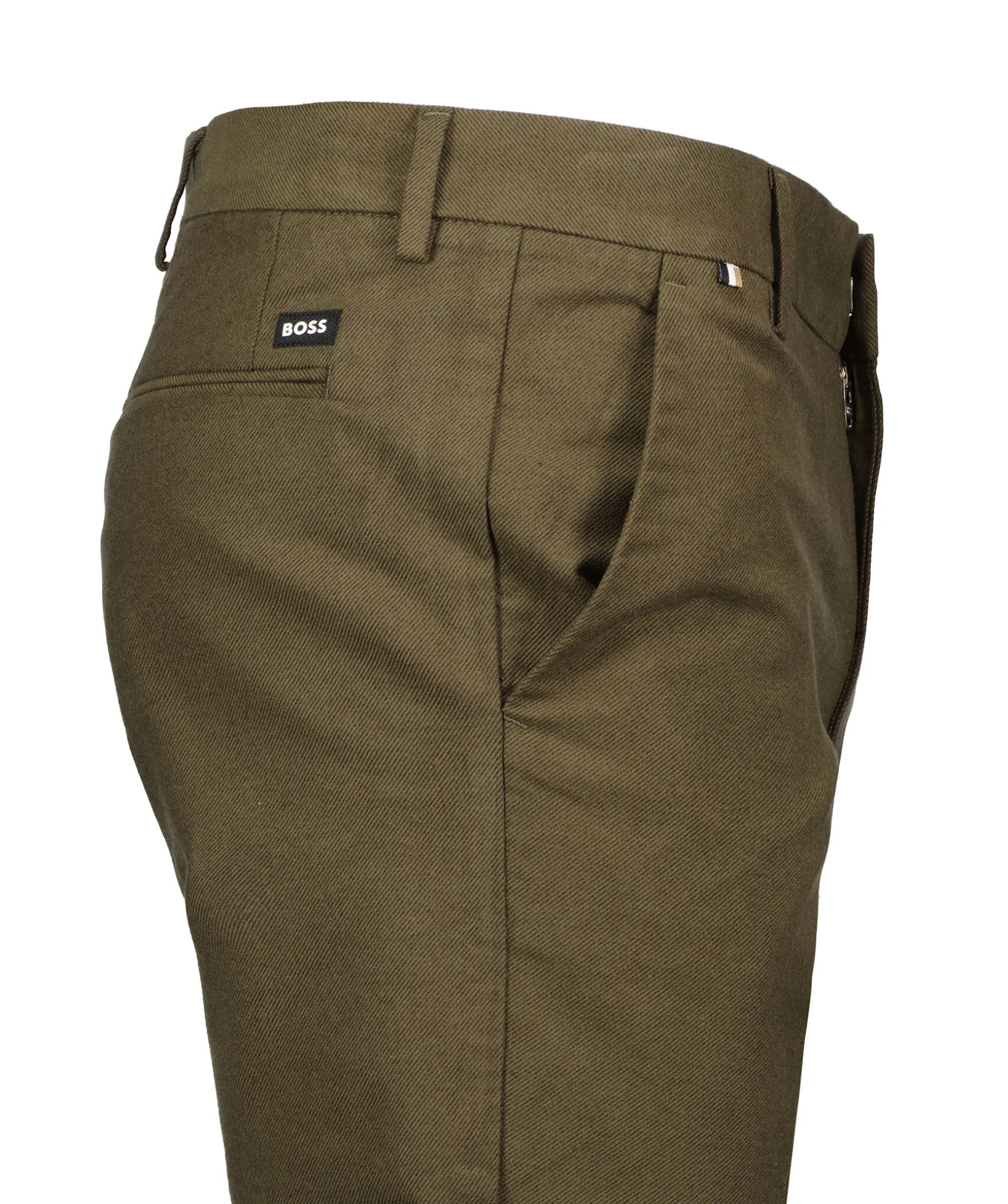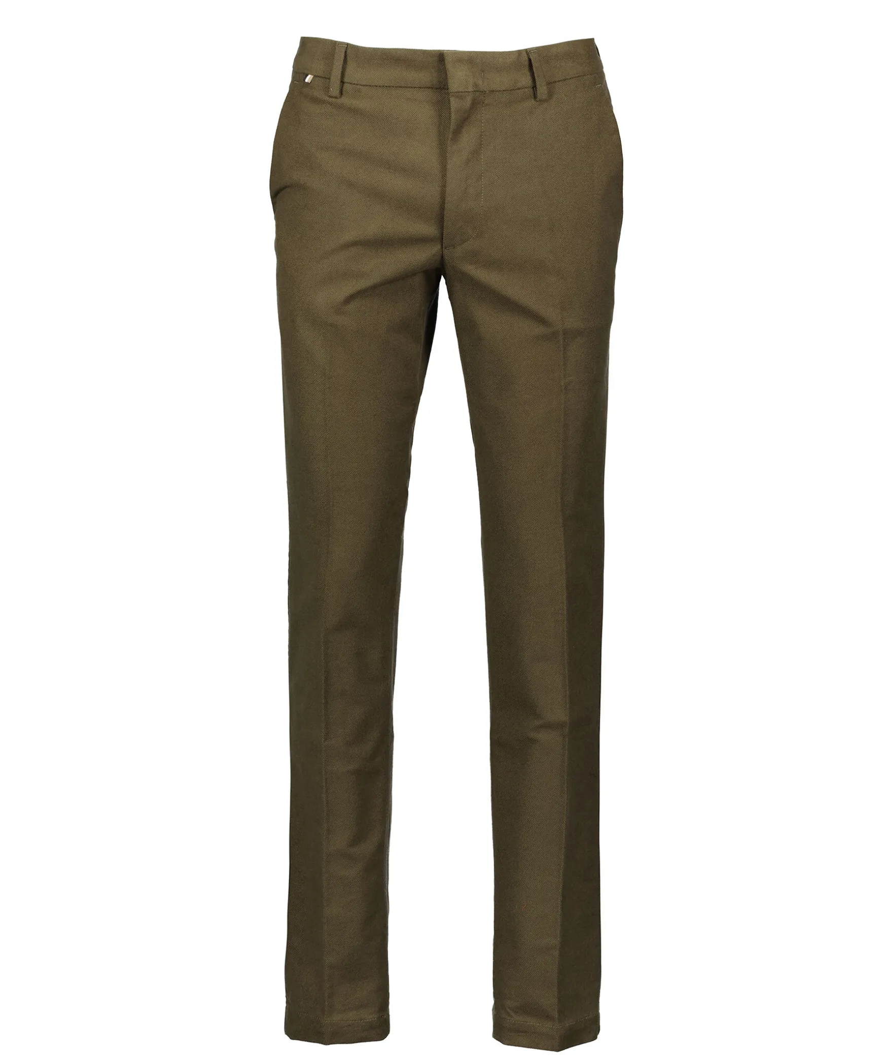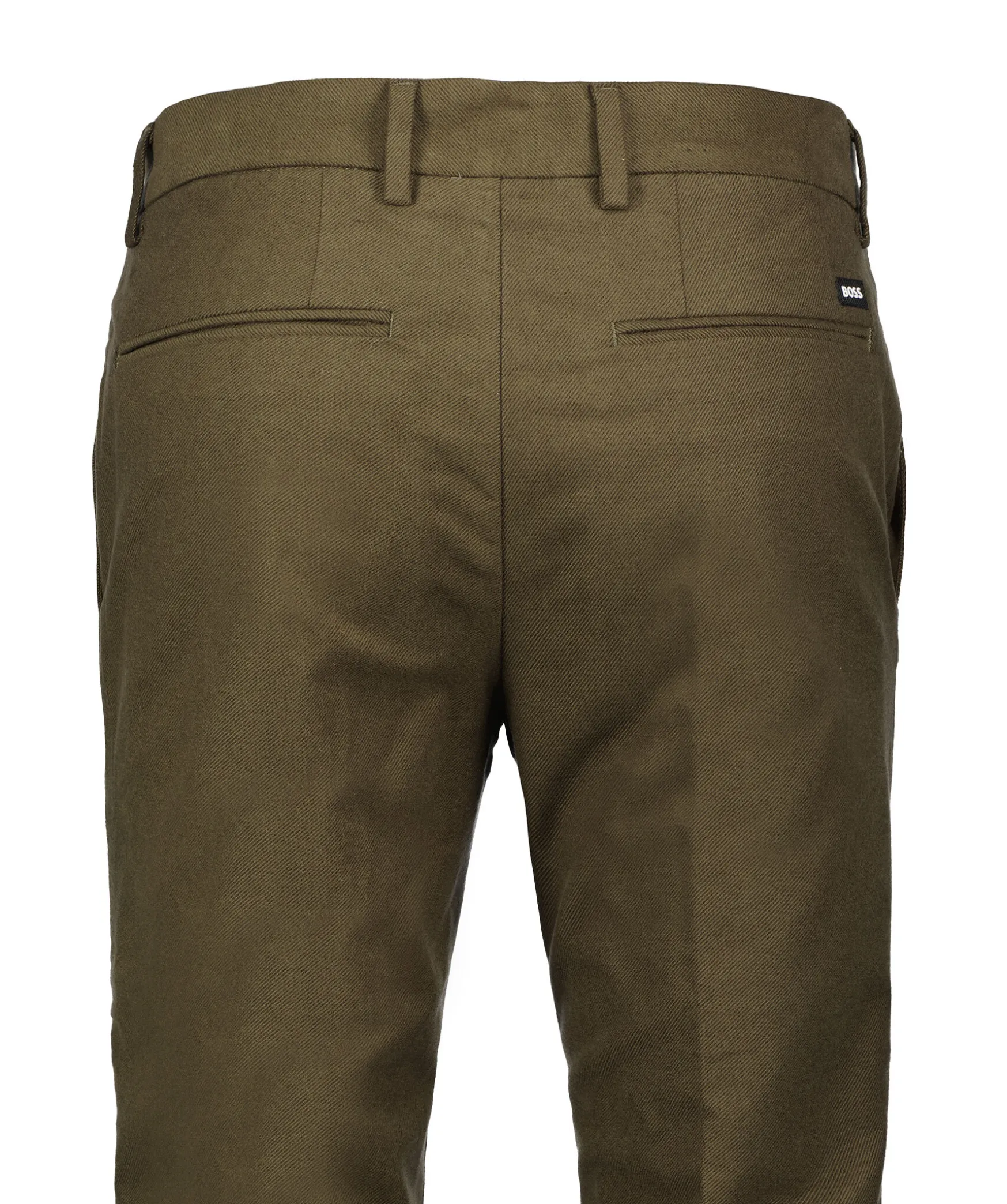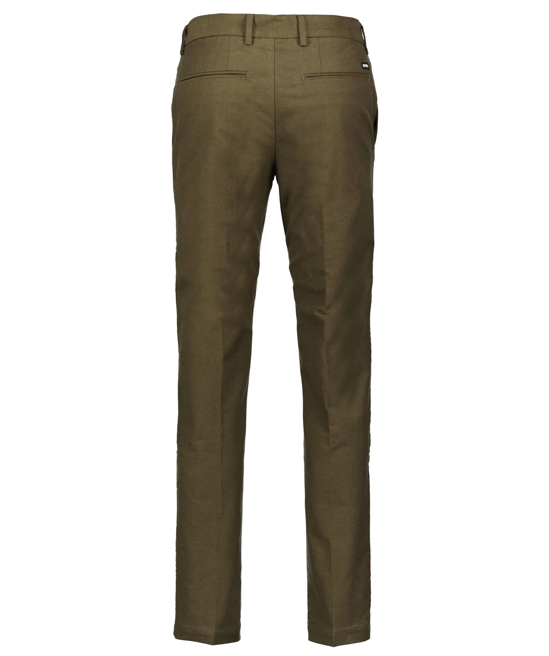 Skogsgrona Byxor Fran Boss Black. Tillverkade I En Bomullsblandning. Tva Snedstallda Sidfickor, Tva Bakfickor Samt En Lite Svart Och Vit Logotyp Over Hogra Bakfickan. Balteshallor.