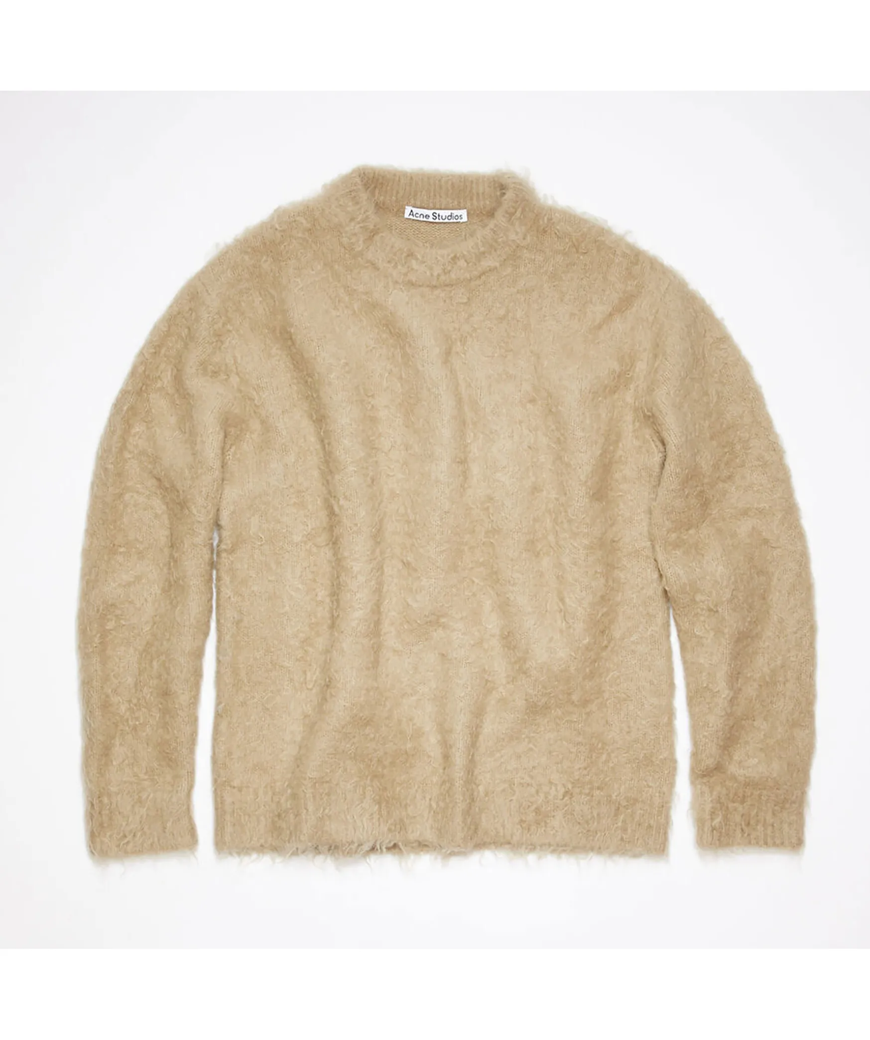 Beige Stickad Troja Fran Acne Studios. Tillverkad I Mohair Blandning. Rundad Halsringning. Ribbstickade Muddar Vid Ringning, Arm- Och Plaggslut. Avslappnad Passform.