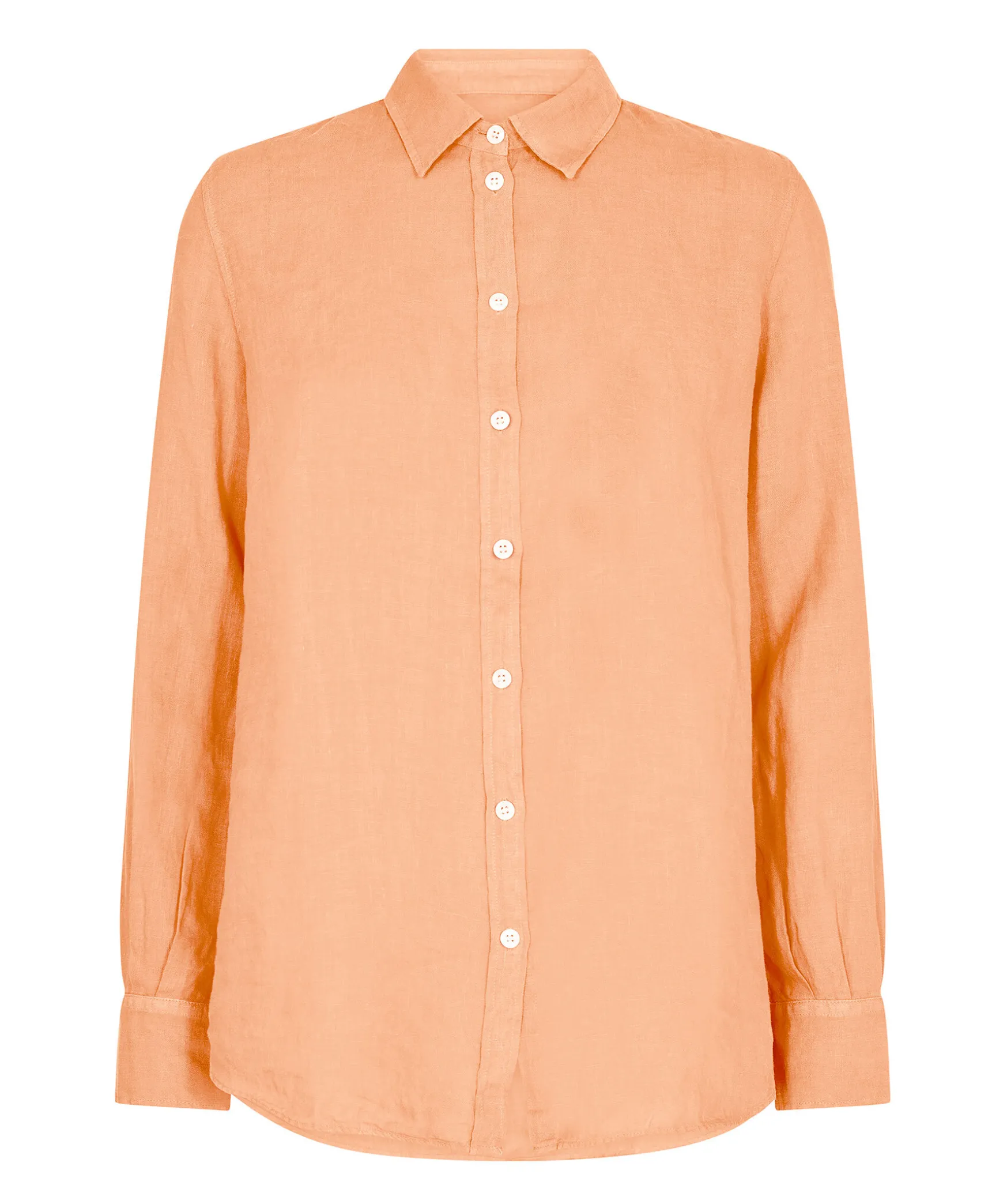 Orange Skjorta I Linne Fran Mos Mosh. Klassisk Krage, Ljusa Knappar. Tillverkad I 100% Linne. Enkla Manschetter. Boxpleat Baktill Pa Ryggen.