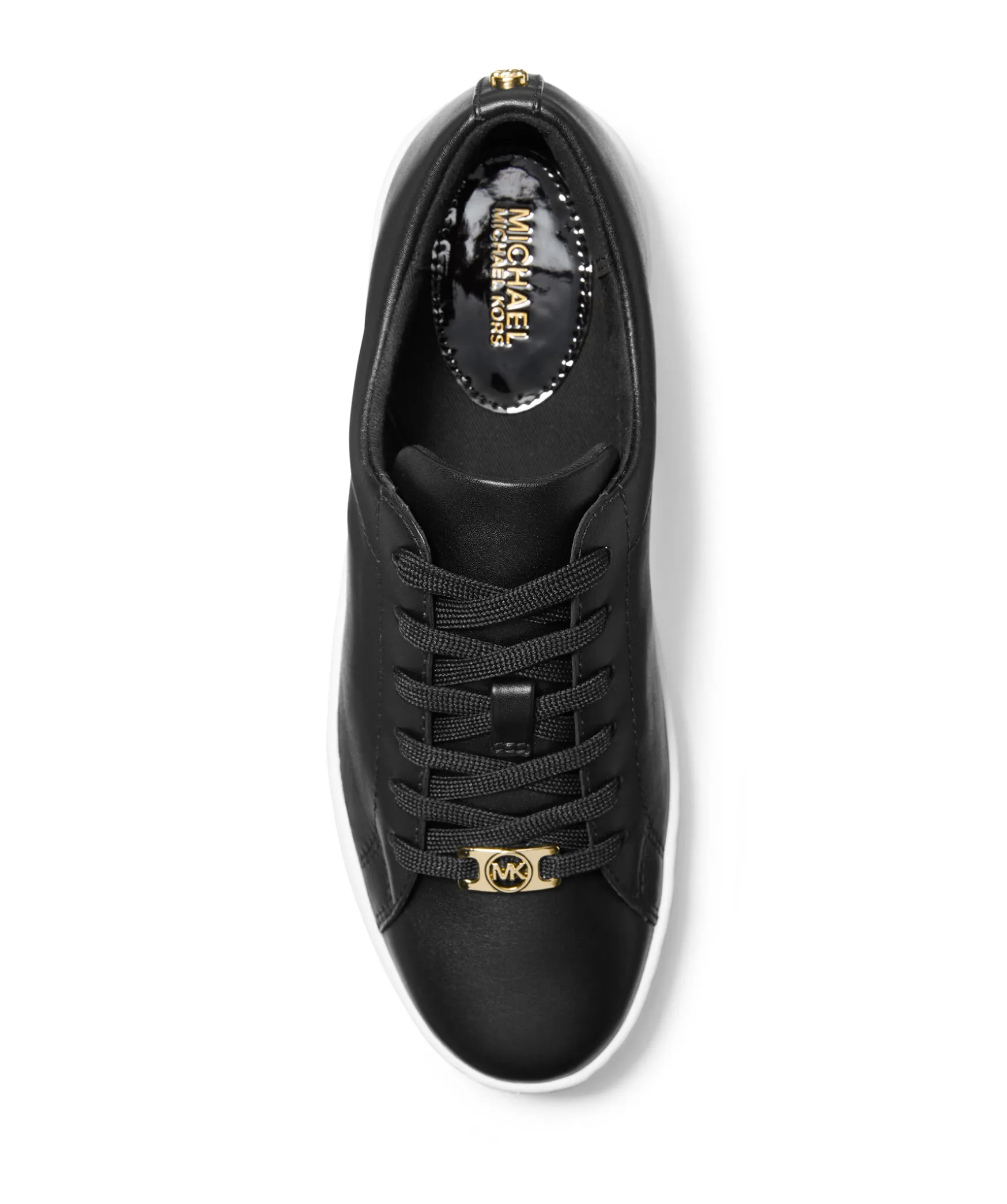 Svarta Sneakers I Lader Fran Michael Kors. Guldfargad Logotyp I Metall Pa Snorningen. Bricka I Metall Pa Halen Med Praglad Logotyp. Logotyp Pa Sulan.