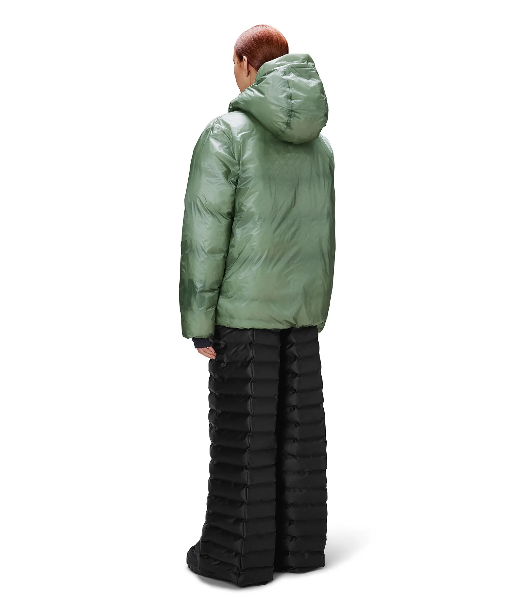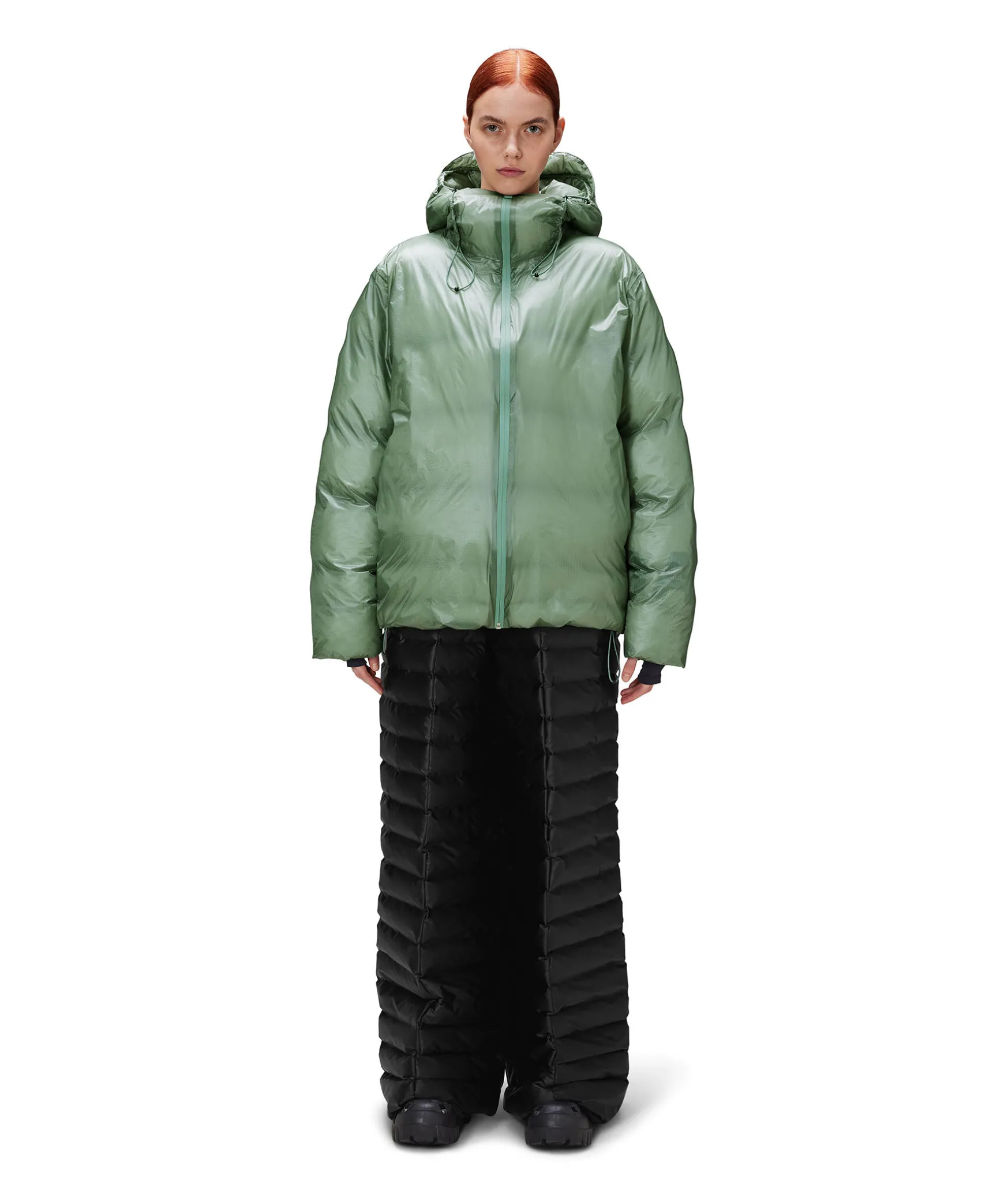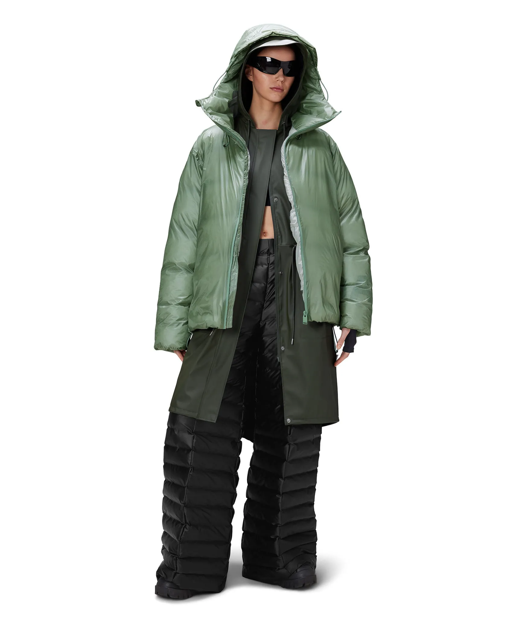 Gron Puffer Jacka Fran Rains. En Vattentat Vinterjacka Med En Lyxigt Sportig Estetik. For Kevo-Serien Svanger Rains Pa Den Klassiska Puffer-Looken. Pa Utsidan Hittar Du Semi-Transparent Vattentat Nylon Med Belaggning Pa Baksidan Och Mjuk Matt Finish. Oppna Jackan For Att Avsloja Fjaderlosa Pufferkamrar Pa Insidan. Plagget Ar Vattentatt Och Andas, Vilket Haller Dig Varm Och Bekvam I De Kallaste Vadren. Jackan Har Gummerat Blixtlas, Tejpade Sommar, Dolda Sidsomsfickor Och Dolda Stormmanschetter I Jersey. Silhuetten Fullandas Av En Isolerad Huva Med Ett Flertal Elastiska Dragskor.