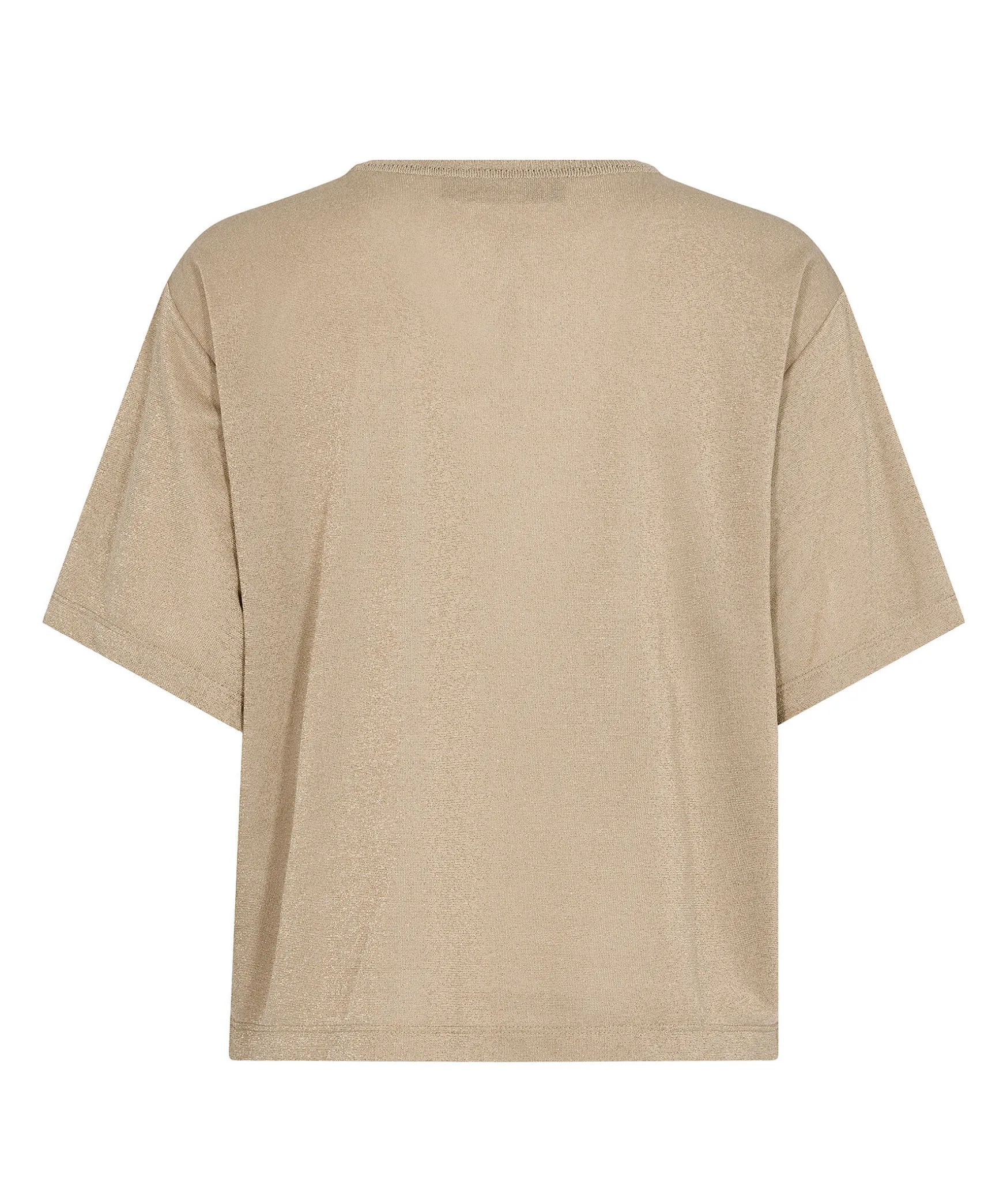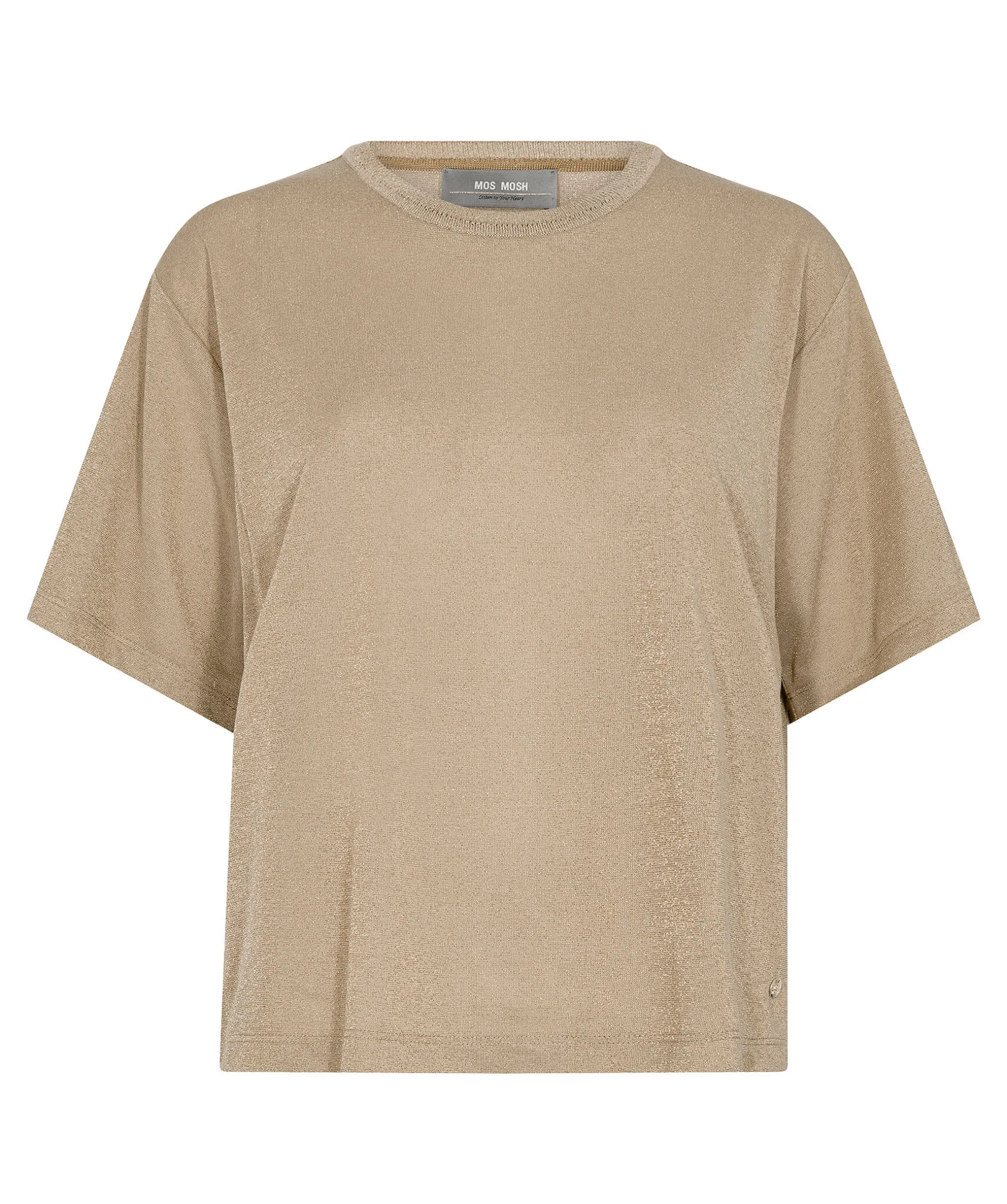 Guldglittrig T-Shirt Fran Mos Mosh. Ribbstickad Halsringning, Liten Logotyp Vid Plaggslut. Tillverkad Av En Viskosblandning.