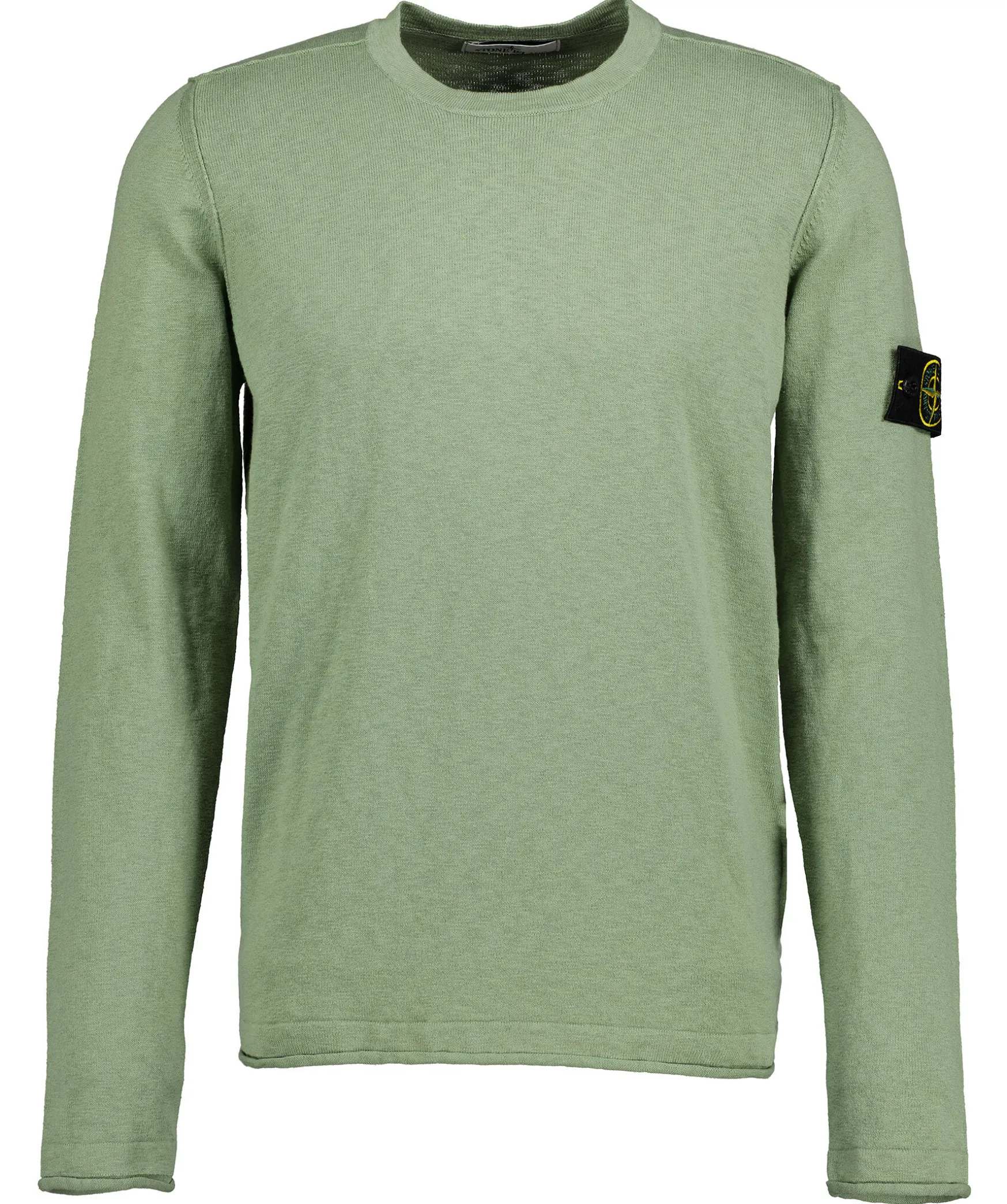Gron Stickad Troja Fran Stone Island. Trojan Ar Gjord I En Blandning Av Bomull Och Nylon. Ribbad Mudd Vid Halsringen Och Rullade Kanter Vid Arm Och Plaggslut. Avtagbar Tygpatch Med Logotyp Pa Vanster Overarm.
