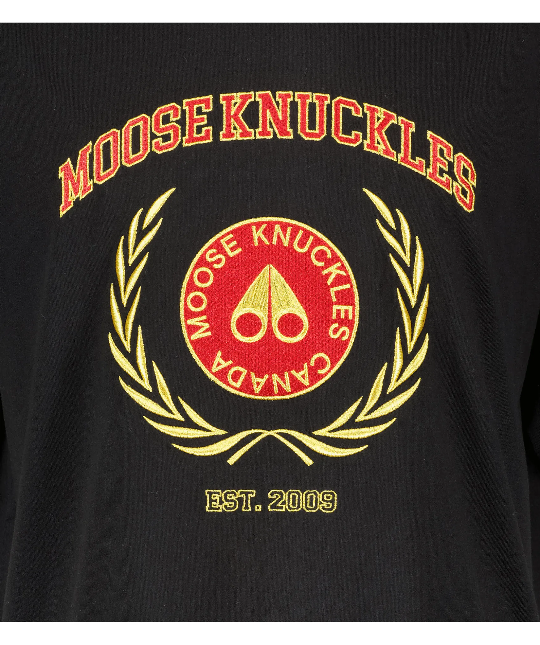 Svart T-Shirt Fran Moose Knuckles. Tillverkad I 100% Bomull. Broderat Moose Knuckles Logotyptryck Pa Brostet I Universitetsinspirerad Stil. Ribbstickad Halsringning Samt Gummerad Logotyp Pa Vanster Arm. Avslappnad Passform.