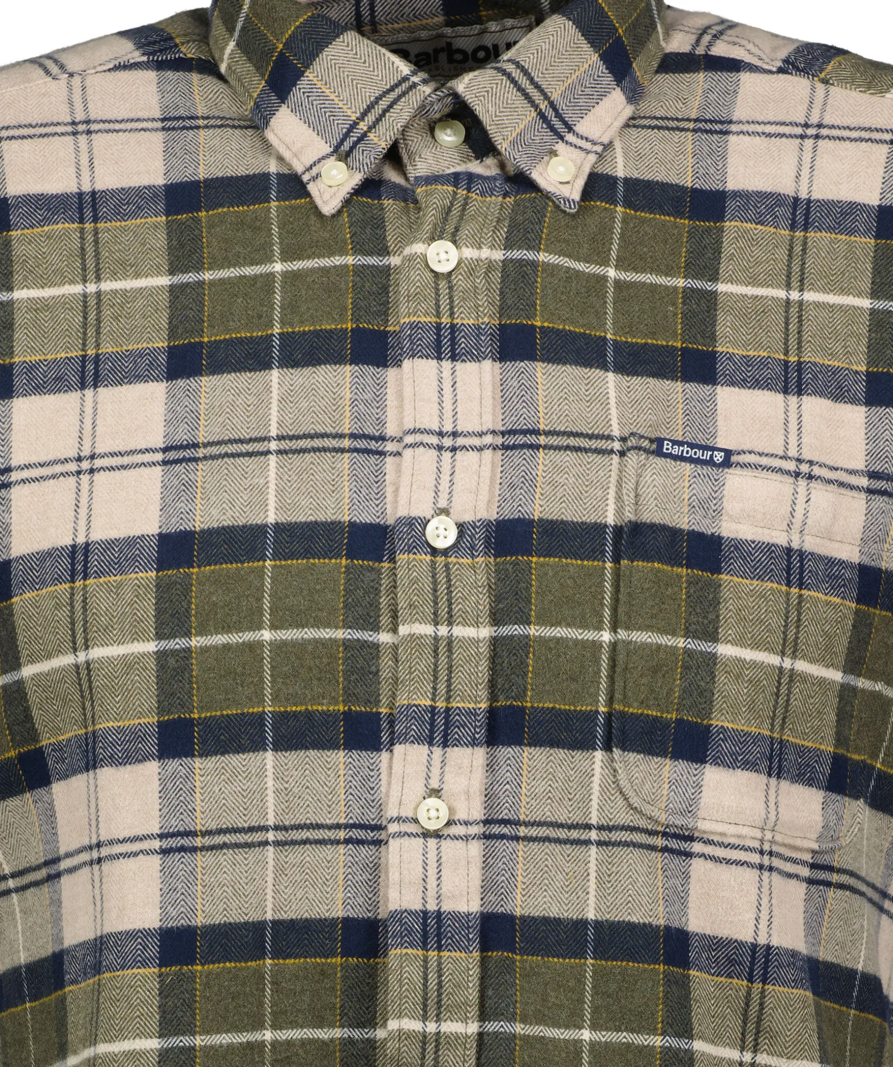 Multifargad, Rutig Skjorta Fran Barbour I Fargerna Gront, Beiget Och Blatt. Tillverkad I 100% Bomull. Button Down Krage, En Brostficka Med Liten Logotyplapp. Skraddarsydd Passform.