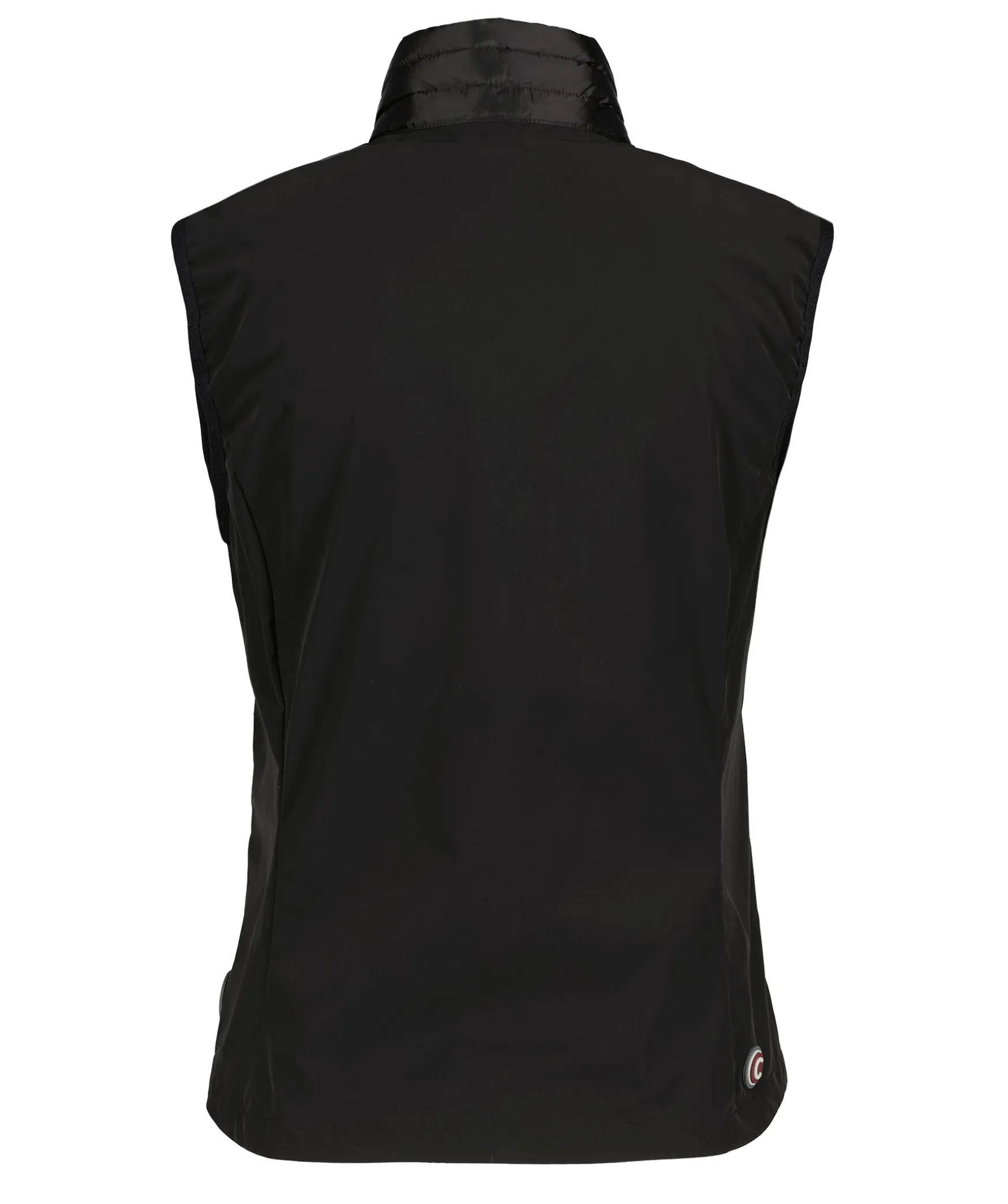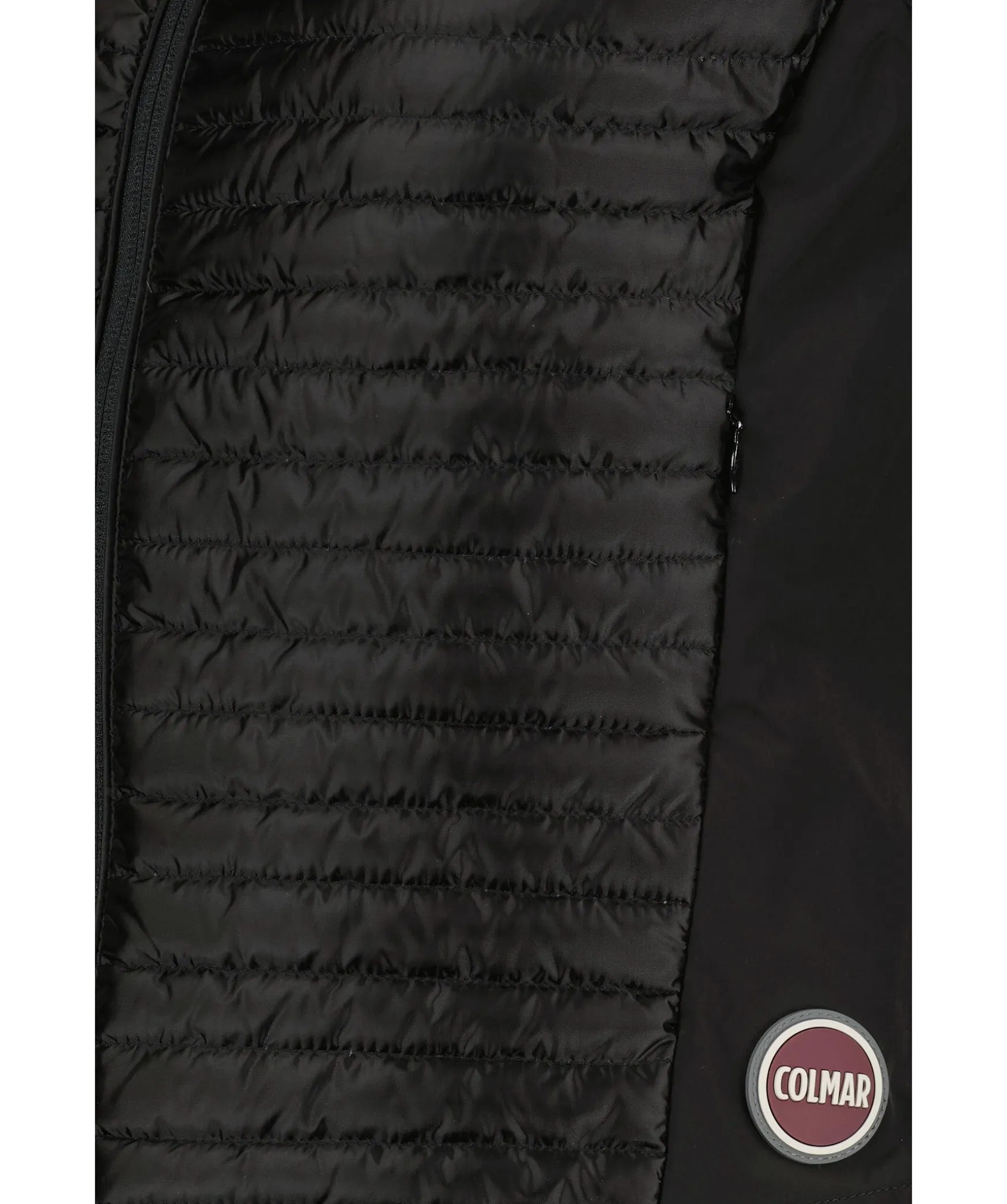 Svart Hybridvast Med Dunfyllning Fram Och Tunt Tyg I Sidorna Och Bak Fran Colmar. Stangs Med Dragkedja Fram Och Har En Medelhog Krage Med Dragkedja Anda Upp. Tva Fickor Med Dolda Dragkedjor Fram Och Rund Gummerad Logotyp Fram Och Bak Vid Hoften.