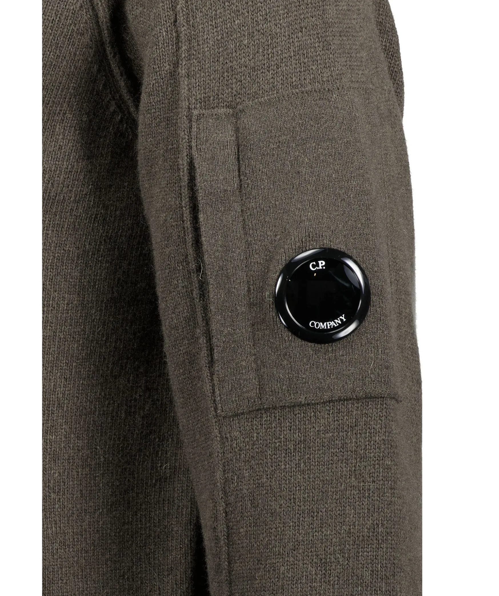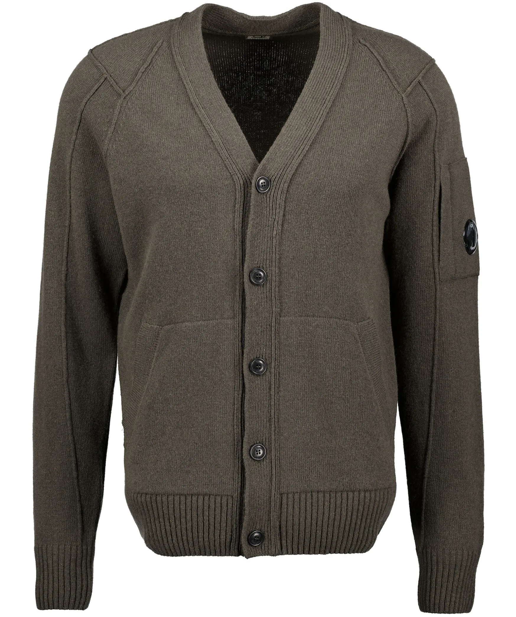 Morkgron Klassisk Cardigan Fran C.P Company. Koftan Har Tonala Sommar, Knappar, Med Kantiga Framfickor, Ribbstickade Armslut Och Fall, Och Med C.P. Foretagslinsdetalj. Stickad I Lammull For En Passform Som Ar Latt, Isolerande Och Mjuk Vid Beroring.