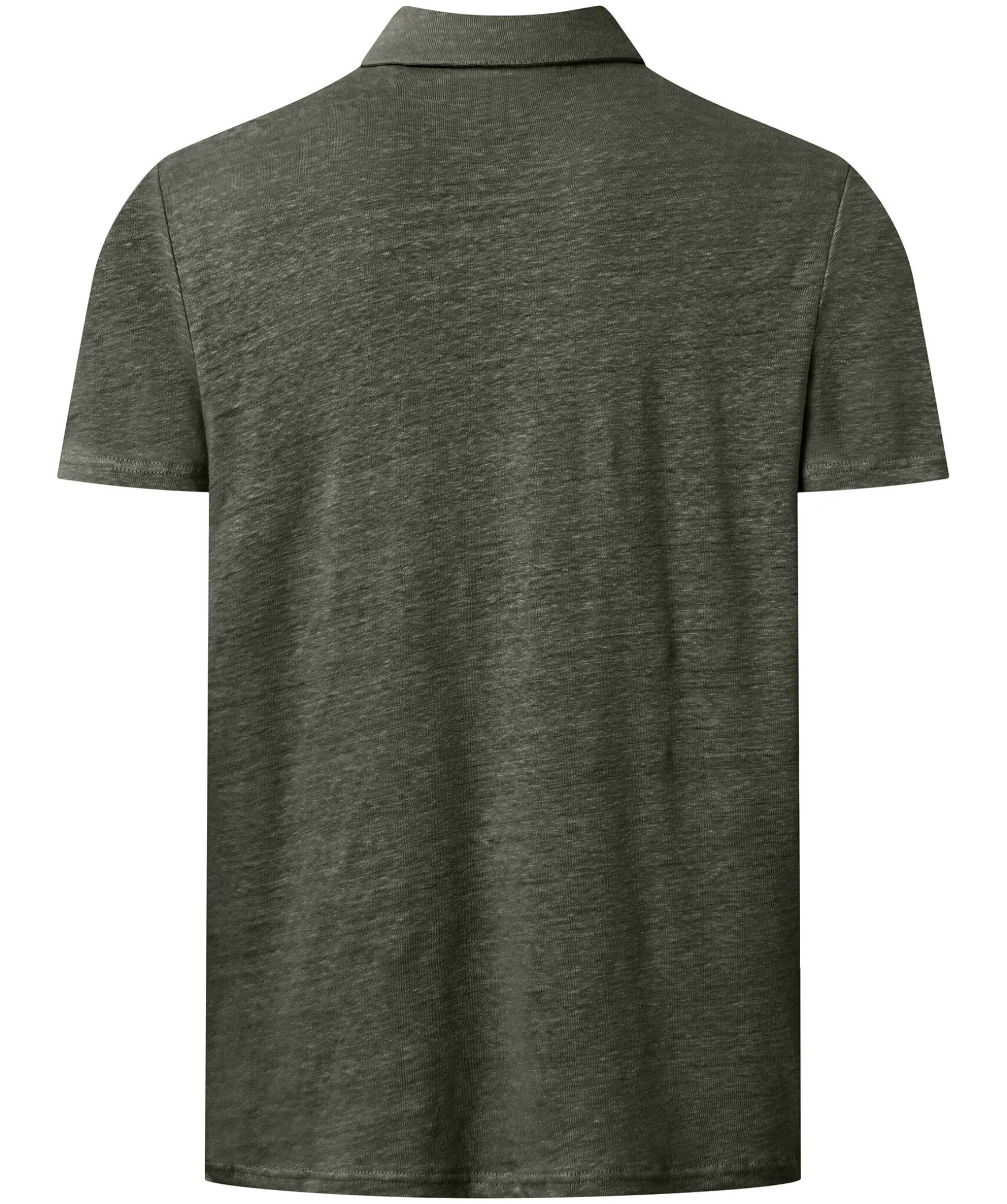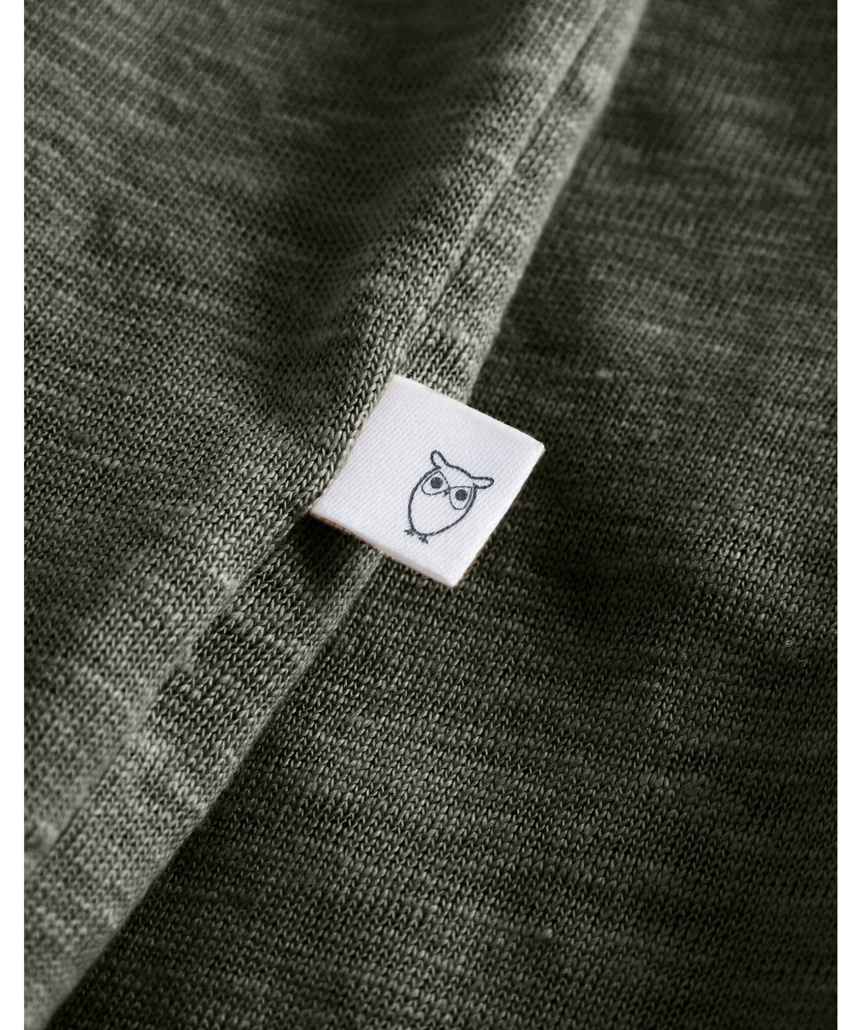 Mjuk Piketroja Fran Knowledge Cotton I En Melerad Olivgron Farg. Tillverkad I 100% Ekologisk Linne. Normal Passform. Tre Knappar Framtill.