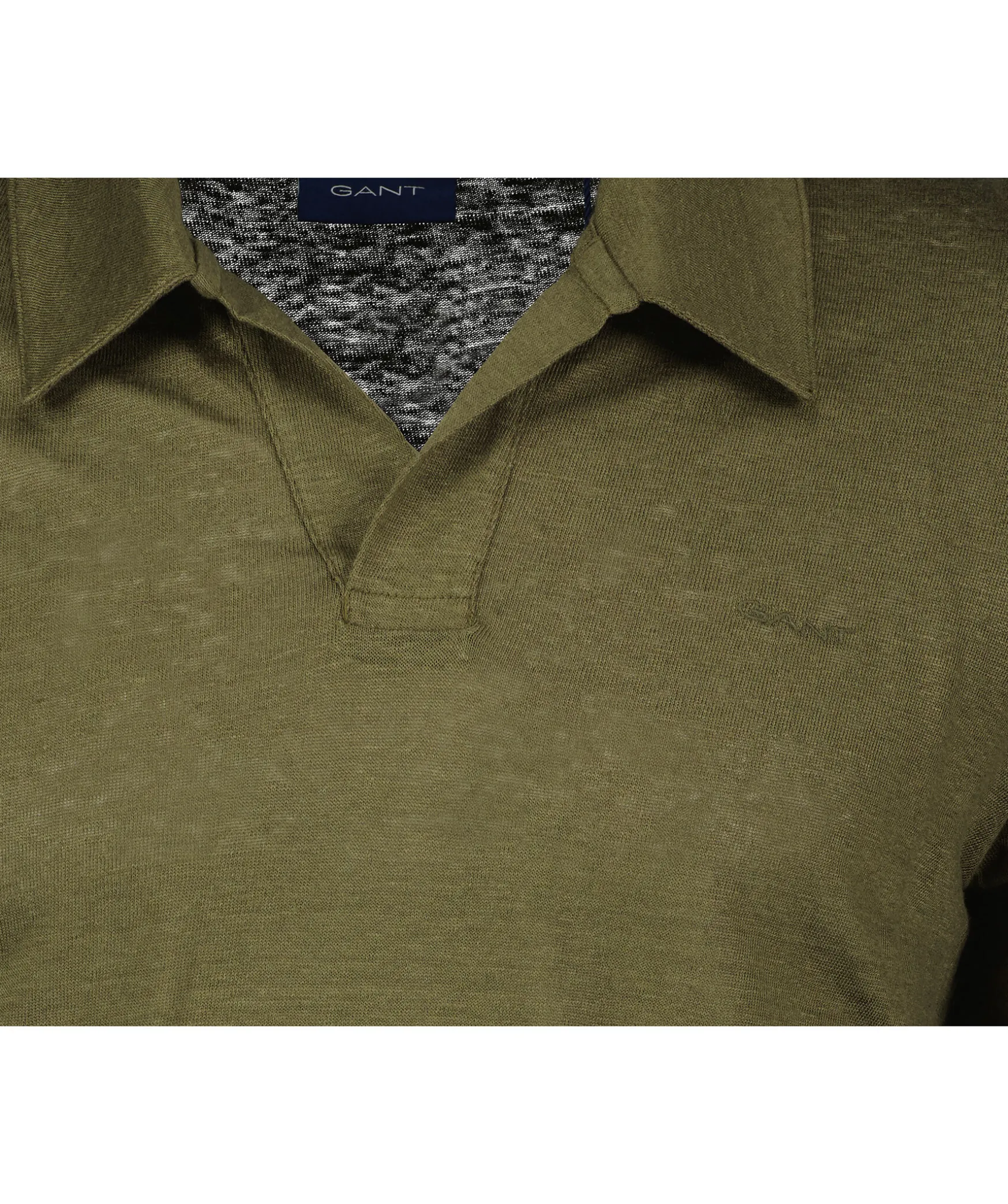 Olivgron Piketroja Fran Gant. Tillverkad I 100% Linne. Liten Broderad Logga Pa Brostet, Normal Passform.