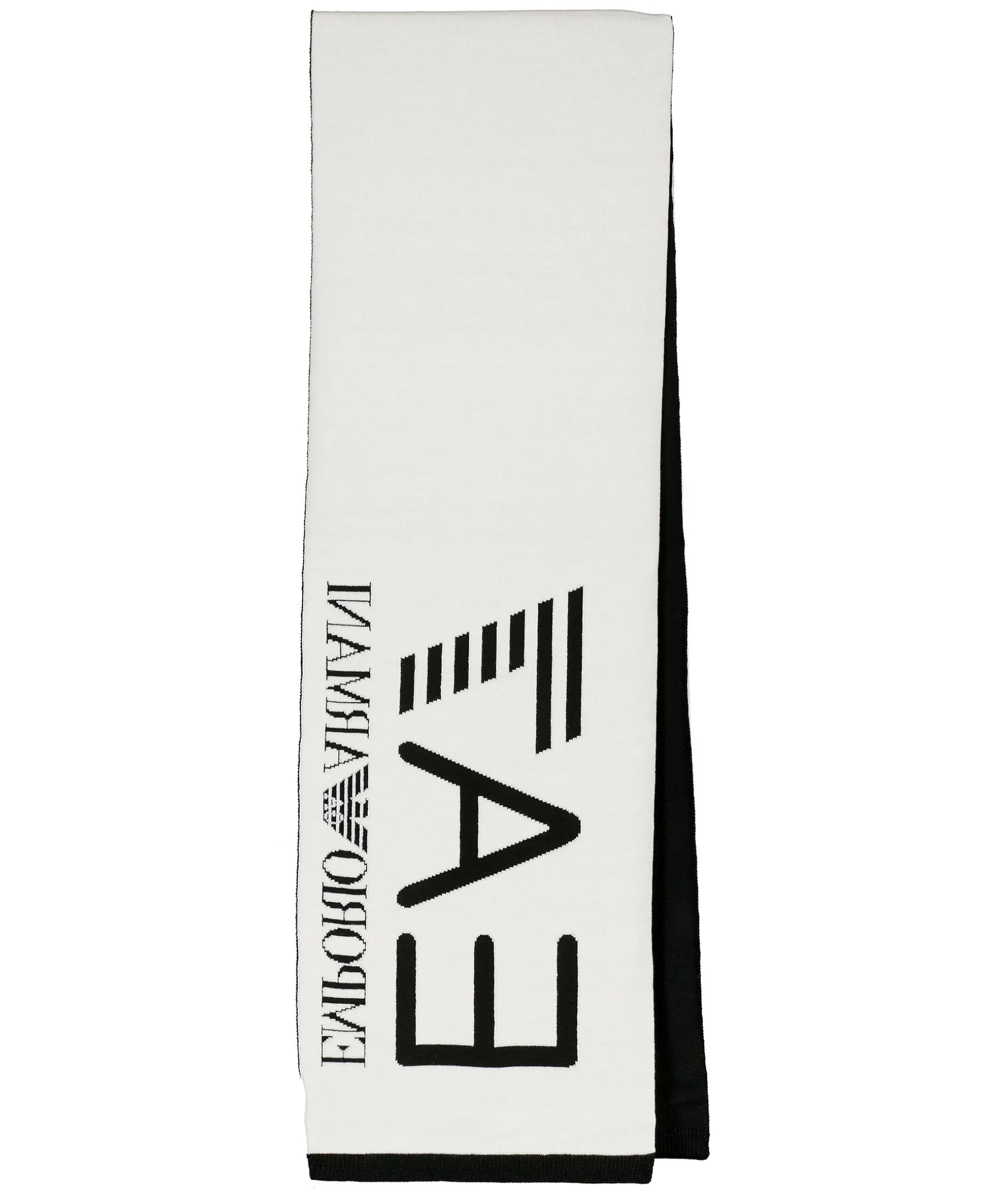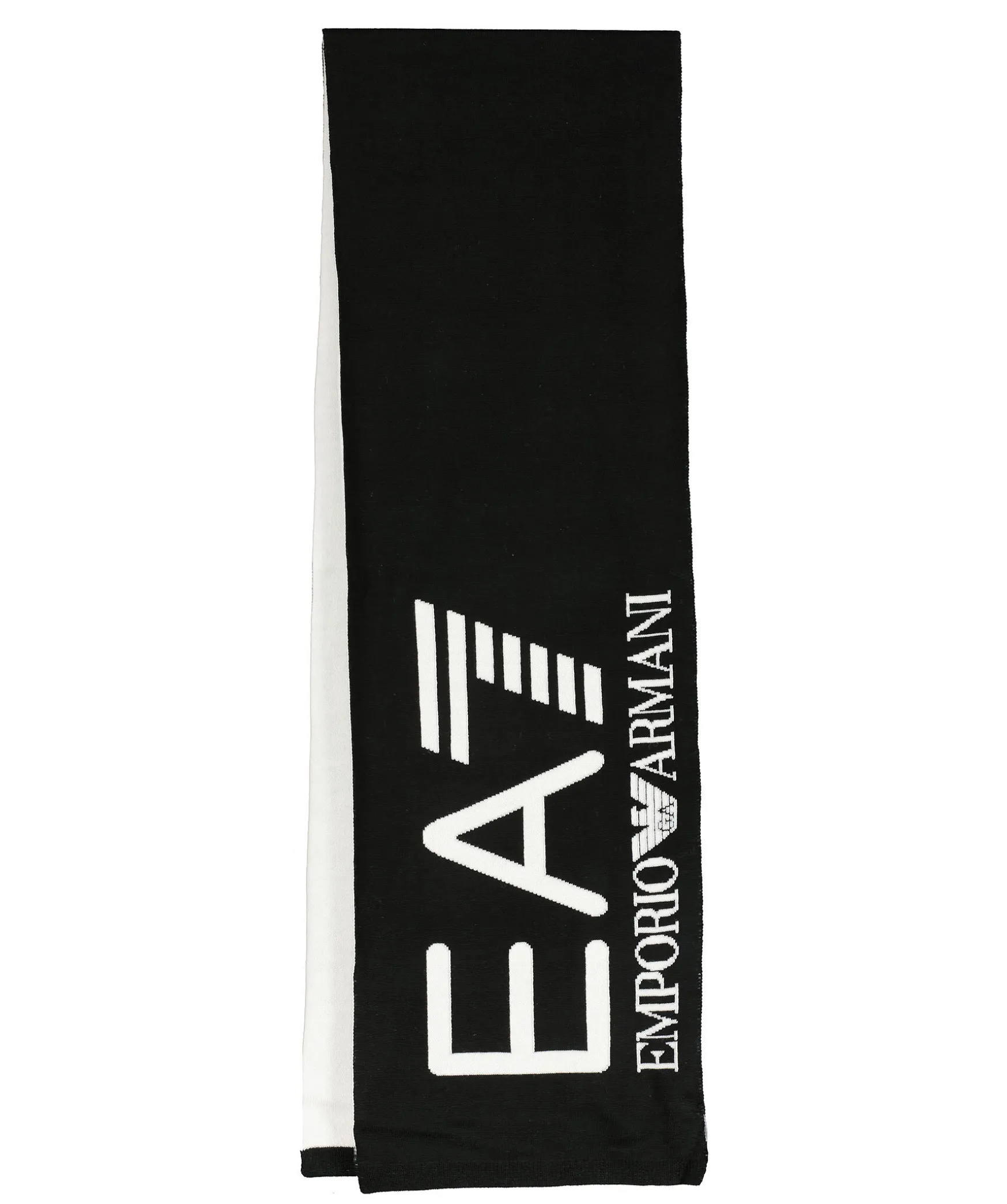 Svart Halsduk Fran Armani Ea7. Halsduken Har En Overdimensionerad Jacquardlogotyp Pa Ena Sidan, Andra Sidan Ar Vit. Tillverkad I 100% Akryl.