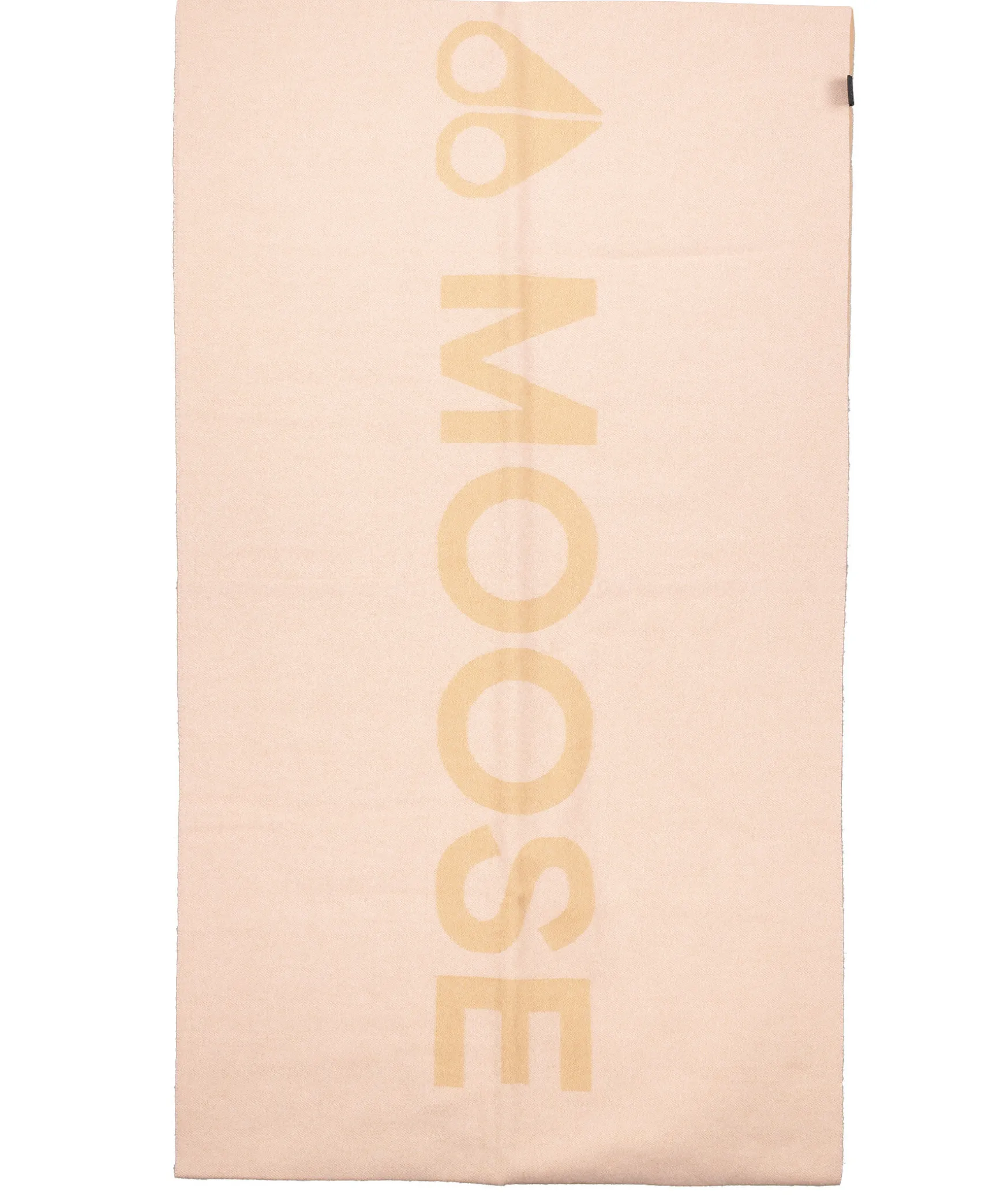 Ljusrosa Och Beige Halsduk Med Stor Logotyp Fran Moose Knuckles. Ljusrosa Med Beige Logotyp Pa Ena Sidan Och Beige Med Ljusrosa Logotyp Pa Den Andra Sidan. Tillverkad I Ull Och Kashmir. Matt: 60 Cm X 220 Cm.