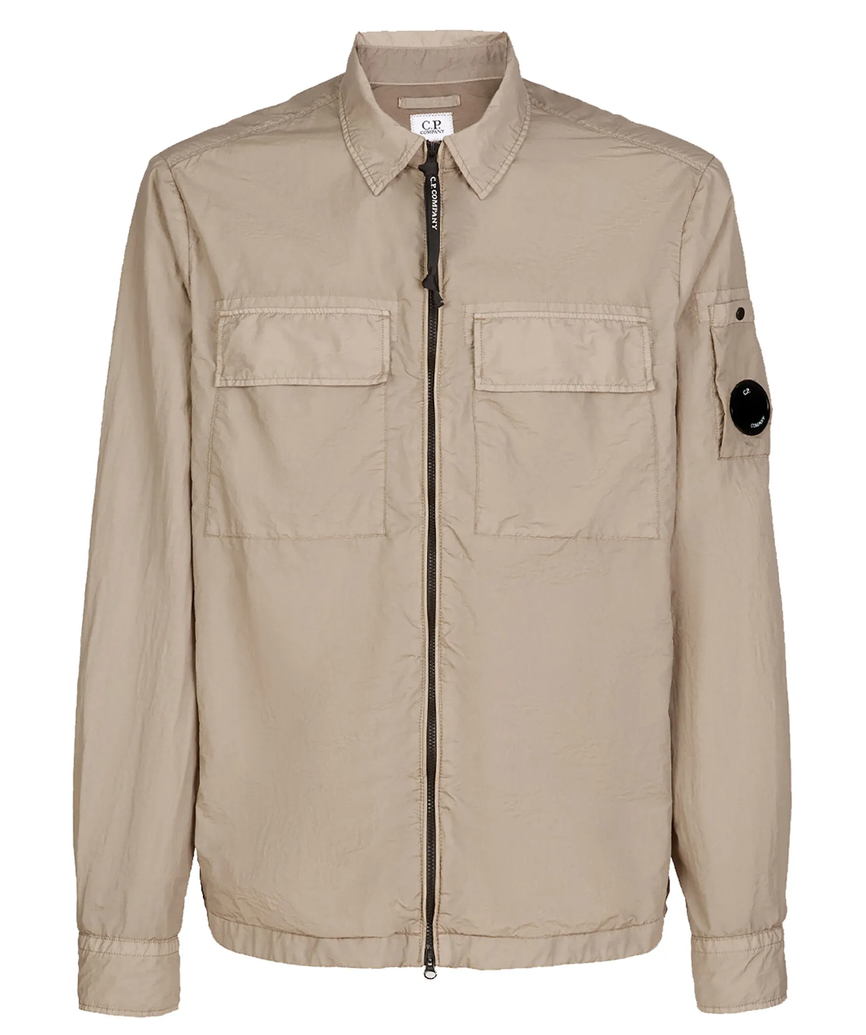 Grabeige, Overshirt Fran C.P Company. Brostfickor Med Ficklock, Ficka Ar Armen Med Dragkedja Och Rund, Svart Patch I Plast Med Logotyp Pa Armfickan. Knappar I Armslut Och Stangs Med En Svart Dragkedja Fram.Tillverkad I Taylon L, En Mangsidig Nylontextil Som Bestar Av 100% Taslaniserade Fibrer, Som Ger En Motstandskraftig, Ogenomskinlig Finish Som Ar Vattenbestandig Och Snabbtorkande.