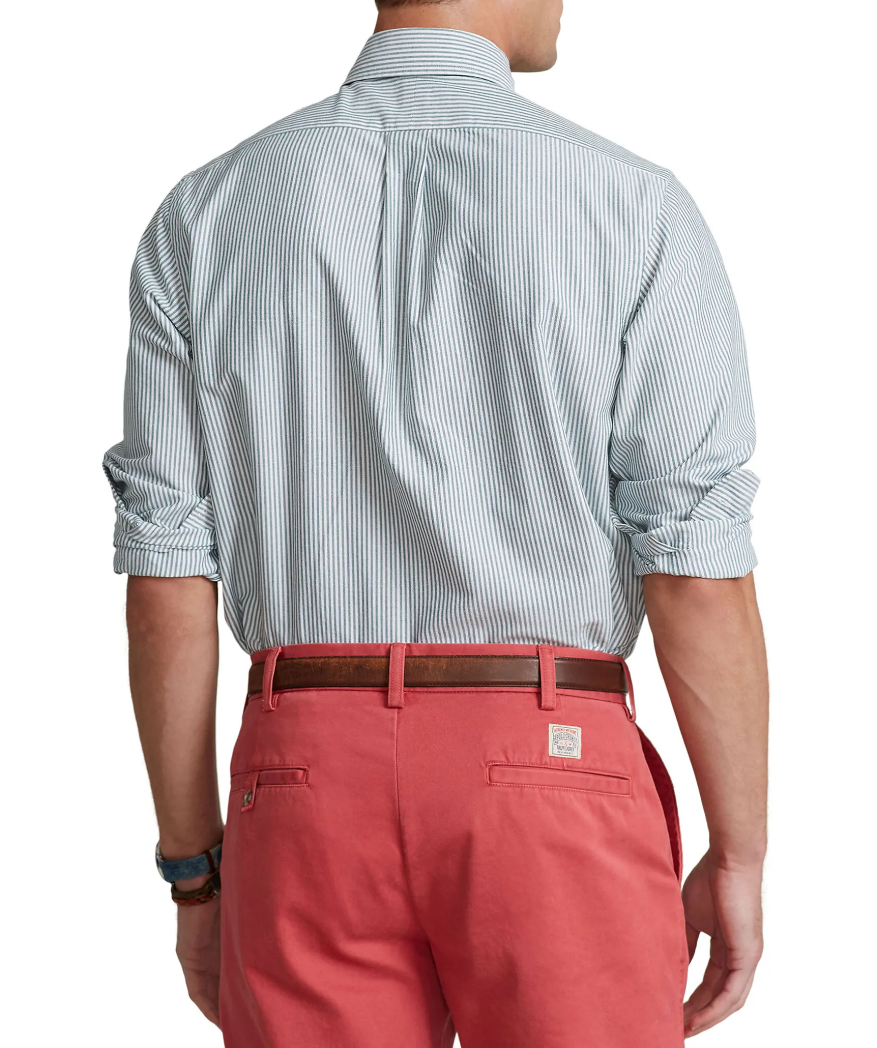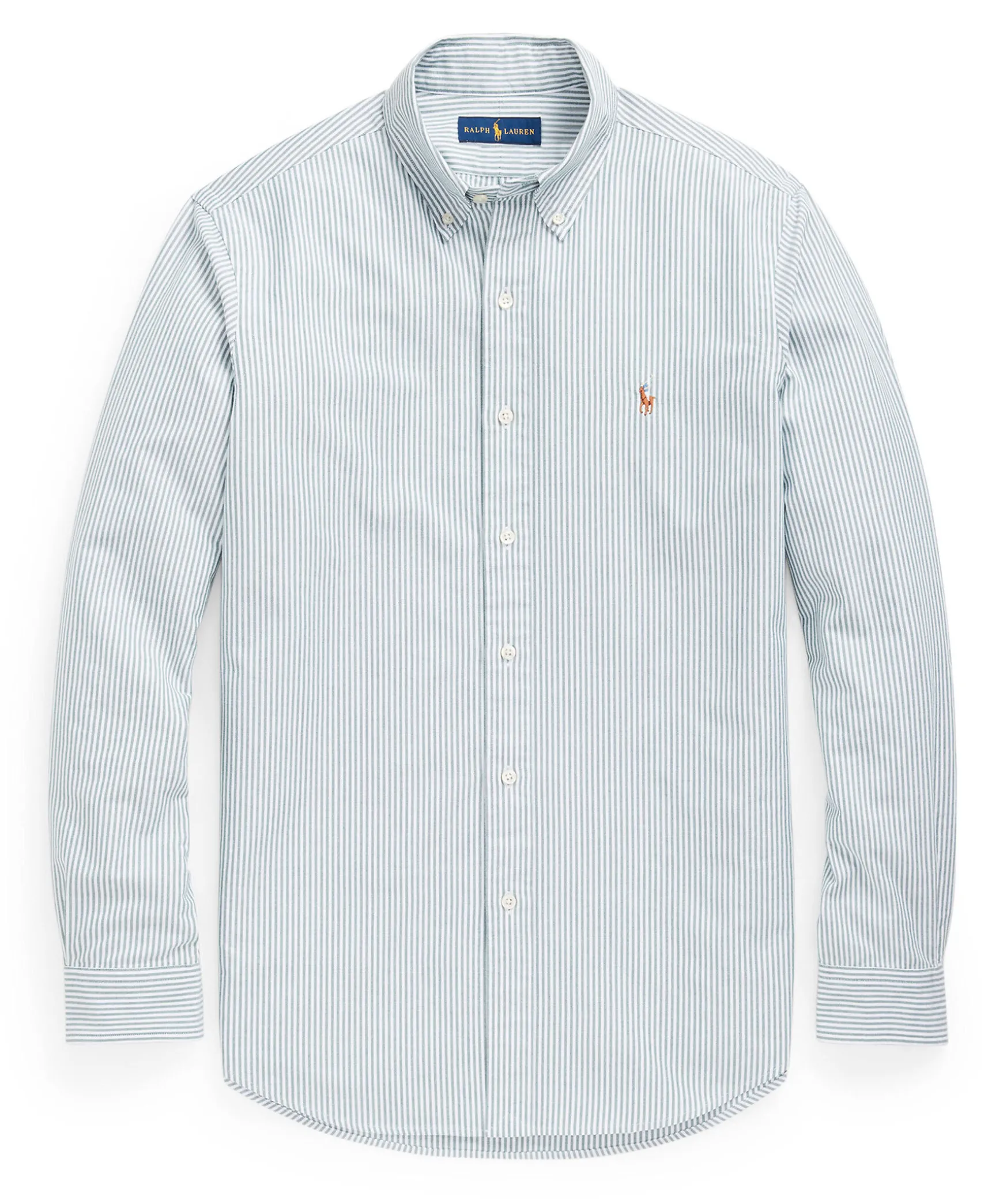 Langarmad Skjorta Med Gronbla Och Vita Rander Fran Polo Ralph Lauren. Gjord I 100% Bomull. Skjortan Har En Broderad Polohast Pa Brostet Och En Button-Down Krage. Custom Fit.