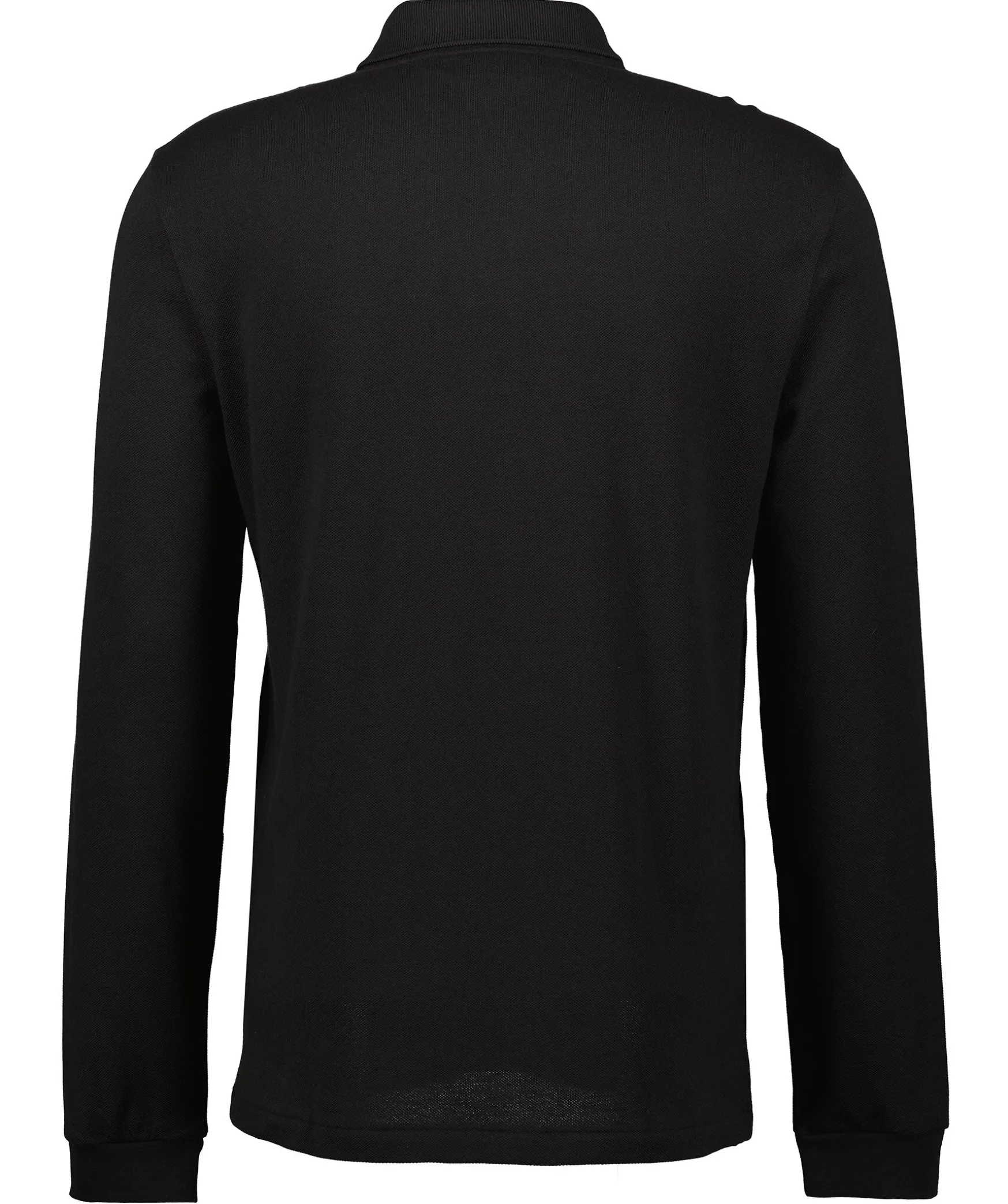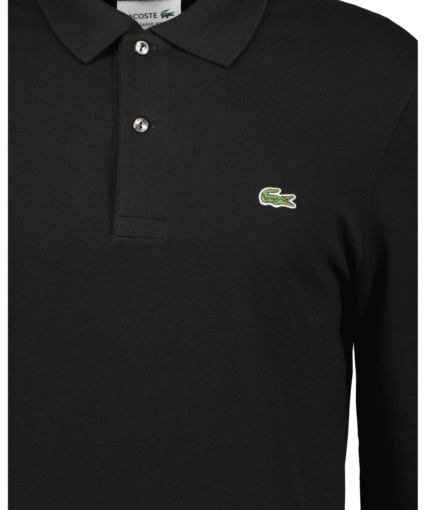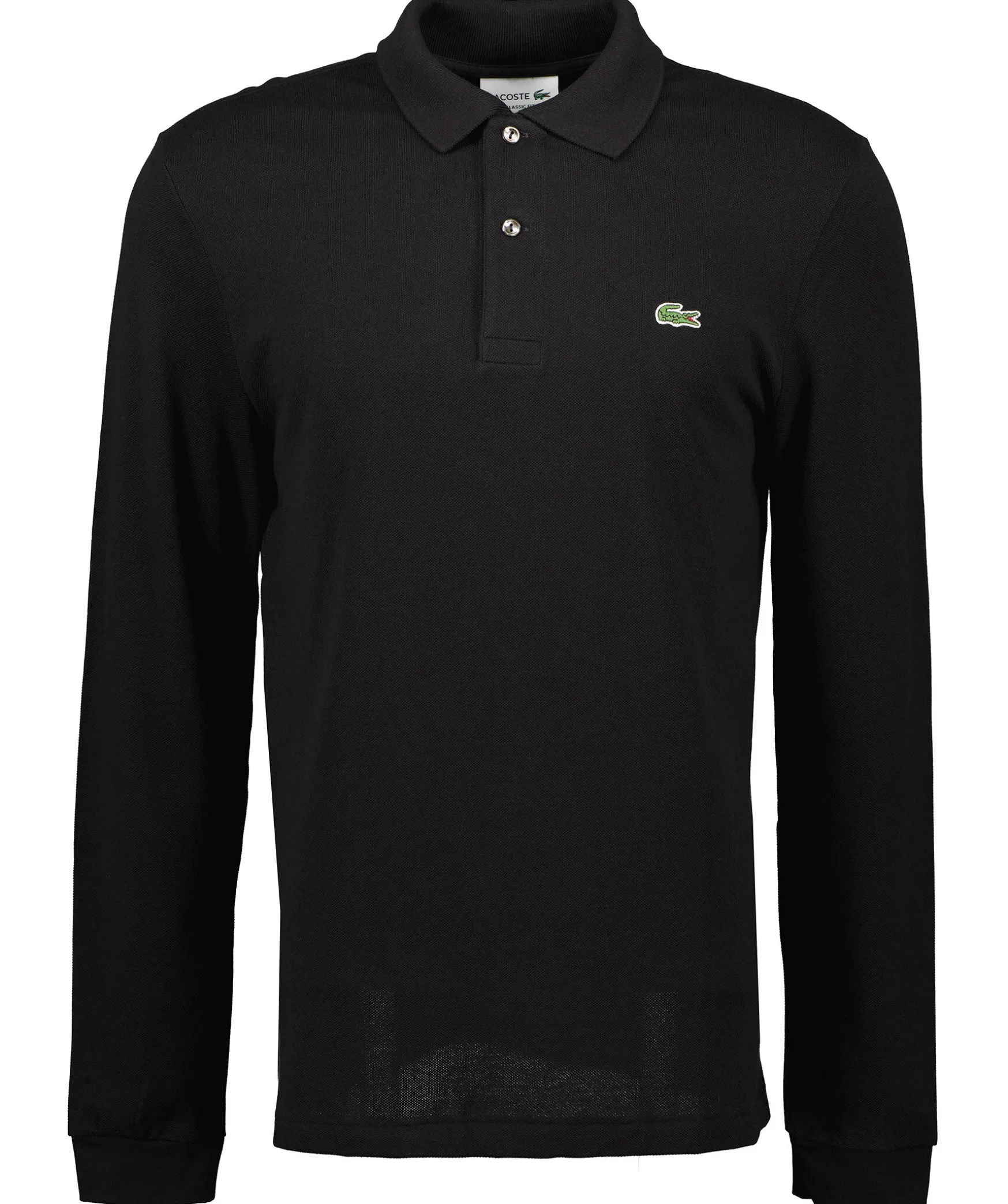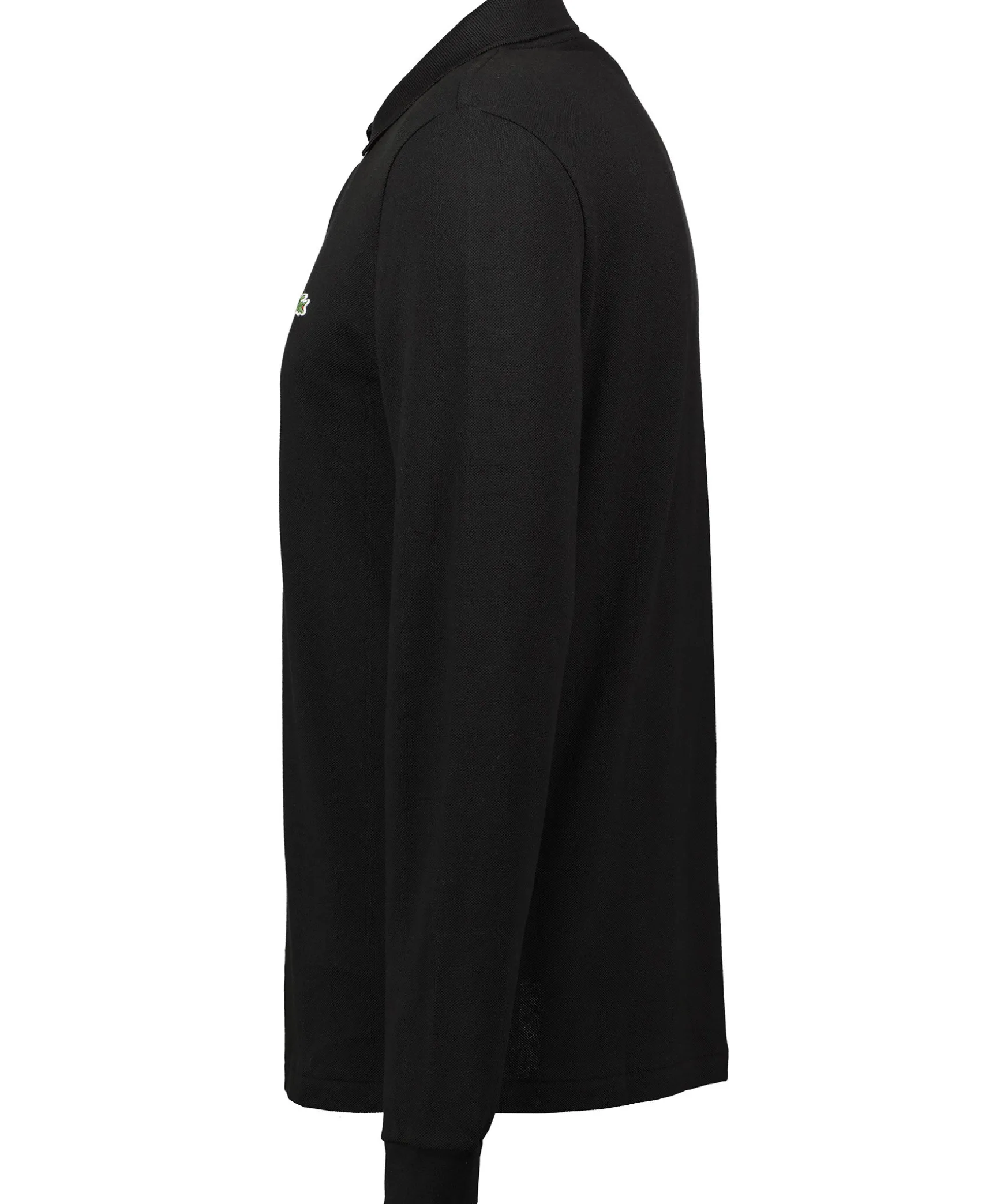 Svart Langarmad Piketroja Med Lacoste Logga Broderad Pa Brostet, Fran Lacoste. Tillverkad I 100% Bomull.