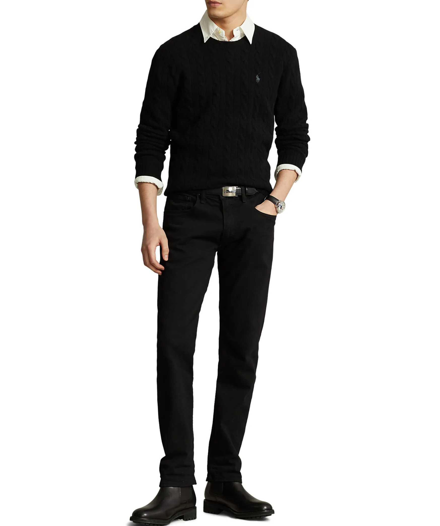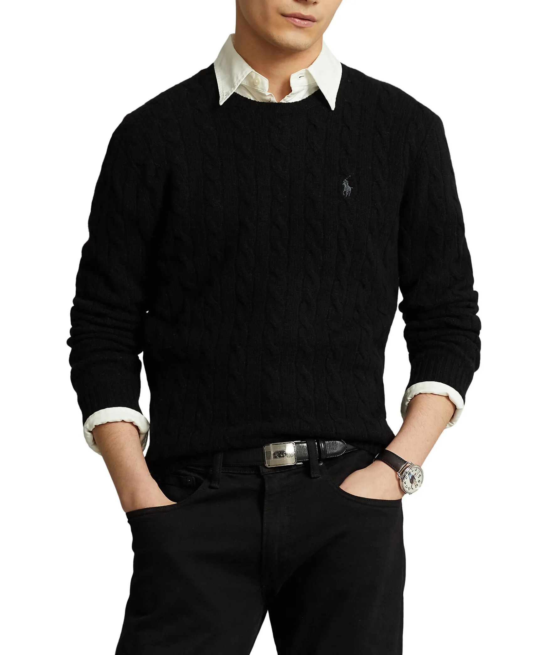 Svart, Kabelstickad Troja Fran Polo Ralph Lauren. Denna Tolkning Av Deras Ikoniska Kabelstickade Troja Ar Gjord Av Italienskt Garn Som Ar Spunnet Med Ull Och Kashmir. Langa Armar Med Ribbstickade Muddar Samt Ribbstickad Fall. Signaturbroderad Ponny Pa Vanster Brost. Normal Passform.