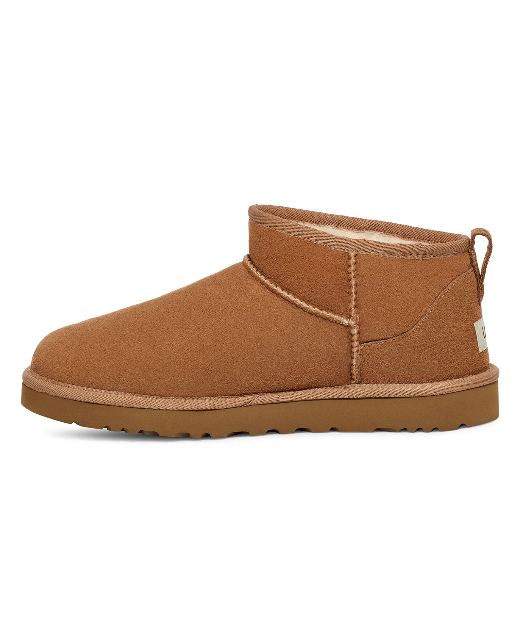 Bruna, Fodrade Boots Fran Ugg. Classic Ultra Mini Ar En Uppdaterad Variant Av Uggs Mest Ikoniska Siluett Med En Lagre Skafthojd. Forbehandlad Med Vattenavstotande Behandling For Att Den Ska Se Battre Ut Langre. Tillvekad I Farskinn, Ultramjukt Uggplush™-Foder Och Har En Flexibel, Latt Sula I Gummi. Asymmetrisk Overlinje, Overlocksomsdetaljer Pa Sommarna, Dragflik Bak Och Laderhaletikett Med Praglad Ugg®-Logotyp Pa Halen. 3,5″ Skafthojd. Vi Rekommenderar Att Du Koper Din Vanliga Storlek For Denna Stil. Anvand Oglan Pa Baksidan For Att Hjalpa Dig Att Fa Pa Skon Pa Din Fot.