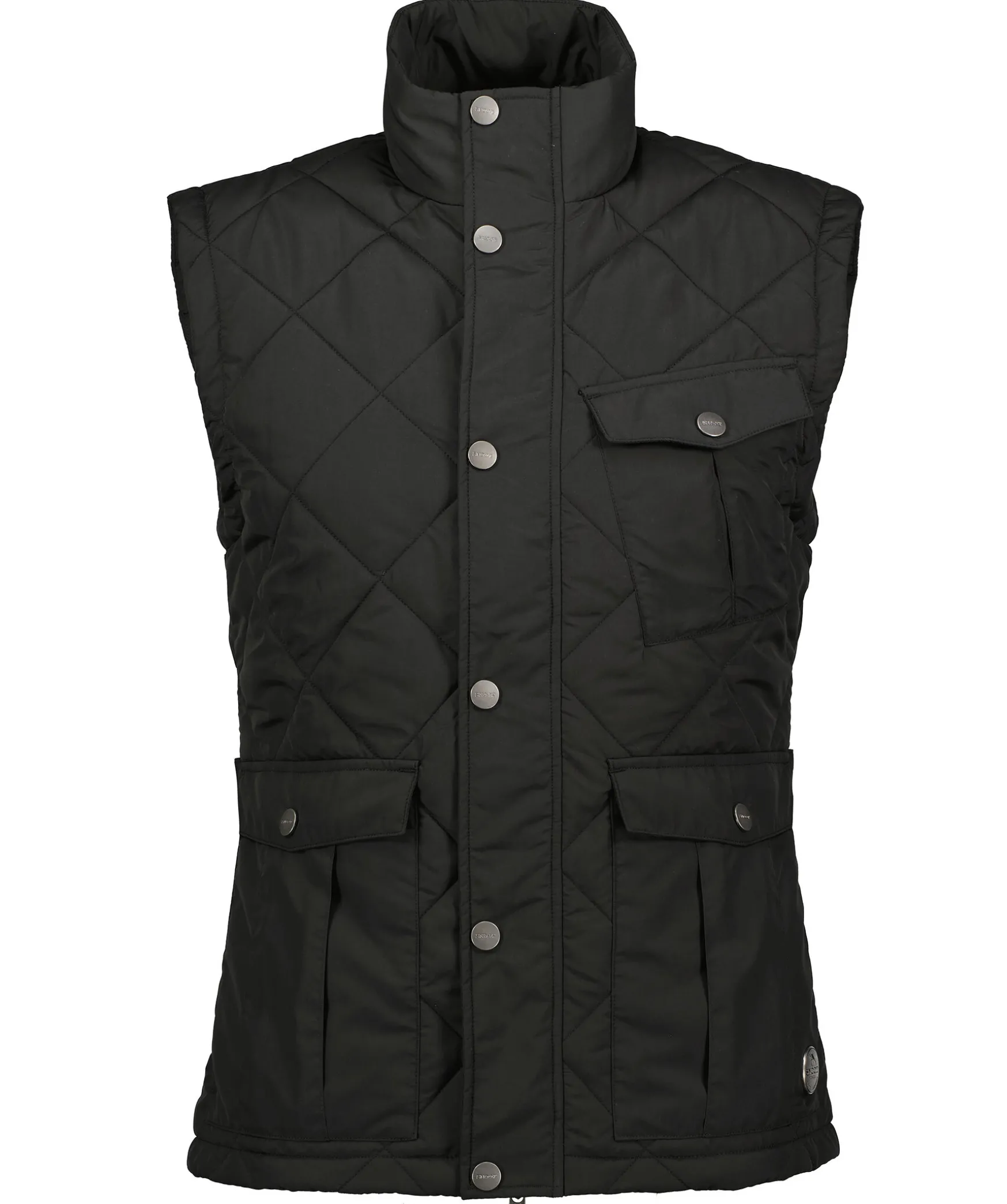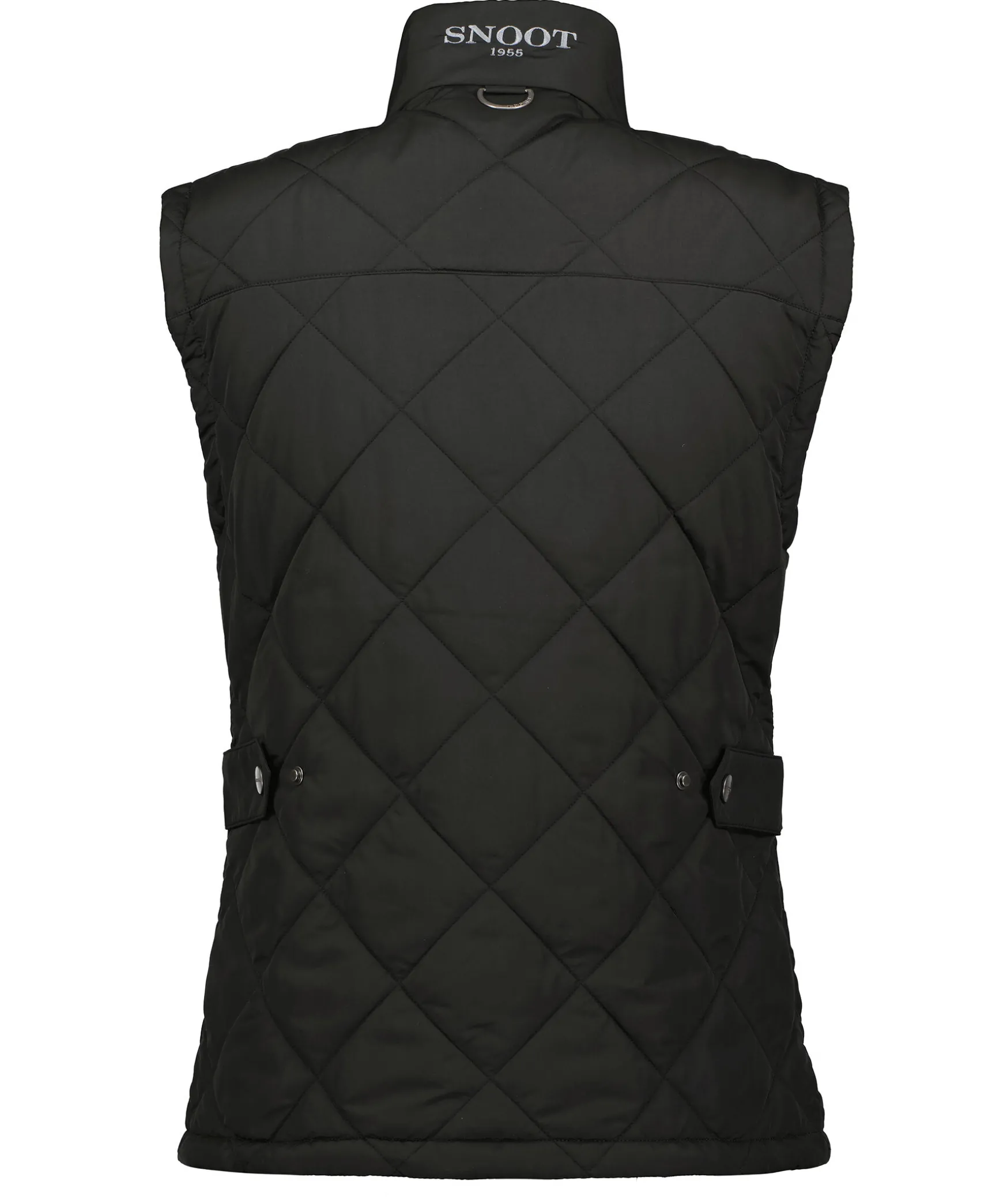 Svart Quiltad Vast Fran Snoot. Stangs Framtill Med Knappar Och Dragkedja. Brostficka Pa Vanster Sida Som Stangs Med Tryckknapp. Tva Fickor Framtill Som Stangs Med Lock Och Tryckknapp. Vasten Ar Justerbar I Midjan.