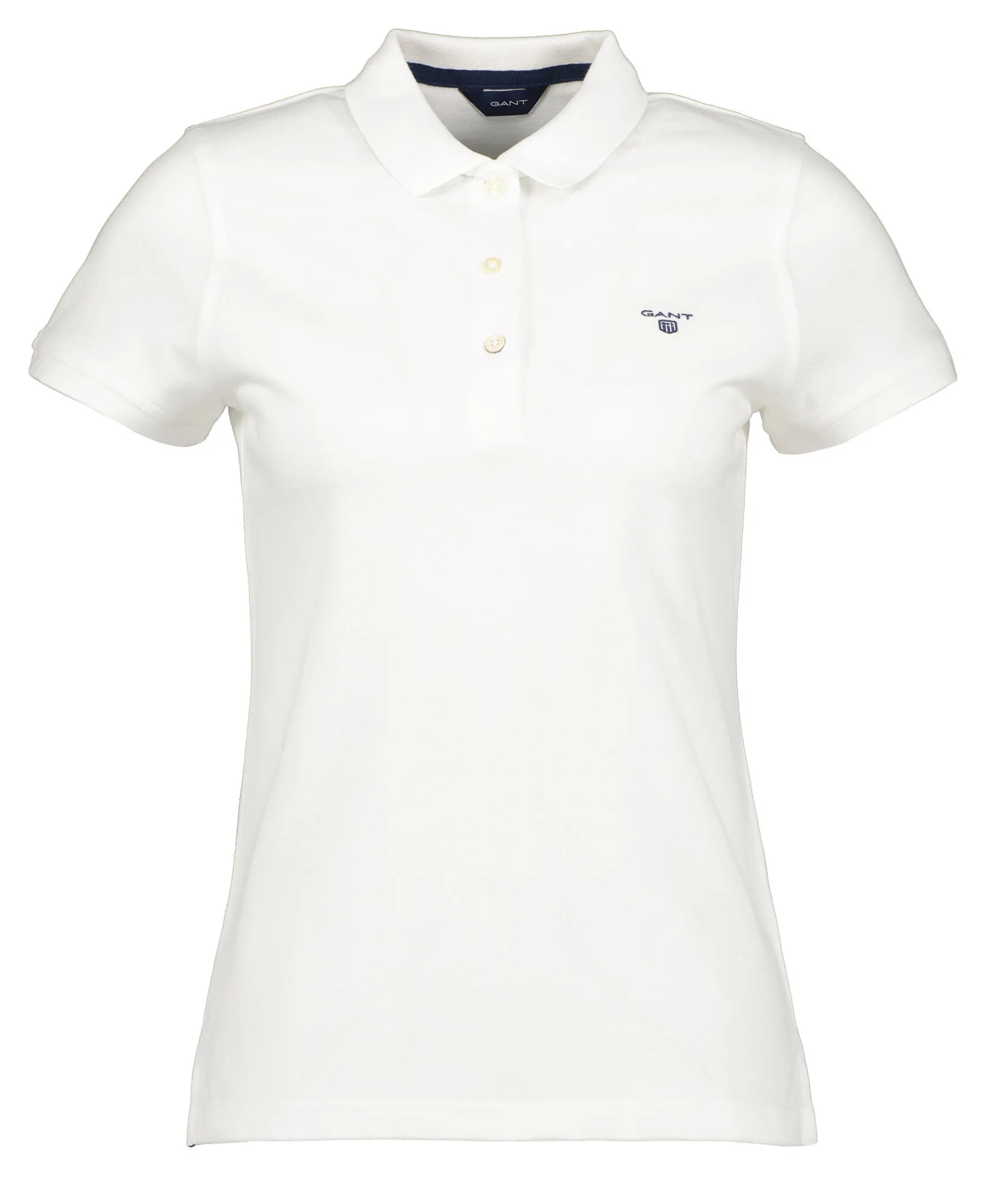 Vit Piketroja Fran Gant. Tillverkad I 100% Bomull. Broderad Logga Pa Brostet, Normal Passform Och Tva Knappar Fram. Korta Slitsar I Sidorna Och Tunna Muddar I Armslut.