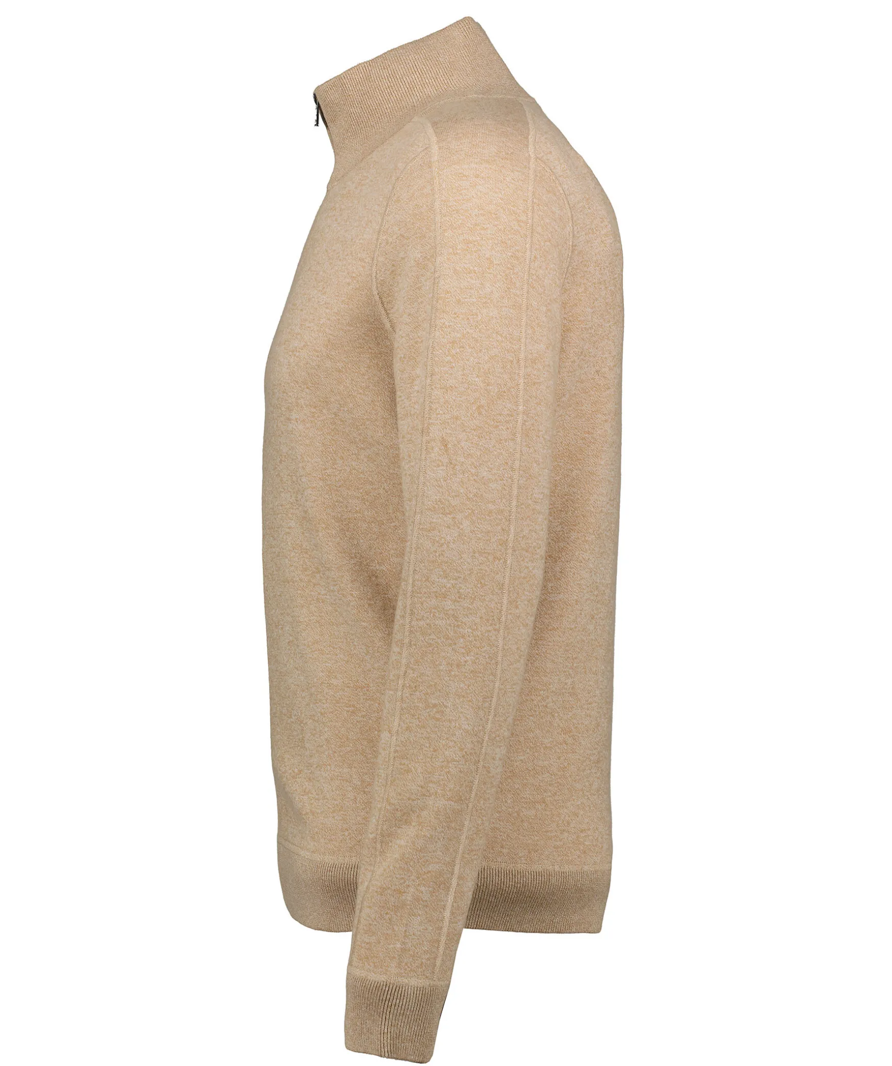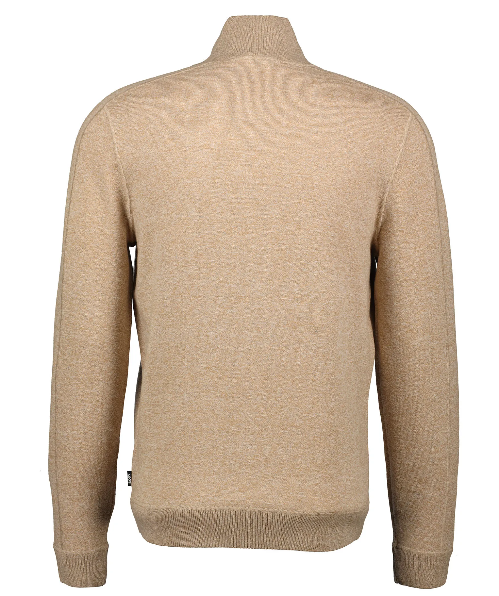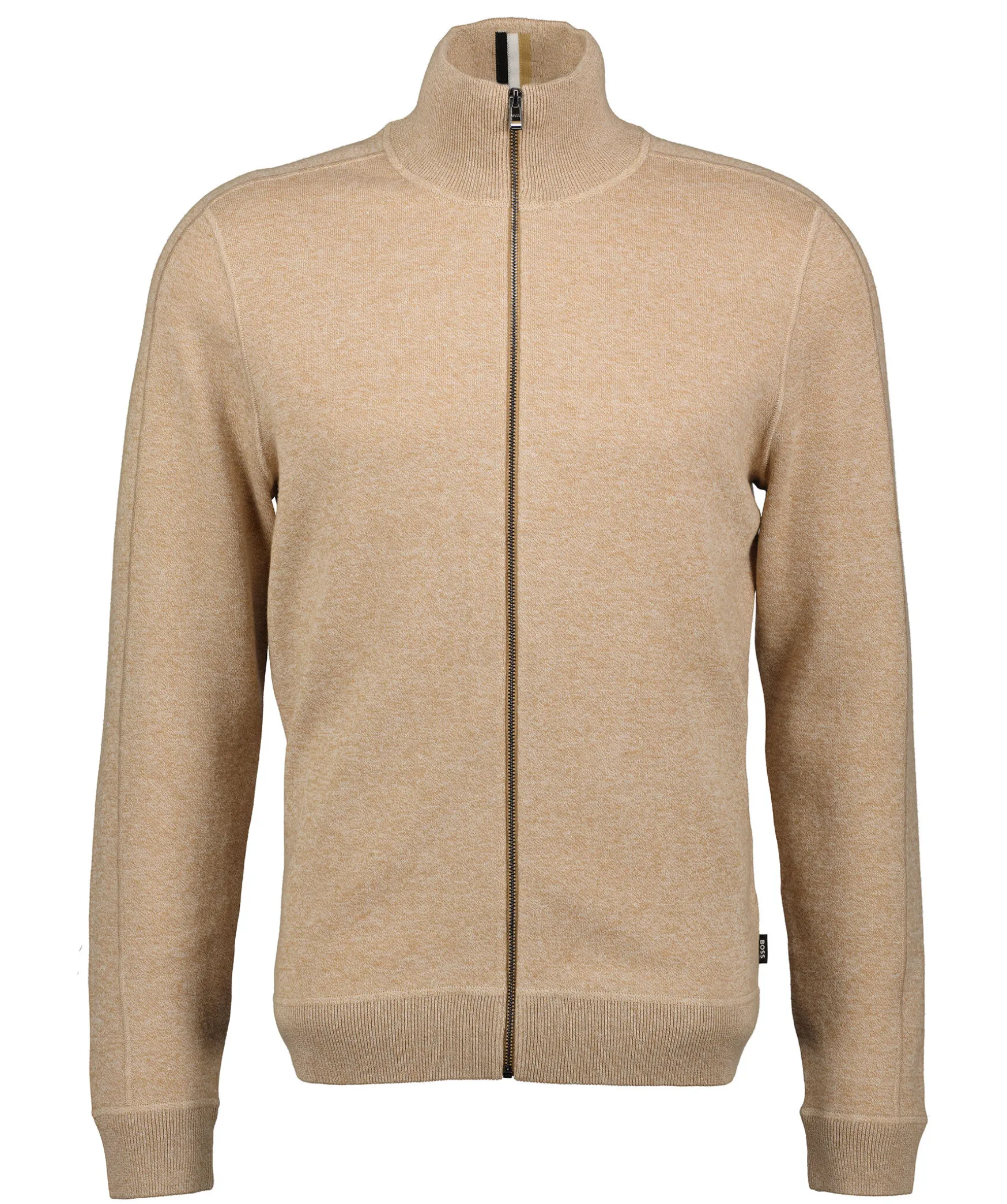 Beigemelerad Zip Up Cardigan Fran Boss Black. Stangs Med Dragkedja. Ribbstickad Krage Samt Arm- Och Plaggslut. Normal Passform. Tillverkad I En Bomull- Och Ullblandning.