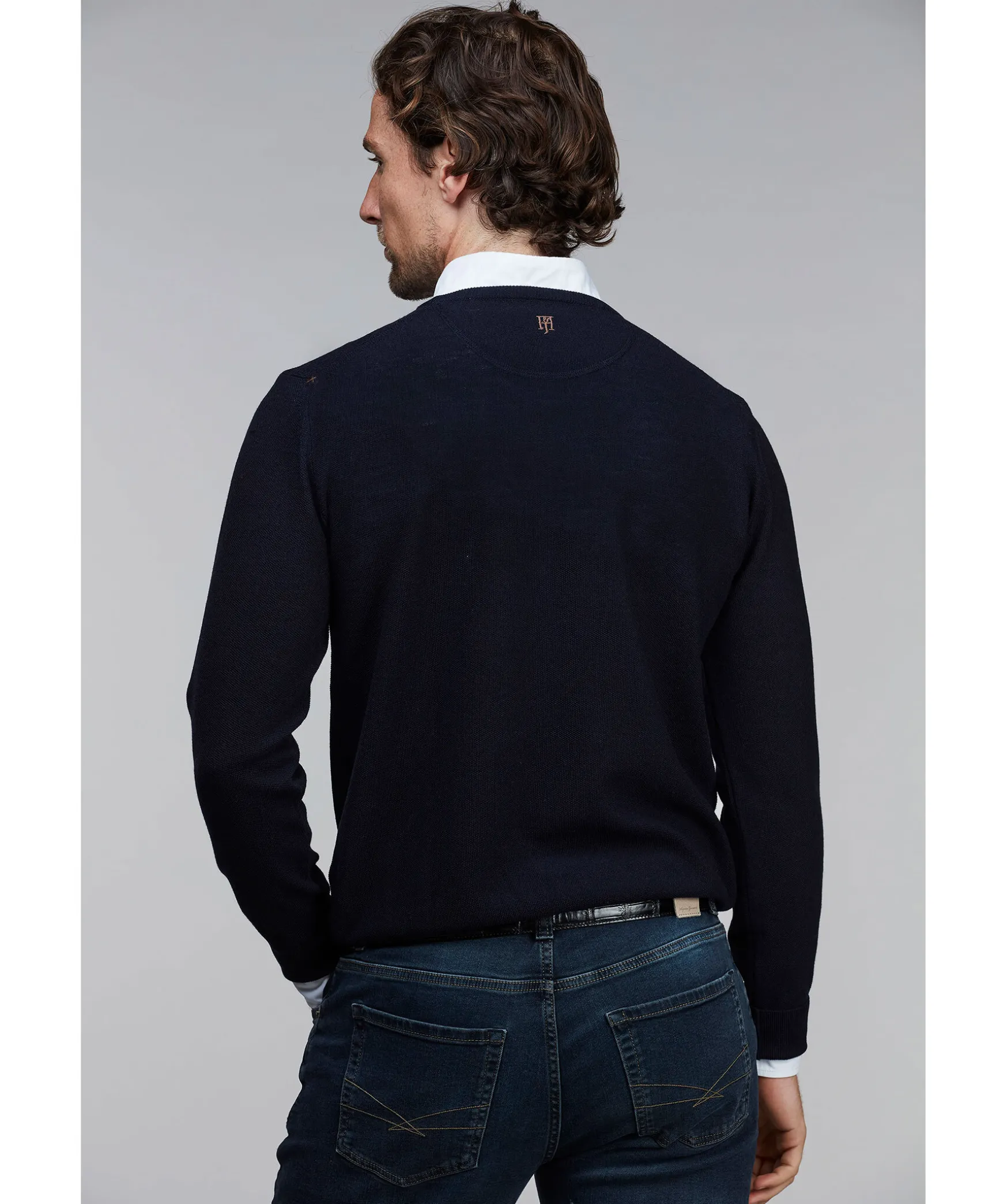 Var Bastsaljande Strukturerade Merinoullstroja Ar Ett Maste I Var Mans Garderob. Fungerar Lika Bra Till Skjorta Som Till En T-Shirt Och Finns I Manga Bra Farger. Ullen Kommer Fran Italienska Zegna Baruffa Och Haller Mycket Hog Kvalitet. Trojan Har Aven Vara Karaktaristiska X-Som Detaljer Pa Axlarna.