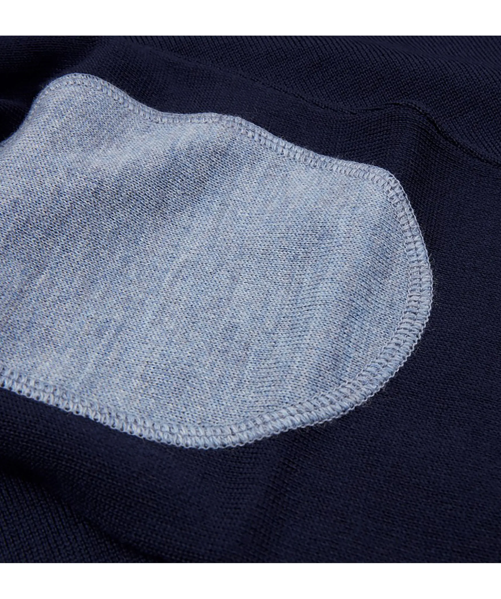 Marinbla, Finstickad Troja Fran Stenstroms Med Forstarkning I Kontrastfarg Pa Armbage.