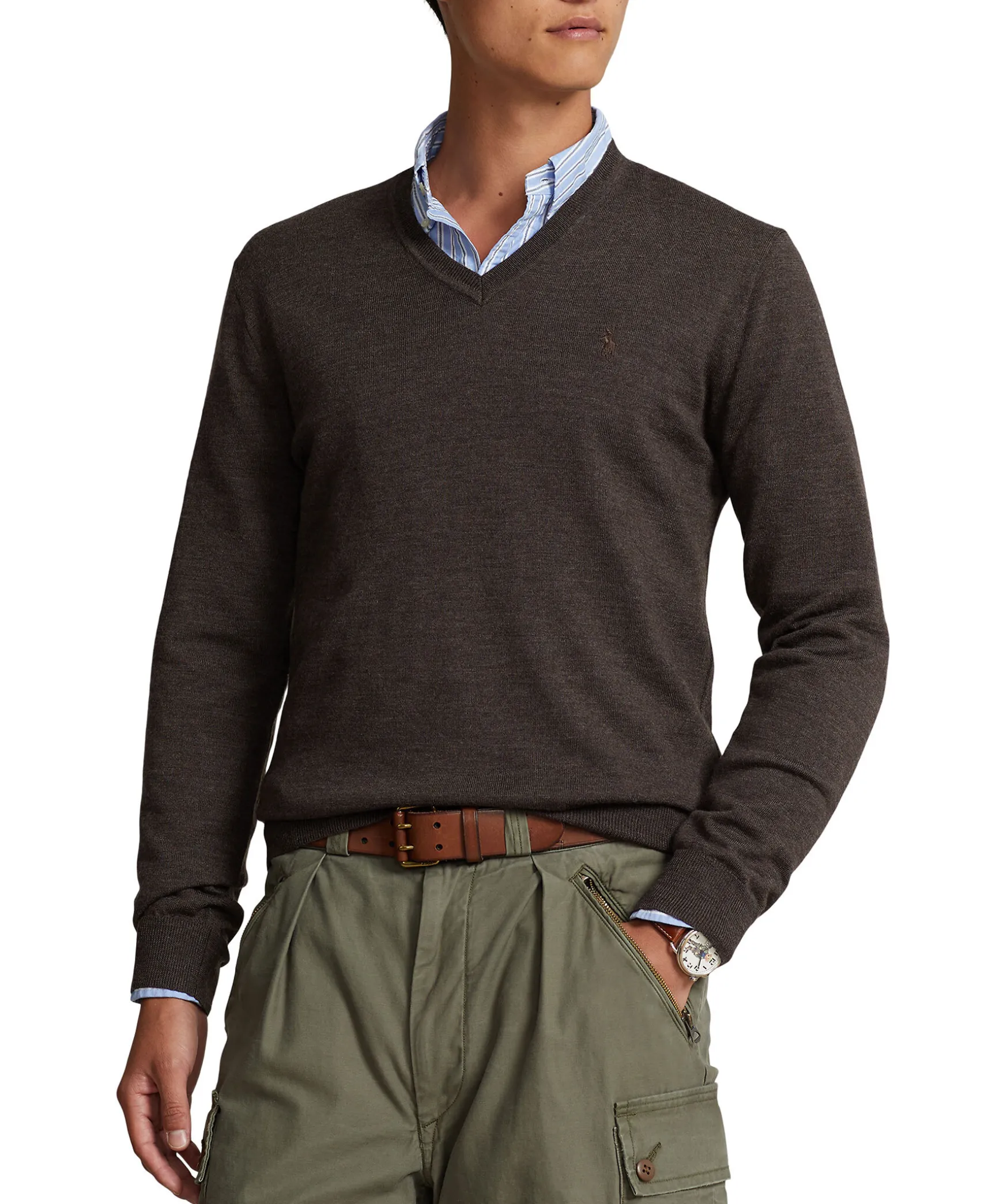 Brun, Finstickad Pullover Fran Polo Ralph Lauren. Tillverkad I Merinoull. Broderad Logotyp Pa Brostet, V-Ringning Fram Och Ribbade Muddar I Ringningen, Armslut Och Plaggslut. Slim Fit Passform.